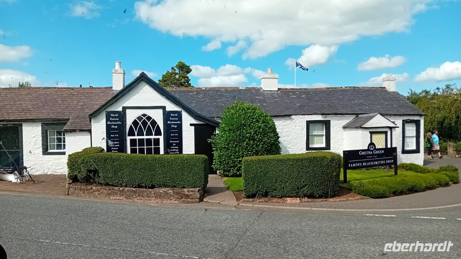 Unser Tag fand seinen Höhepunkt in Gretna Green, wo wir einer romantischen Hochzeitszeremonie zweier unserer Gäste beiwohnen durften. In der historischen Schmiede wurde geschmunzelt und "geheiratet" und viel gelacht. Es war eine schöne Einlage. Erfüllt von diesem außergewöhnlichen Event fuhren wir weiter zu unserem Hotel in Glasgow
