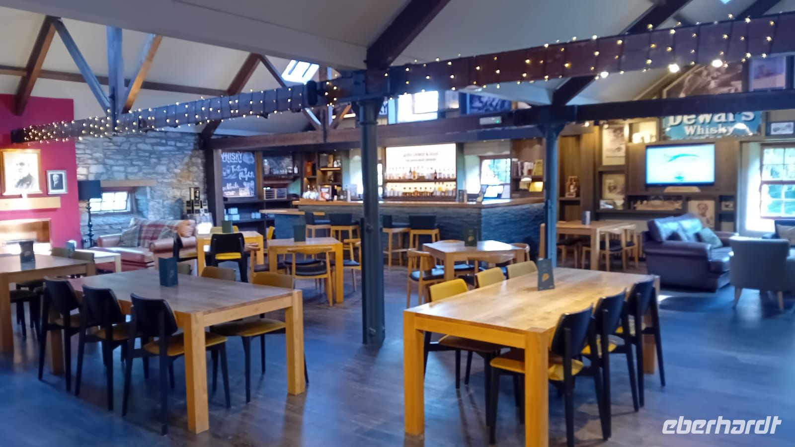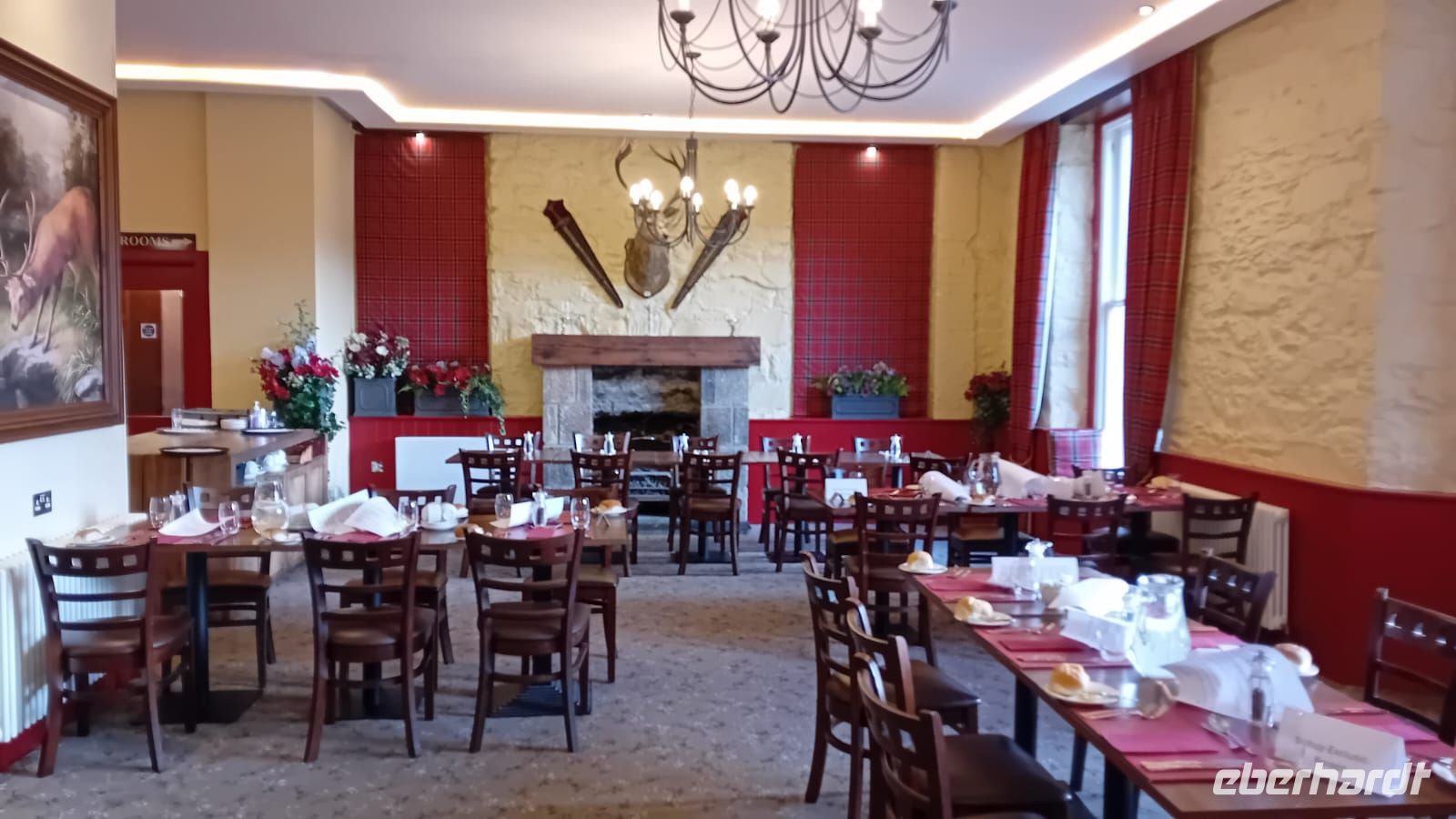 Die raue Witterung machte die Fahrt zu einem echten Highland-Erlebnis und zeigte die schottische Landschaft von ihrer ursprünglichen, kraftvollen Seite. Trotz Regen und Wind bleibt dieser Tag unvergesslich – ein authentischer Einblick in die Schönheit und das raue Klima der schottischen Highlands. Anschließend fuhren wir weiter zum Loch Ness Centre, einem modernen Besucherzentrum, das sich ganz der Legende des berühmten Seeungeheuers „Nessie“ widmet. Im Zentrum erfuhren wir viel Wissenswertes über die Geschichte, die Mythen und die wissenschaftlichen Untersuchungen rund um Loch Ness. Die interaktiven Ausstellungen und multimedialen Präsentationen machten den Besuch trotz des ungemütlichen Wetters zu einem spannenden Erlebnis. Nach einem erlebnisreichen Tag setzten wir unsere Fahrt fort und erreichten am Abend unser Hotel in Pitlochry. Das charmante Städtchen, eingebettet in die sanften Hügel der schottischen Highlands, bot uns einen gemütlichen Rückzugsort, um die Eindrücke des Tages Revue passieren zu lassen und neue Energie für die kommenden Abenteuer zu tanken.Im Namen der Firma Eberhardt lud ich die Gäste herzlich auf ein Getränk ein, um für das schlechte Wetter zu entschädigen und den gemeinsamen Tag gebührend ausklingen zu lassen.