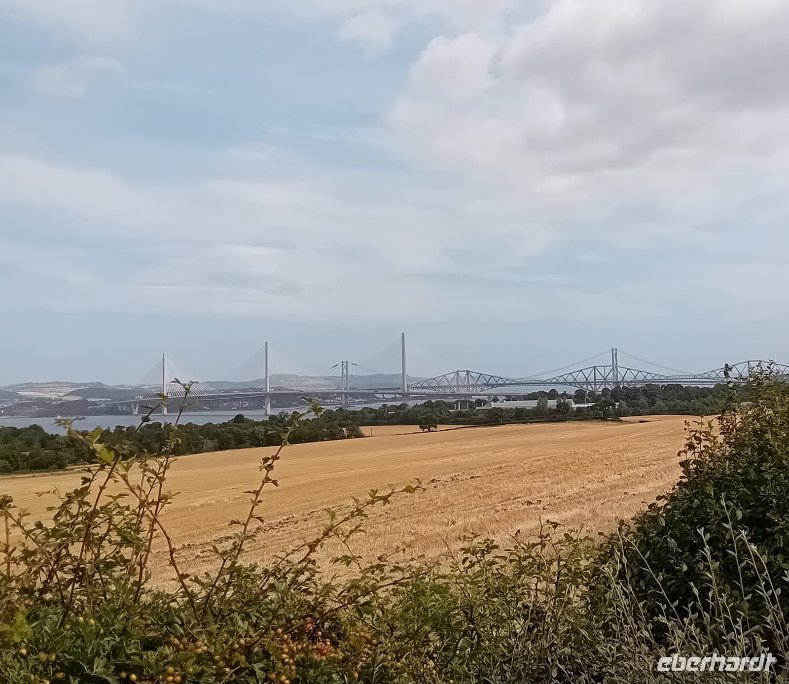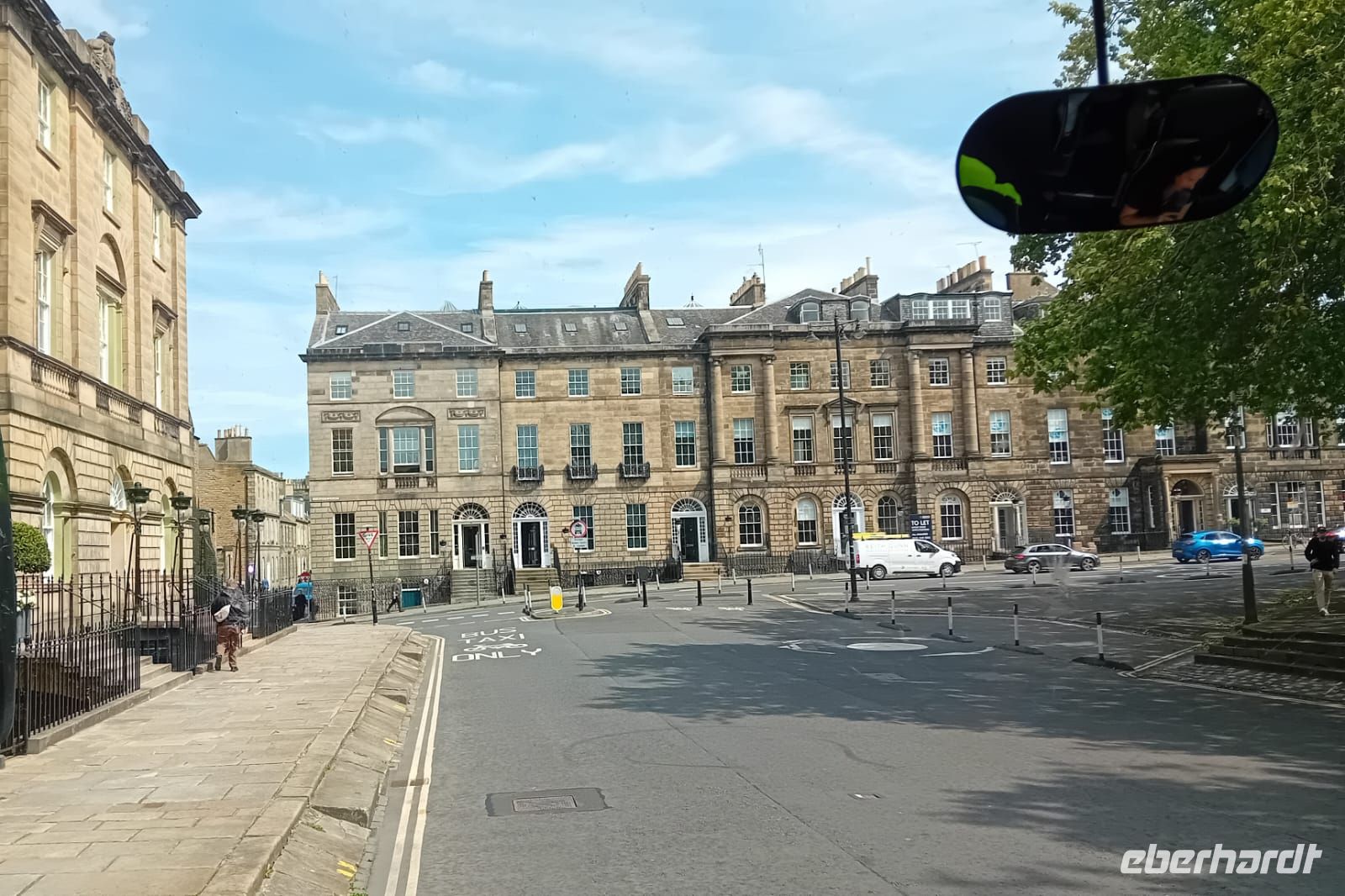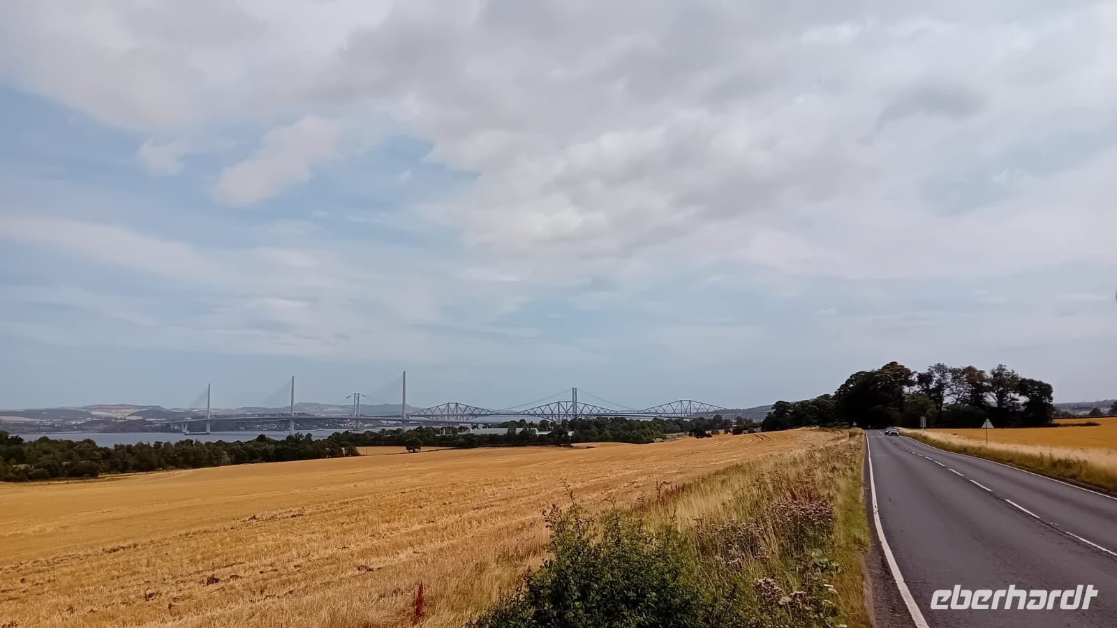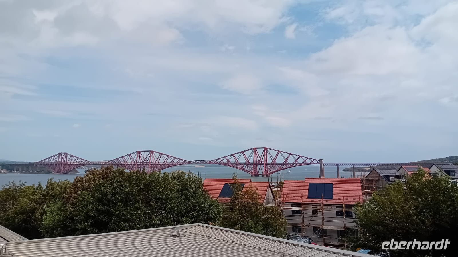 Nach einem erlebnisreichen Aufenthalt in Pitlochry setzen wir unsere Reise fort und fahren weiter in die schottische Hauptstadt Edinburgh. Auf dem Weg dorthin passieren wir die beeindruckende Queensferry Crossing, die mit ihren drei markanten Brückenpfeilern ein modernes Wahrzeichen Schottlands darstellt und spektakuläre Ausblicke über den Firth of Forth bietet.