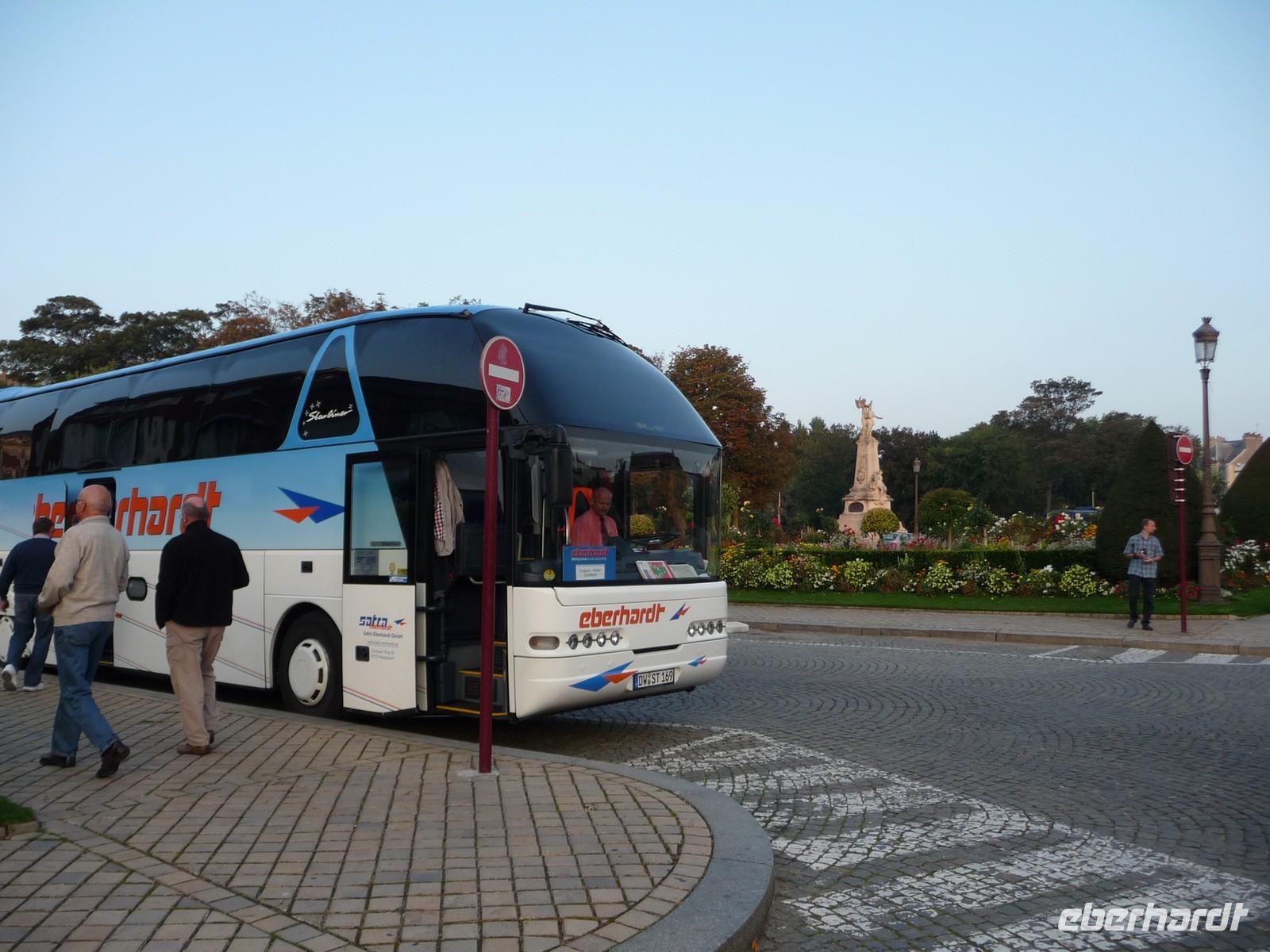 In Dresden, Hainichen, Chemnitz, Meerane, der Raststätte Teufelstal und schließlich Jena-Lobeda waren 43 erwartungsvolle und gut gelaunte Reisegäste zugestiegen. In Eisenach fand der Fahrerwechsel zwischen Dietmar Hammitzsch und Andreas Glatzel statt, dann ging es über des Siegerland, Köln, Aachen nach Brüssel und weiter zum Hotel Holiday Inn Calais Coquelles, wo wir herzlich aufgenommen wurden und uns gut von der ersten Etappe erholten.