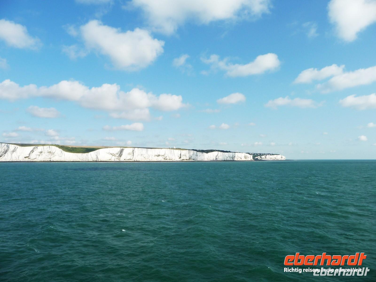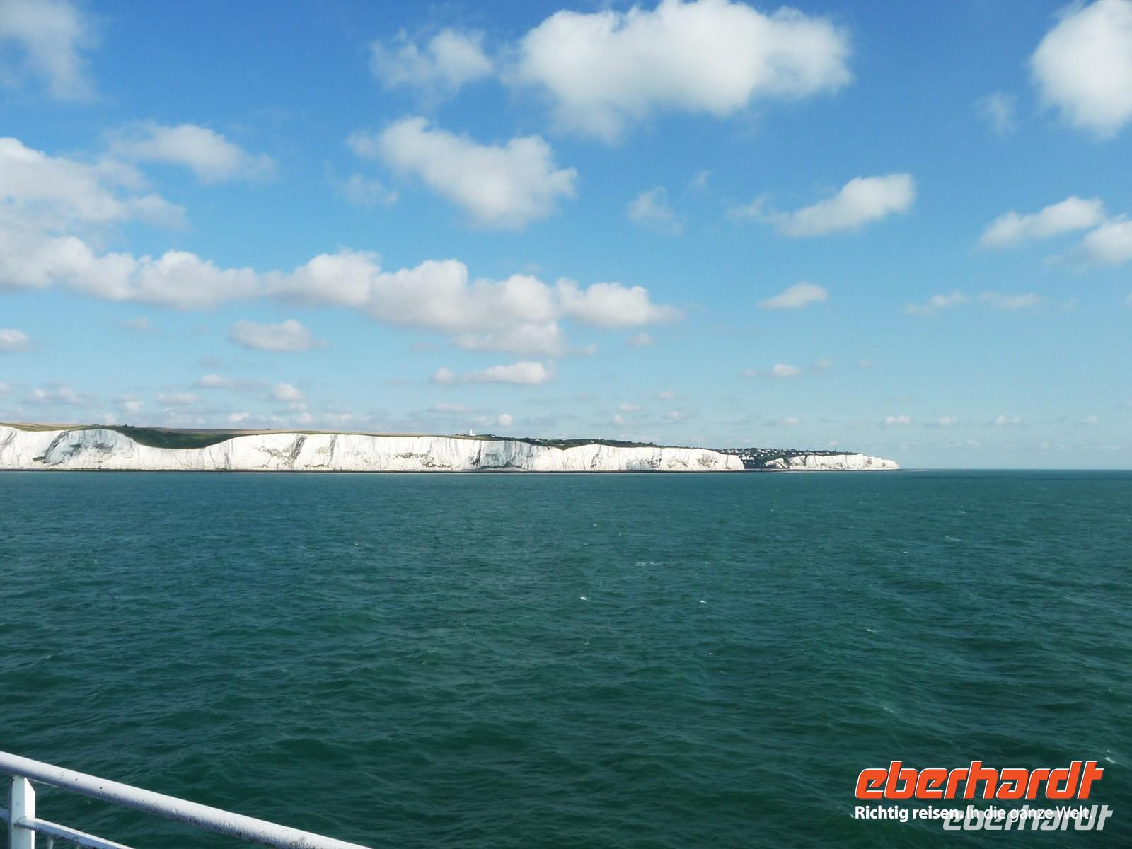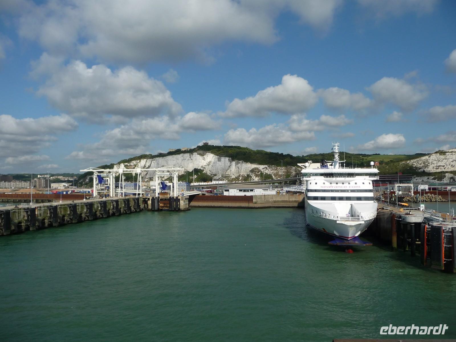 Dann die kurze Fahrt zum Fährhafen und das Übersetzen nach Dover. Schon von Calais aus sahen wir die englische Kreideküste in der Sonne liegen.