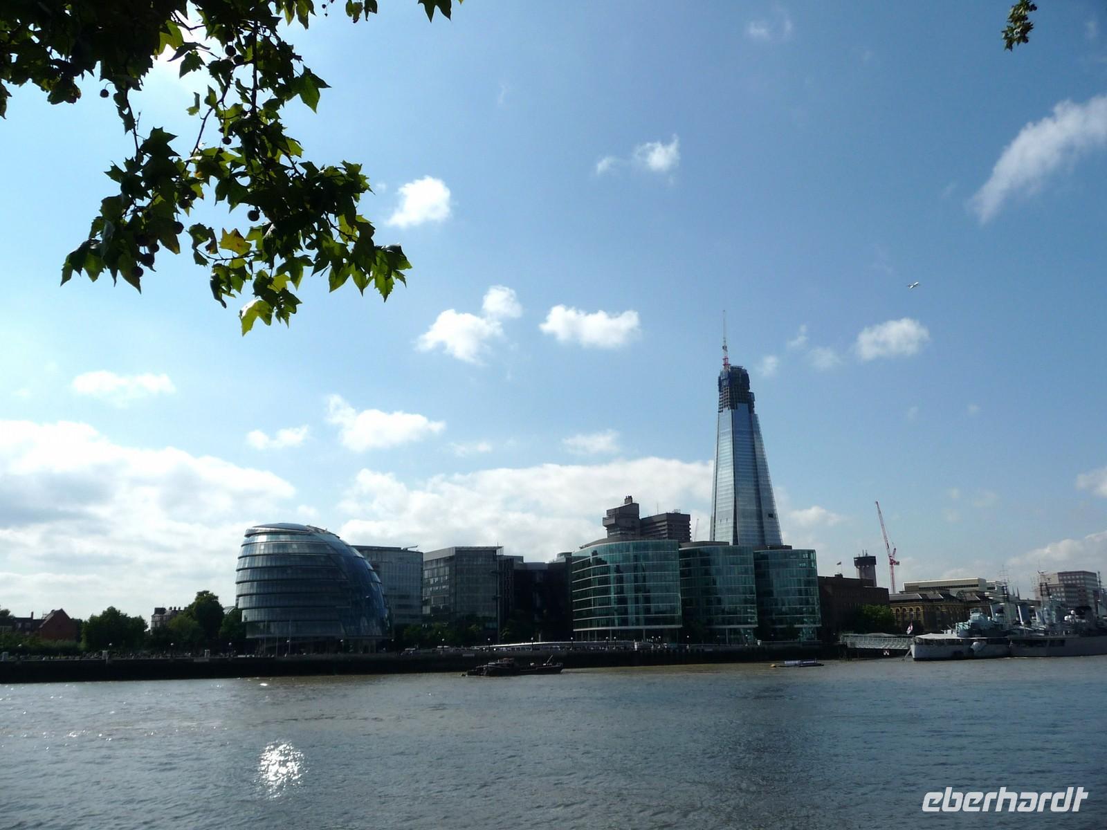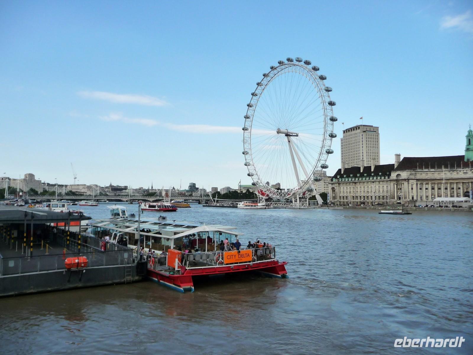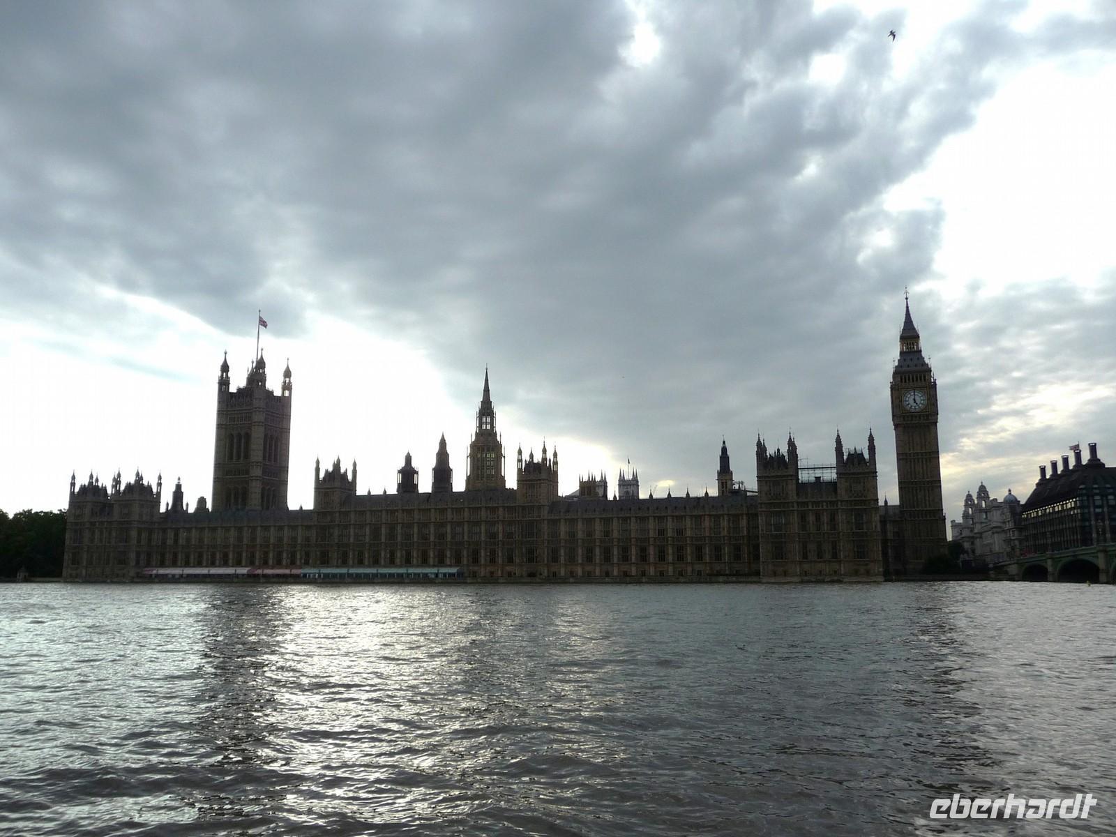 Ruhige See und sehr schönes Wetter auch bei der Ankunft in Dover und so war es auch eine schöne Fahrt vorbei an Canterbury und Leeds Castle nach Greenwich bei London. Gemeinsam spazierten wir durch den Greenwich Park zum Royal Observatory und weiter zum Flamsteed House, wo im Hof mit einer Eisenschiene der Verlauf des Nullmeridian gekennzeichnet ist, in Verlängerung unterhalb, außen, durch kleines Tor verläuft die Markierung weiter - ideal für individuelle Fotos. Vom Aussichtspunkt rechts daneben bot sich ein sehr schöner Blick auf die Londoner City und den Flusslauf der Themse.