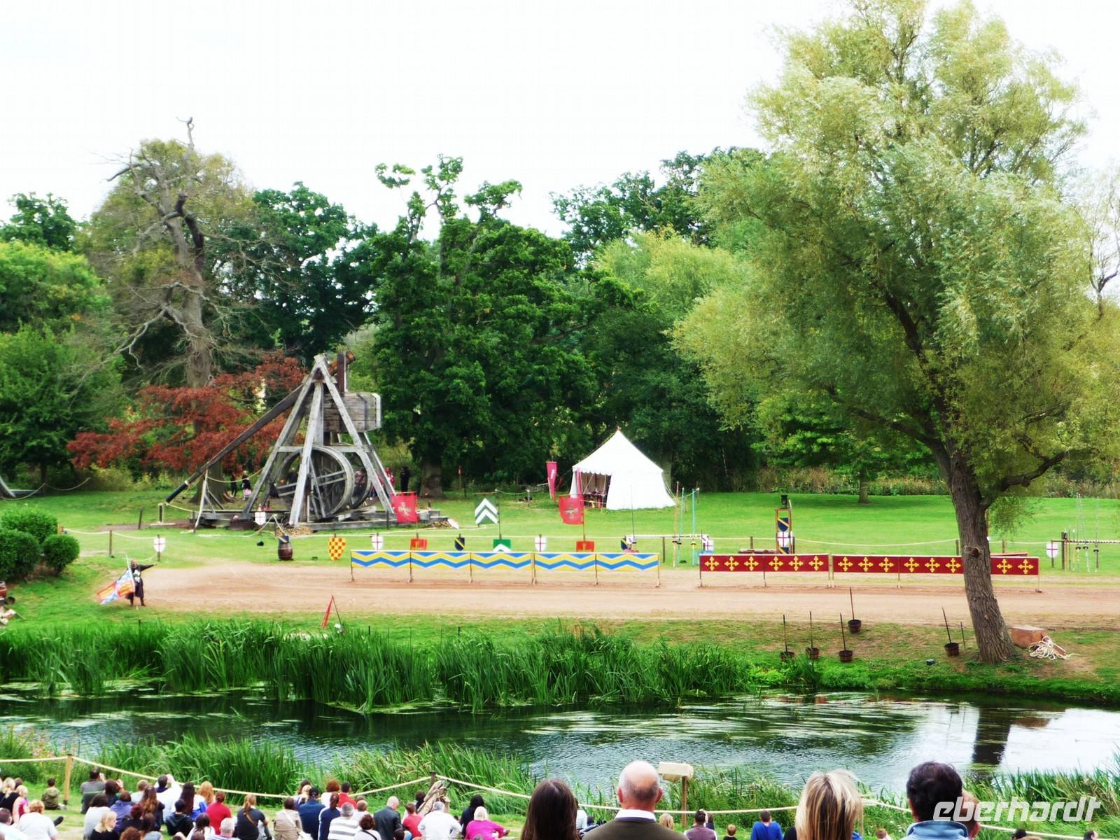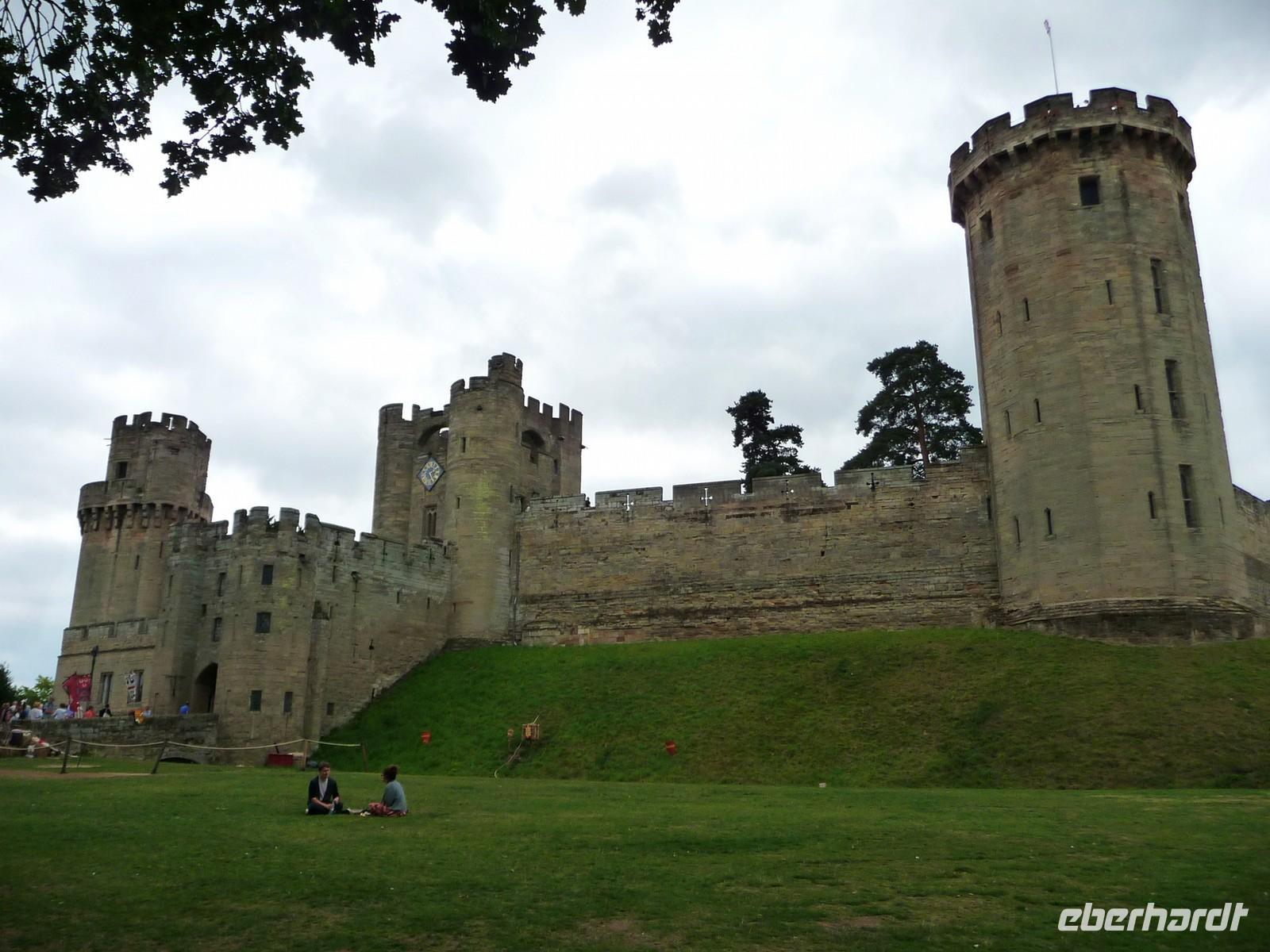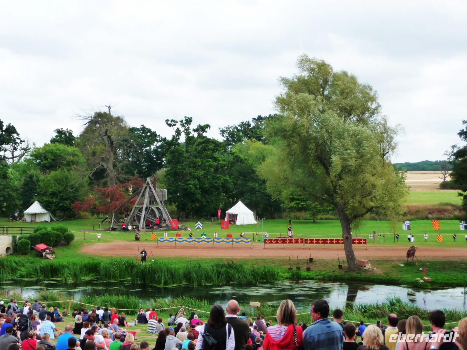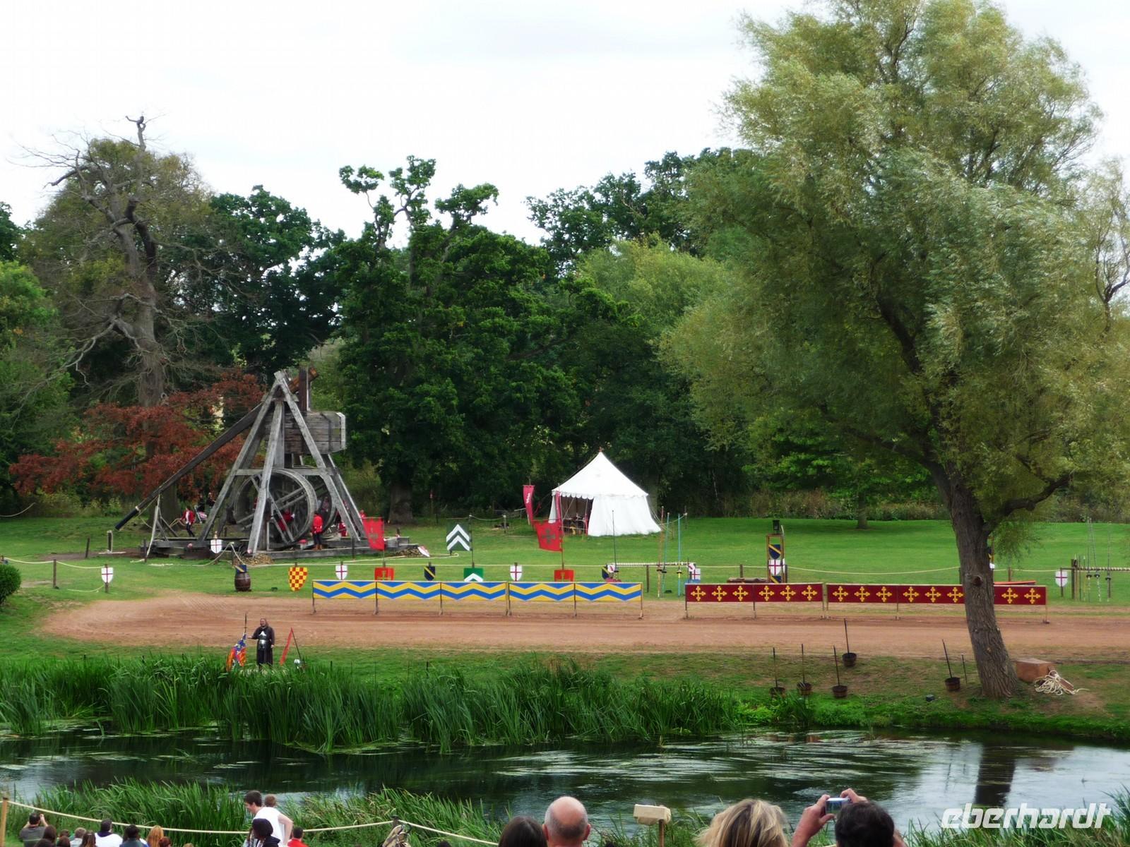 Am Nachmittag dann Warwick Castle, wir laufen gemeinsam durch die Befestigungsanlagen ins Schloss, erkunden das Gelände und lassen uns von den zahlreichen Shows unterhalten (14:30 Uhr Kampfshow von drei Rittern im Schlosshof, 15 Uhr Raubvogel-Show mit einem Großen Kautz und Adlern, 15:30 Uhr die Trebuchet-Show, der Abschuss einer brennenden Kugel mit diesem Katapult und schließlich 16:30 Uhr die Stuntshow am Fluss). Dazwischen lohnt es die Räume des Schlosses zu besichtigen, wo das mittelalterliche Leben am Hof mit Puppen von Madam Toussot nachgestellt wird.