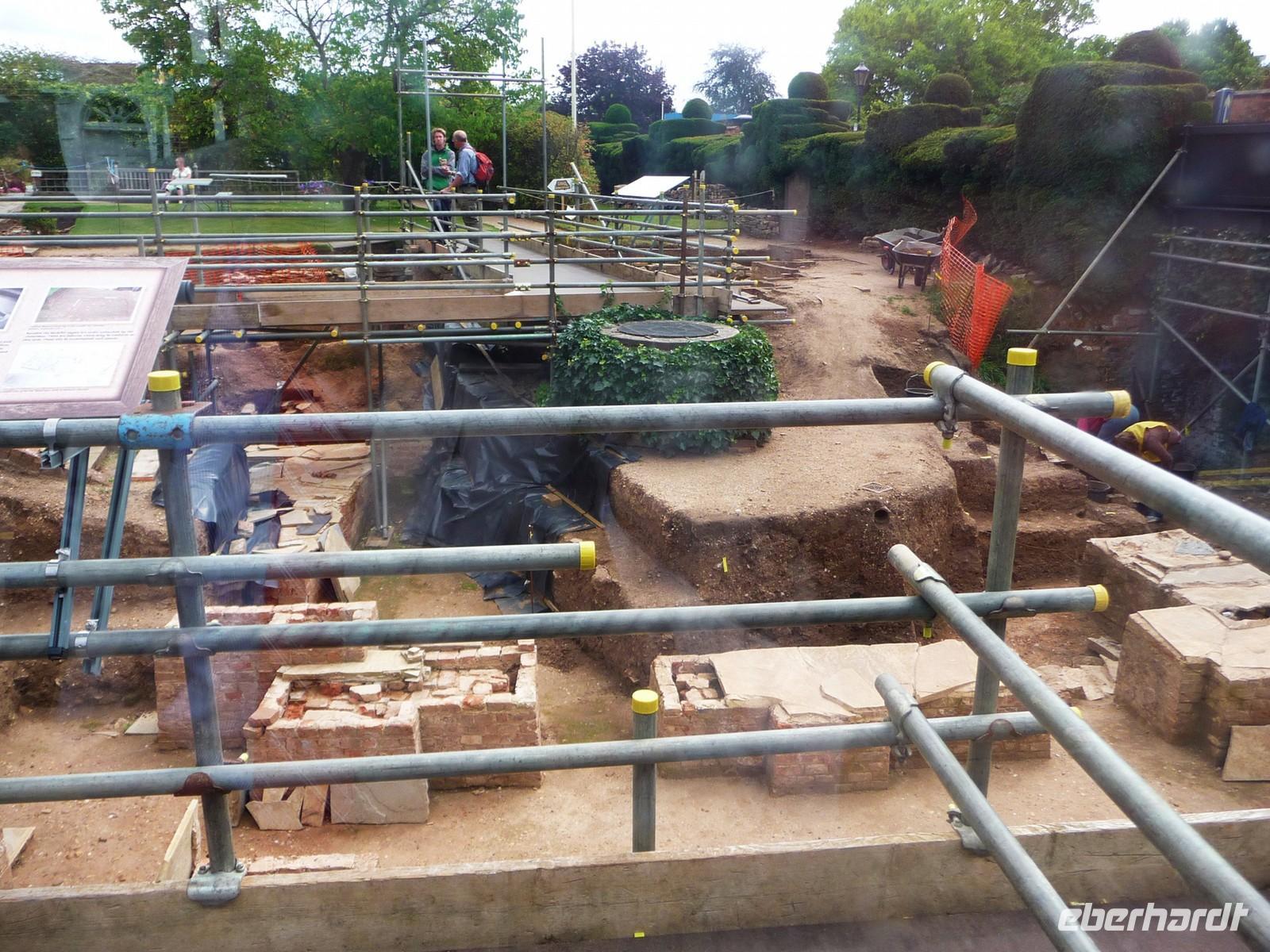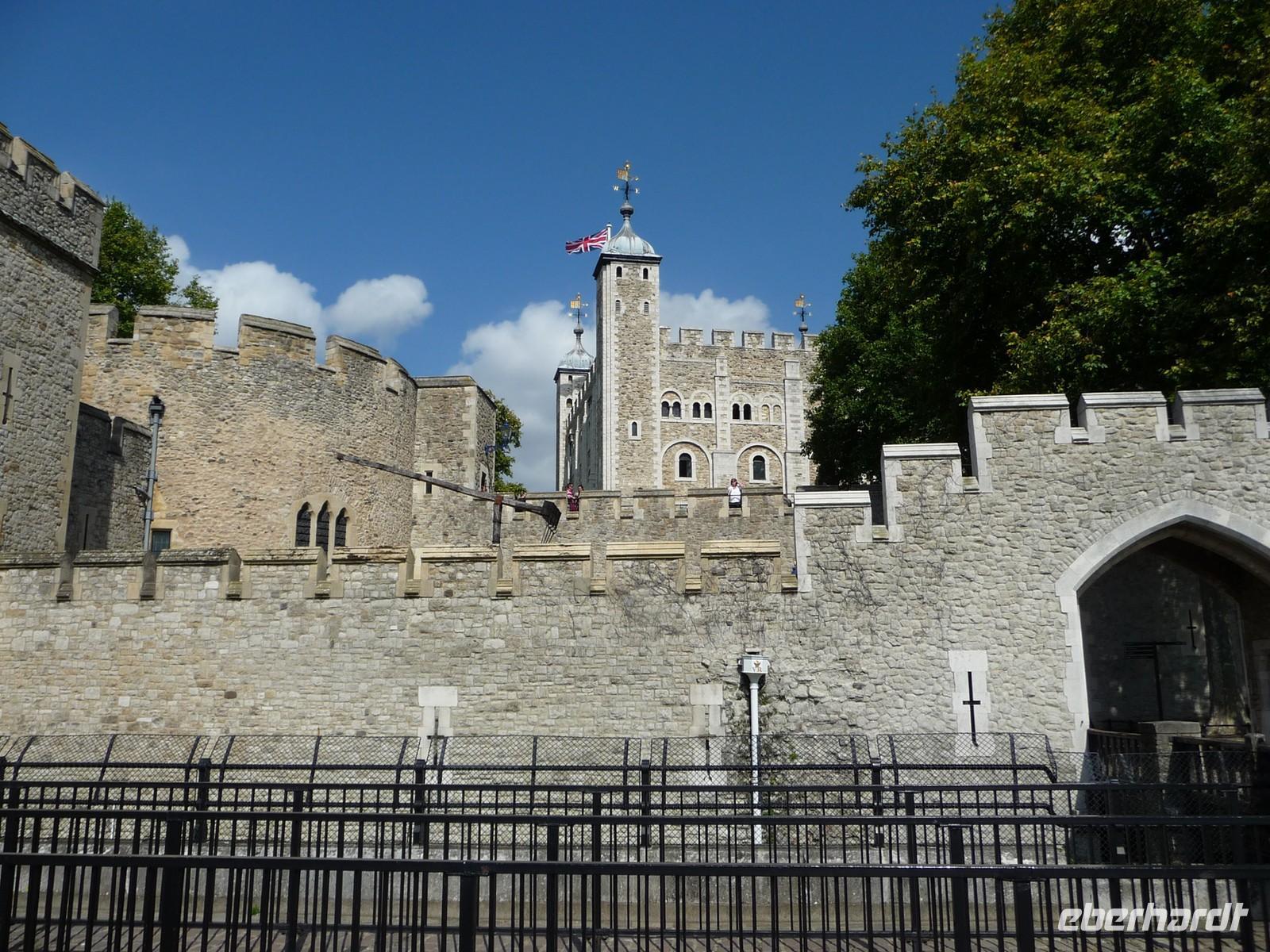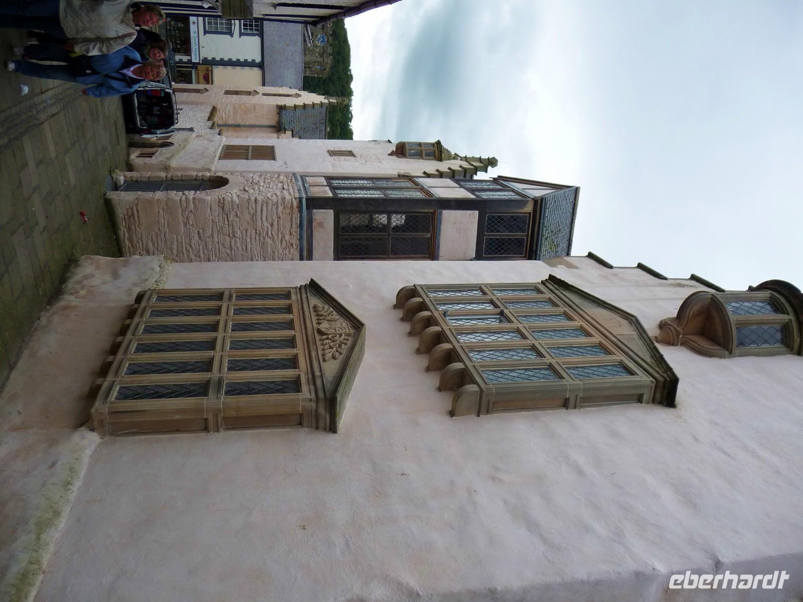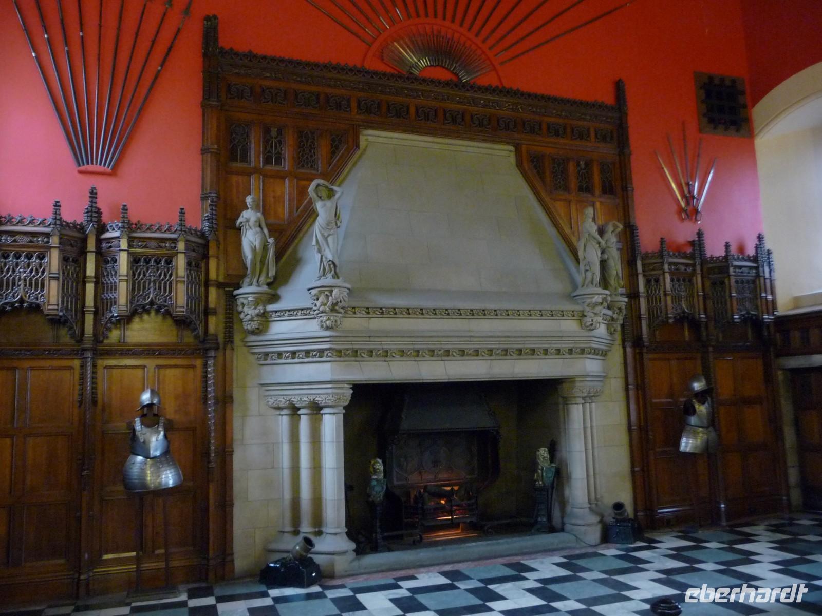 Am Nachmittag dann Warwick Castle, wir laufen gemeinsam durch die Befestigungsanlagen ins Schloss, erkunden das Gelände und lassen uns von den zahlreichen Shows unterhalten (14:30 Uhr Kampfshow von drei Rittern im Schlosshof, 15 Uhr Raubvogel-Show mit einem Großen Kautz und Adlern, 15:30 Uhr die Trebuchet-Show, der Abschuss einer brennenden Kugel mit diesem Katapult und schließlich 16:30 Uhr die Stuntshow am Fluss). Dazwischen lohnt es die Räume des Schlosses zu besichtigen, wo das mittelalterliche Leben am Hof mit Puppen von Madam Toussot nachgestellt wird.