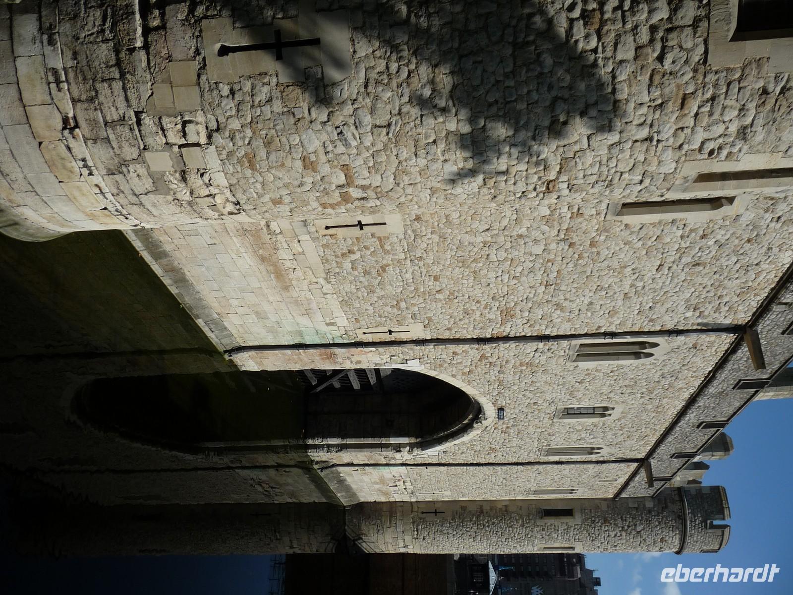 Zuerst muss unser Buschauffeur Andreas sein ganzes Können bei der engen Durchfahrt durch das Steintor der Stadtmauer demonstrieren - perfekt!