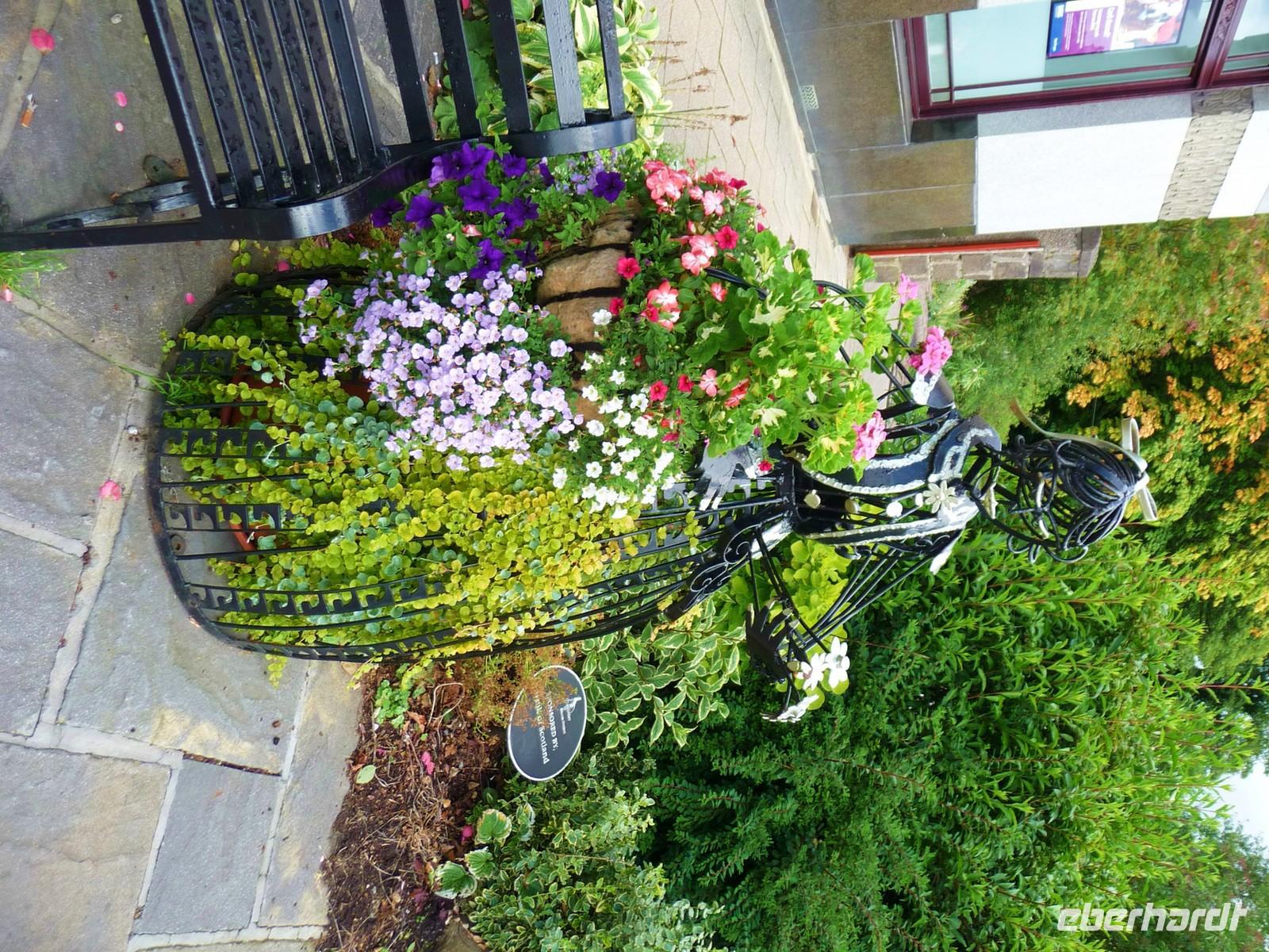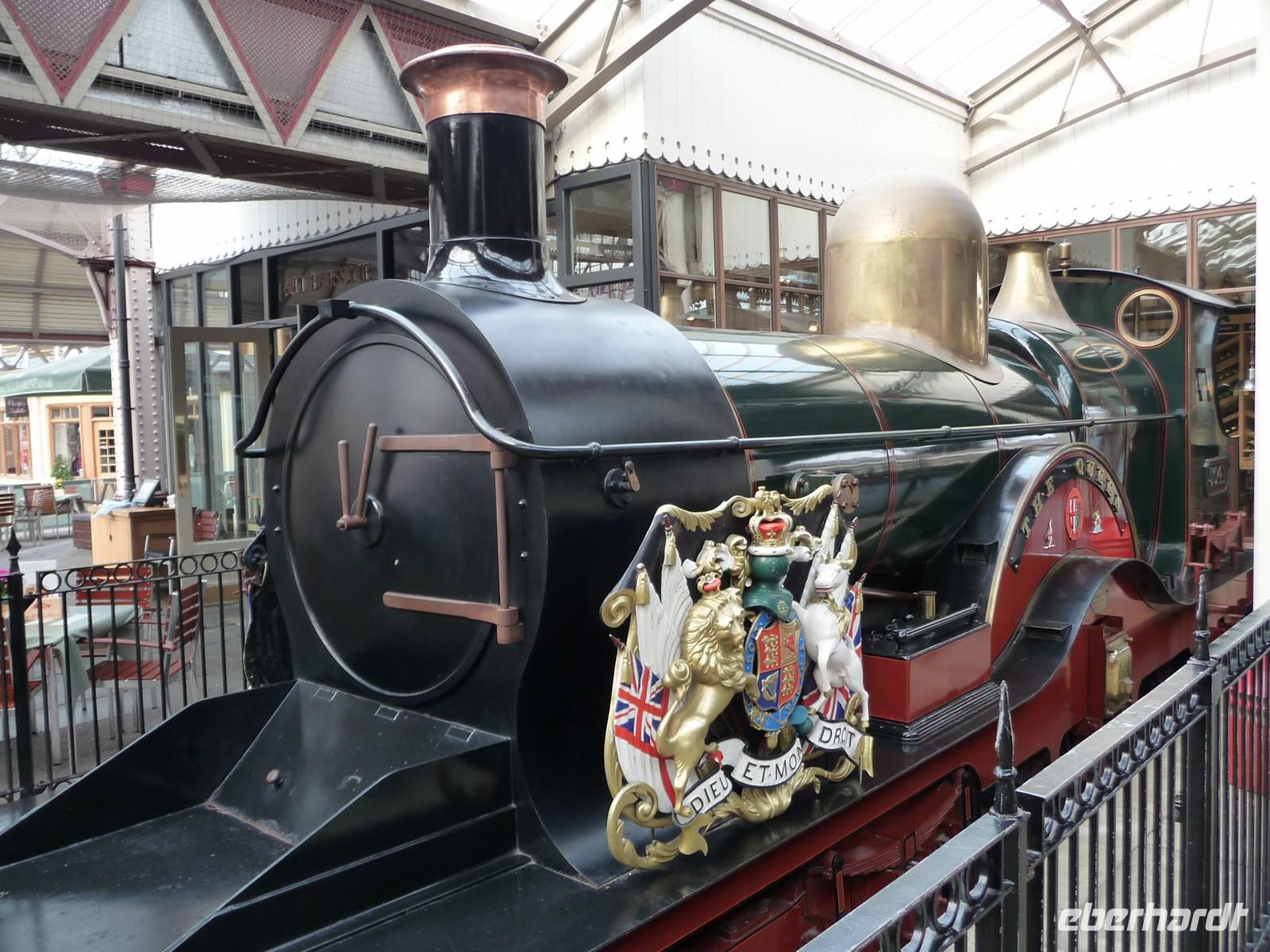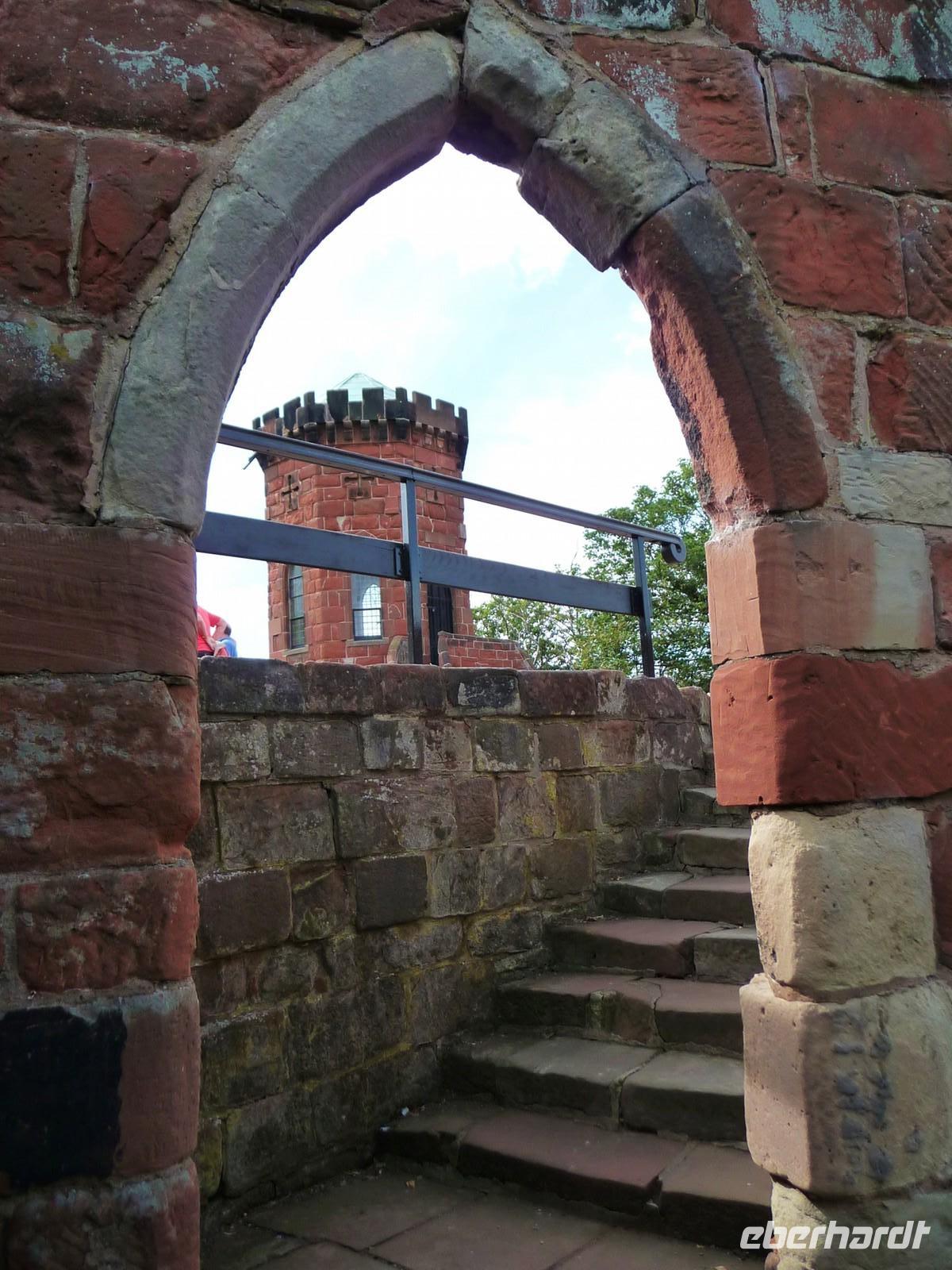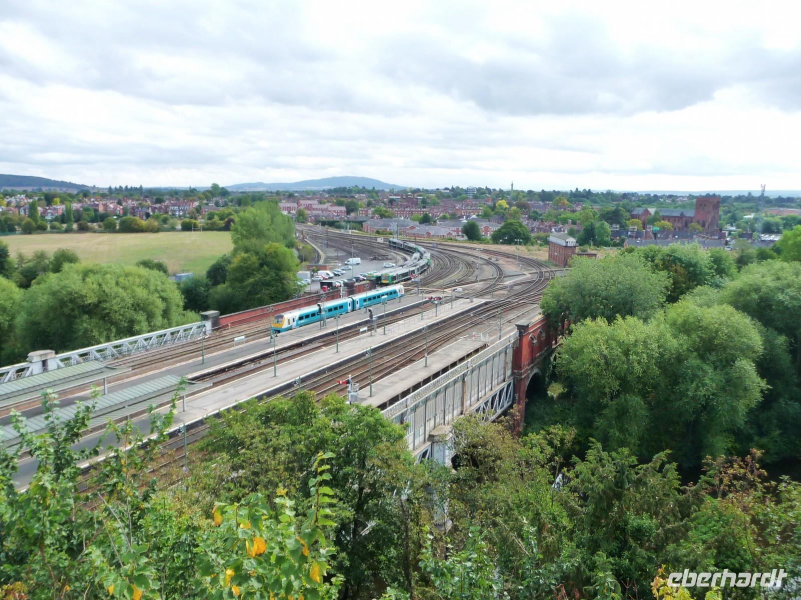 vom Coach-Parkplatz spazieren wir die Treppen zum Bahnhof hinauf, den Bahnsteig entlang bis zur alten Lok und weiter durch Fußgängerzone Richtung Castle. An der Hauptstraße empfängt und das Denkmal von Queen Victoria und unweit davon gelangen wir zum „Schiefen Haus“, dessen Holzkonstruktion im Fundament von vier Ketten zusammengehalten wird, dann zur Guid Hall,