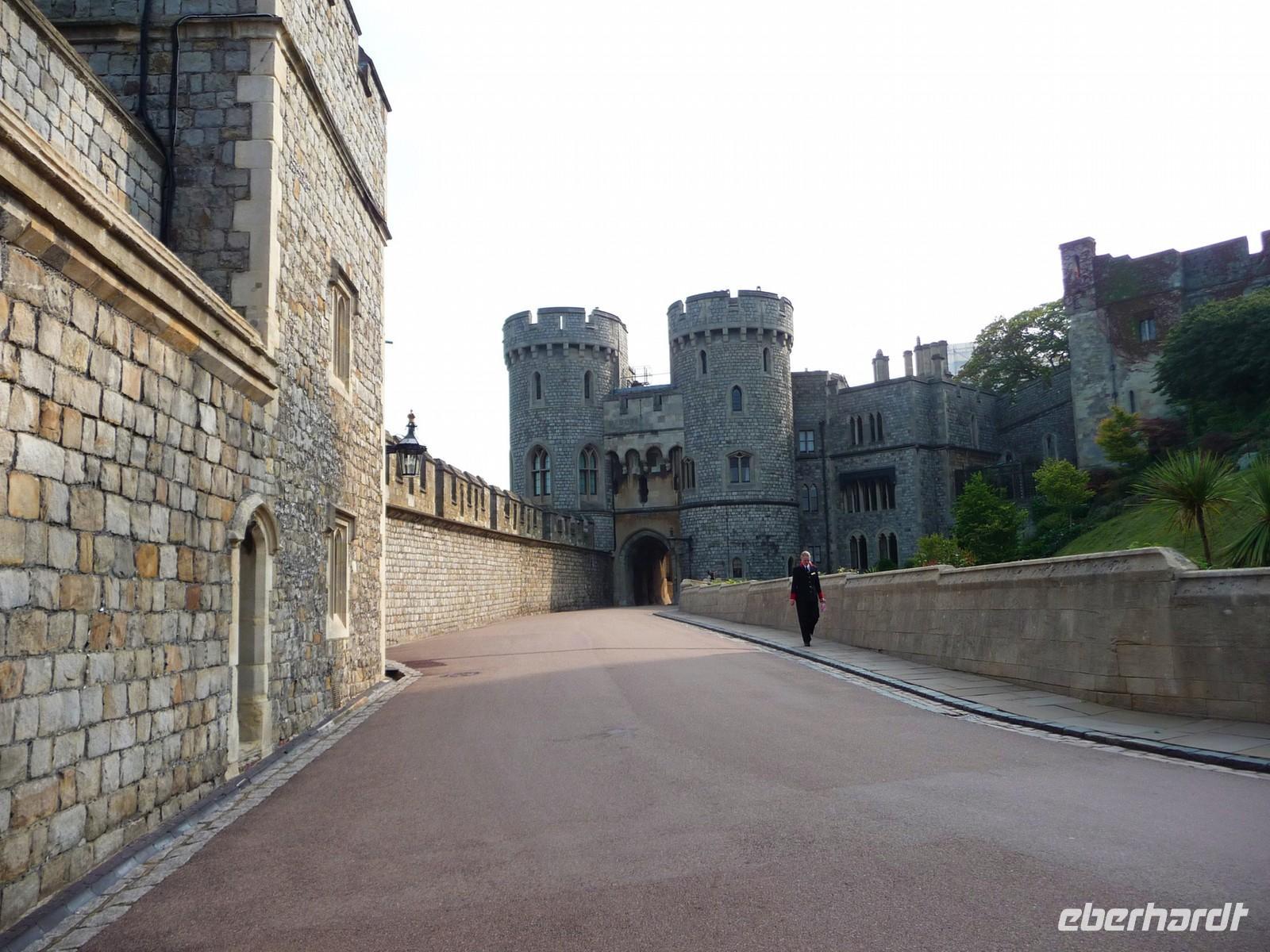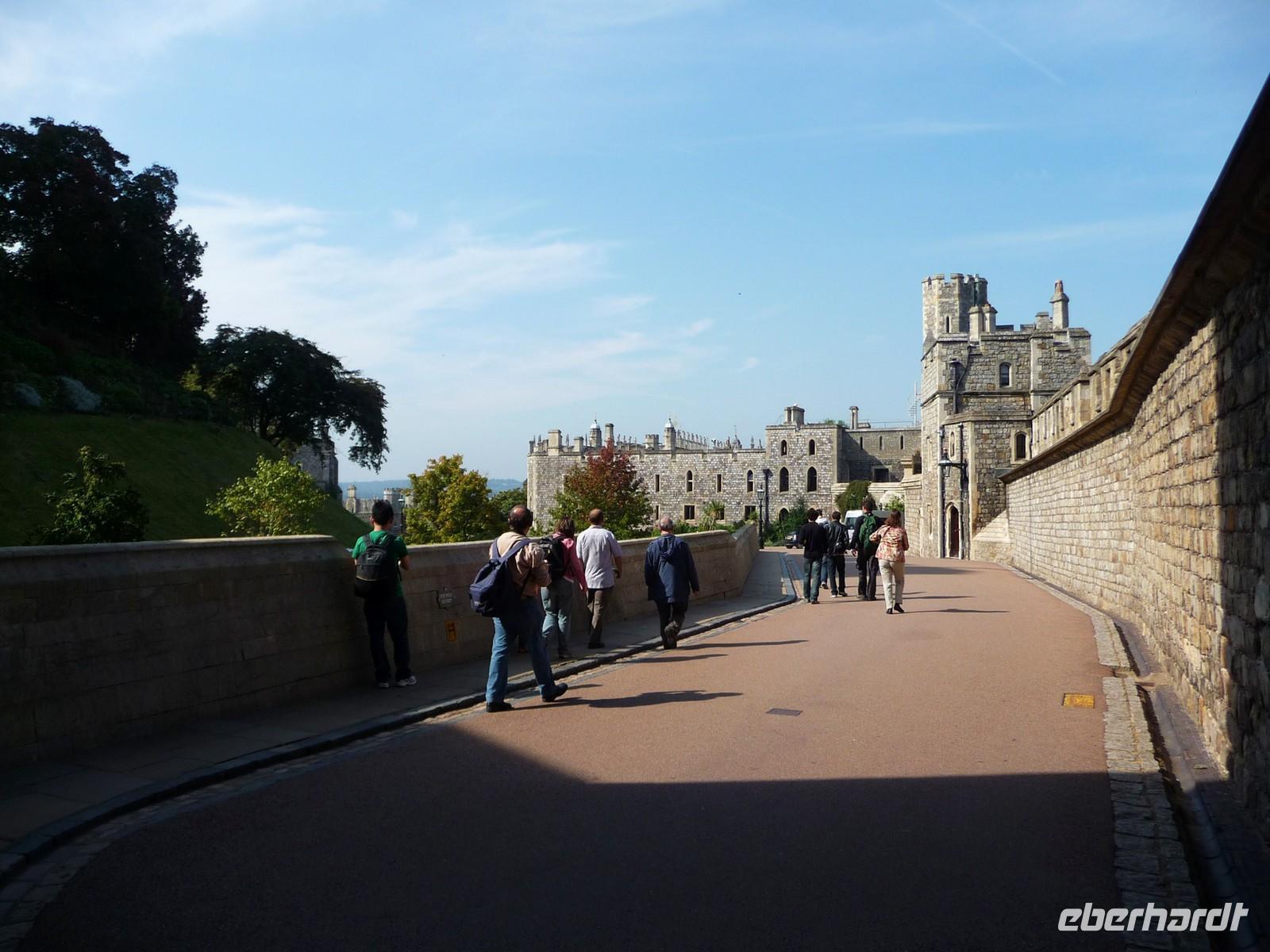 schließlich weiter zum Haupteingang des Castle hinauf. Nach der Sicherheits-Kontrolle am Einlass werden wir mit Orientierungsplänen und Audioguides ausgerüstet und können so zum individuellen Besuch der Schlossanlage aufbrechen. Befestigungsanlagen, Terrasse, die königlichen Repräsentationsräume und die darin enthaltenen Sammlungen sind beeindruckend und begeistern. Ebenso die Kapelle und zum Abschluss das Foto mit der Wache.