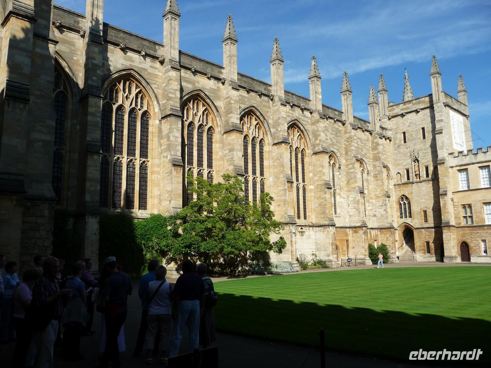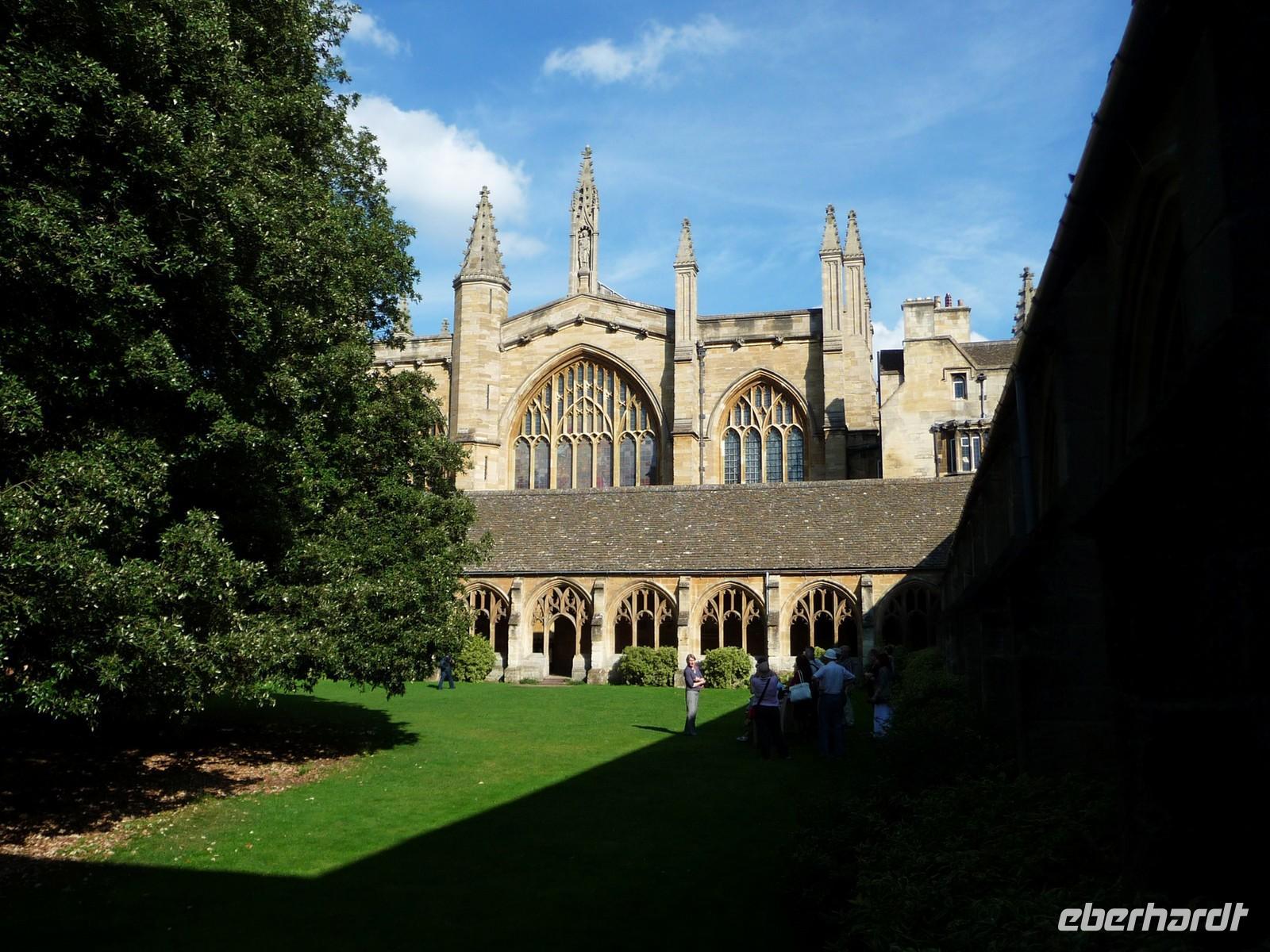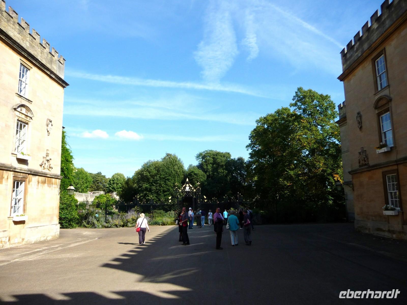 In der Stadt umfahren wir einmal unter den strengen Blicken der Polizei Martyrs Memorial und getrauen uns endlich neben dem Ashmolean Museum auszusteigen. Während die Gäste im Schatten grüner Bäume kurz warten hole ich unsere Stadtführerinnen am Trinity College ab. Jane und Ursula teilen unsere Reisegruppe in zwei Gruppen und beginnen die Stadtführung durch das sehenswerte Oxford. Gern bezahlen wir die 1,50 £ Eintritt um im New College einmal hinter die Mauern eines College sehen zu können. Speisesaal, Park und Kreuzgang bieten dabei viele interessante Details. Die königliche Bibliothek und jede Menge andere Sehenswürdigkeiten und Geschichten runden den erlebnisreichen Stadtrundgang ab. Danke Jane und Ursula für die wirklich tolle Führung!