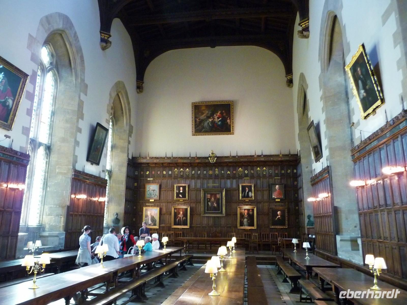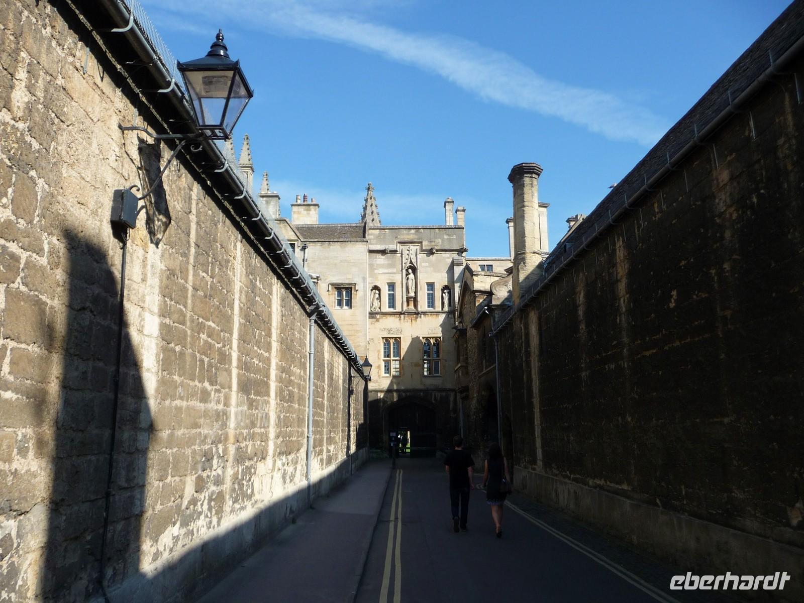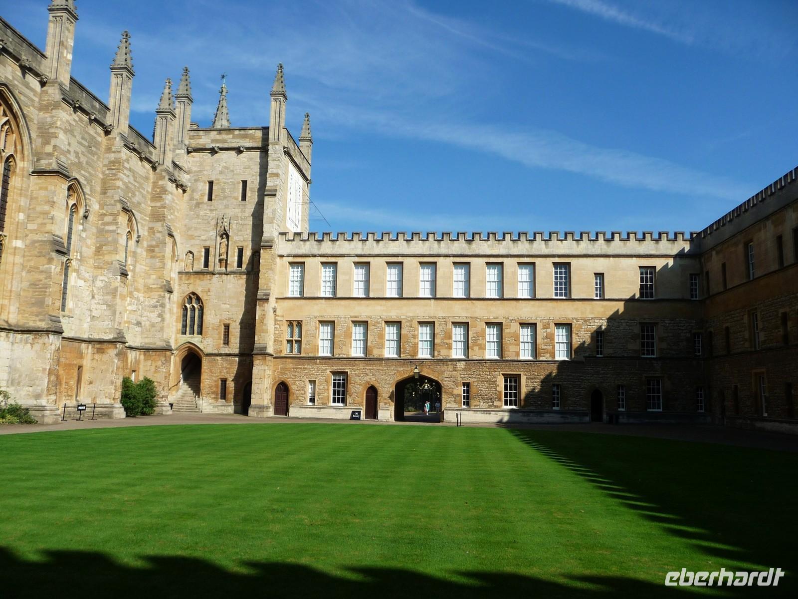 In der Stadt umfahren wir einmal unter den strengen Blicken der Polizei Martyrs Memorial und getrauen uns endlich neben dem Ashmolean Museum auszusteigen. Während die Gäste im Schatten grüner Bäume kurz warten hole ich unsere Stadtführerinnen am Trinity College ab. Jane und Ursula teilen unsere Reisegruppe in zwei Gruppen und beginnen die Stadtführung durch das sehenswerte Oxford. Gern bezahlen wir die 1,50 £ Eintritt um im New College einmal hinter die Mauern eines College sehen zu können. Speisesaal, Park und Kreuzgang bieten dabei viele interessante Details. Die königliche Bibliothek und jede Menge andere Sehenswürdigkeiten und Geschichten runden den erlebnisreichen Stadtrundgang ab. Danke Jane und Ursula für die wirklich tolle Führung!
