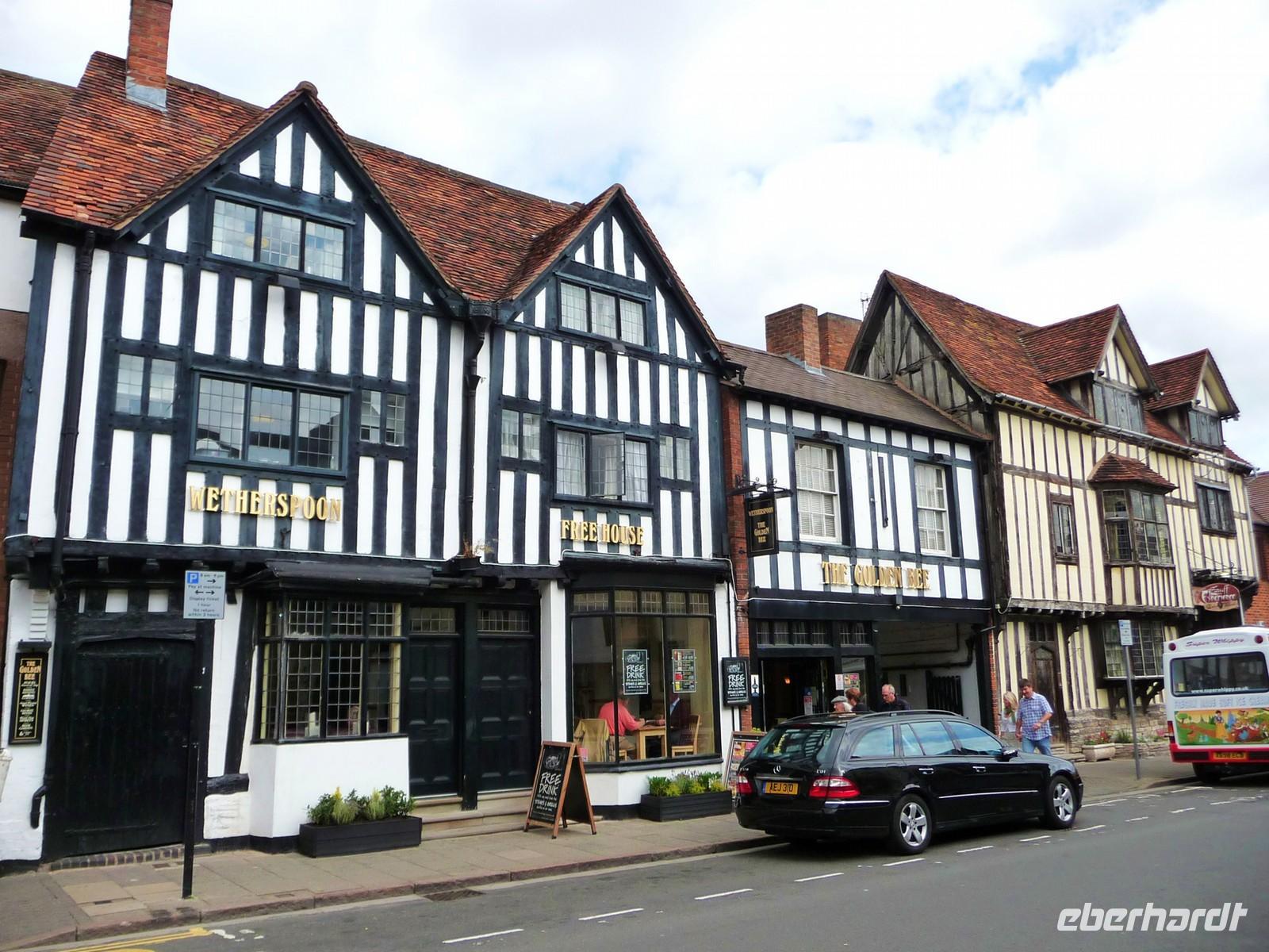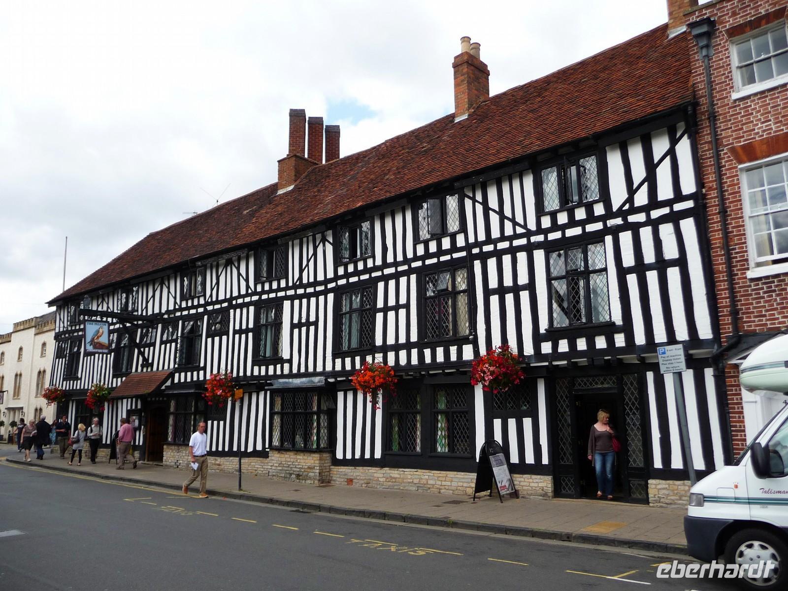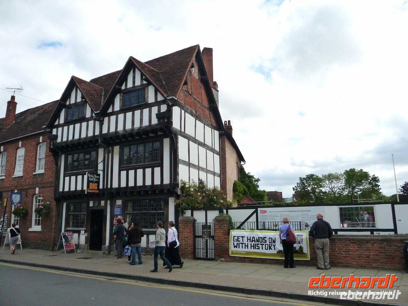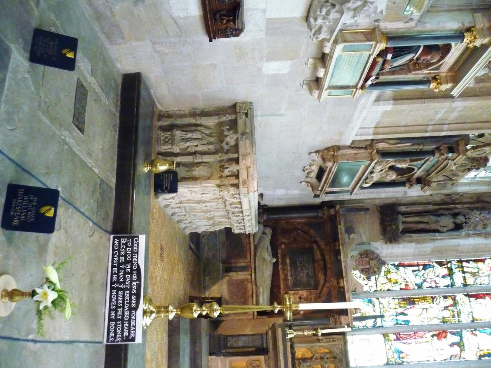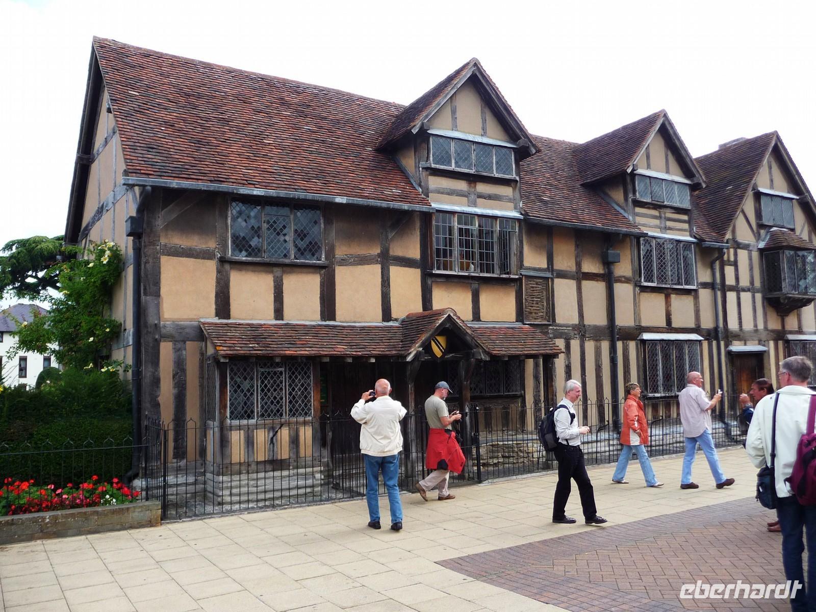 Wieder ist schönes Wetter, nur zu Tagesbeginn ist es noch etwas wolkig. Wir fahren zuerst in die Cotswolds, als eberhardt-Wow für die Gäste, erleben die Landschaft im englischen Inland und besichtigen den hübschen Ort Bourton- on-the-Water. Dann geht es weiter nach Stratford-upon-Avon, der Geburts- und Heimatstadt Shakespeares. Bei Sonnenschein spazieren wir vom Besucher- und Informationszentrum neben dem Shakespeare-Geburtshaus durch die Fußgängerzone, weiter zum Royal Shakespeare Theatre - leider gelingt es durch die laufenden Proben nur Wenigen kurz in den Theatersaal hineinzuschauen -danach geht es weiter zur Trinity Church, an das Grab Shakespeares und schließlich zum New Place/Nash’s House und zur Guid Hall.