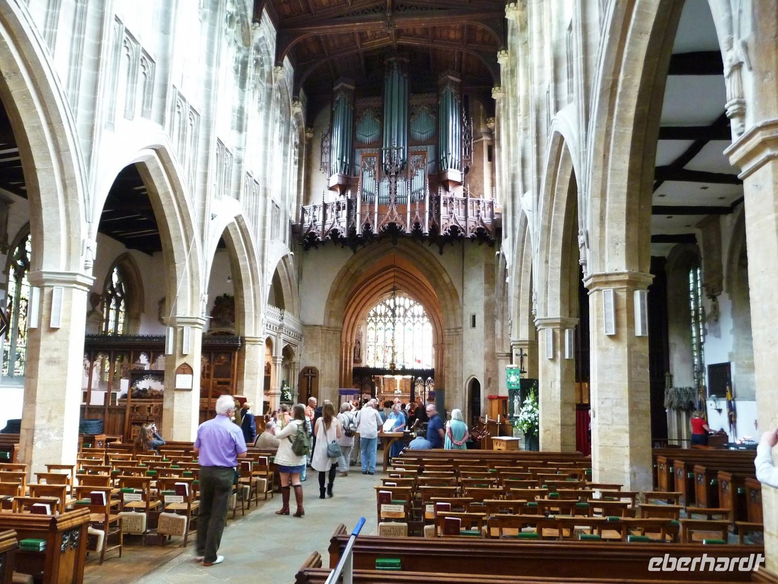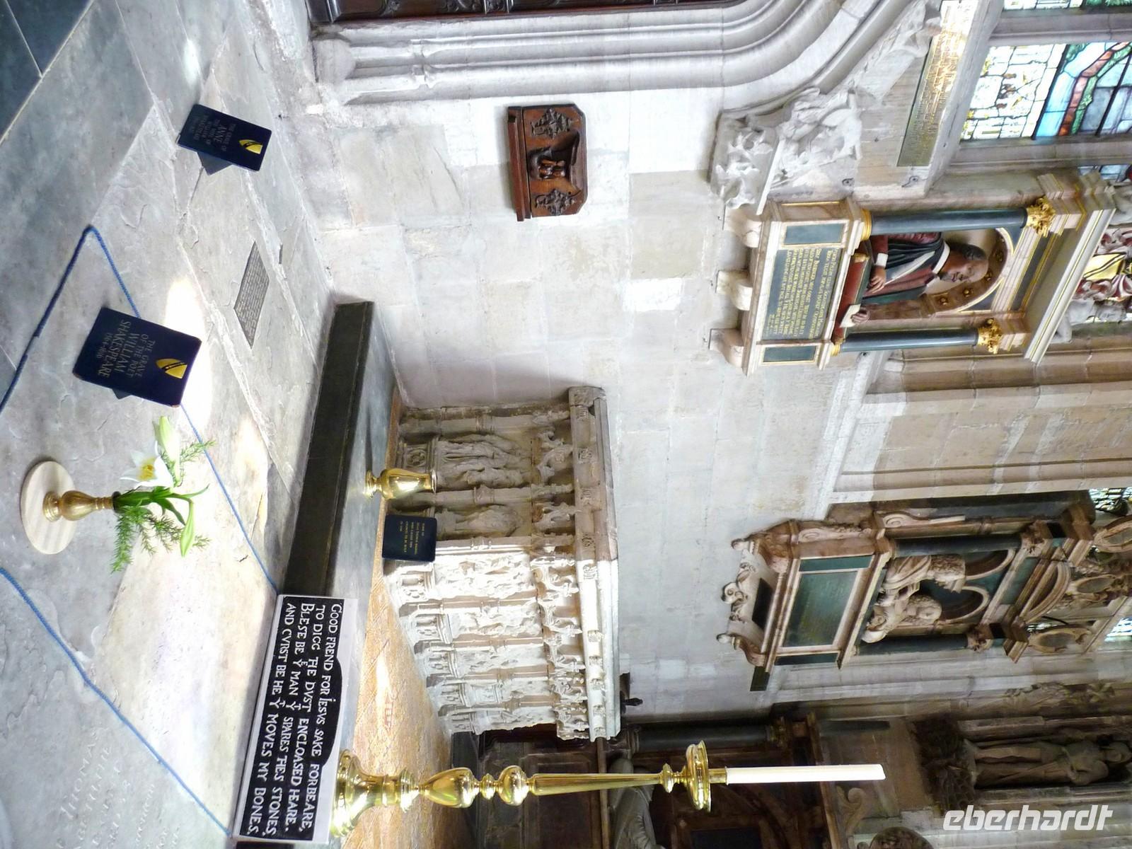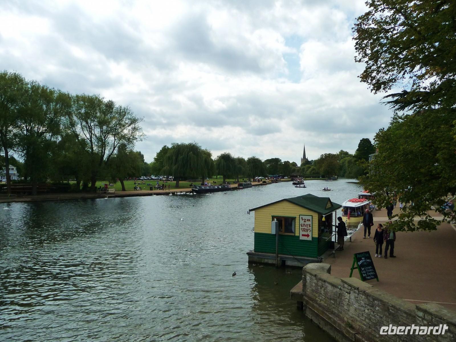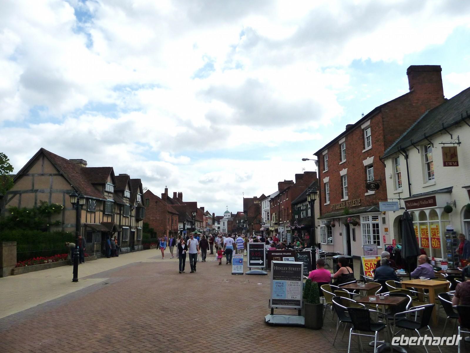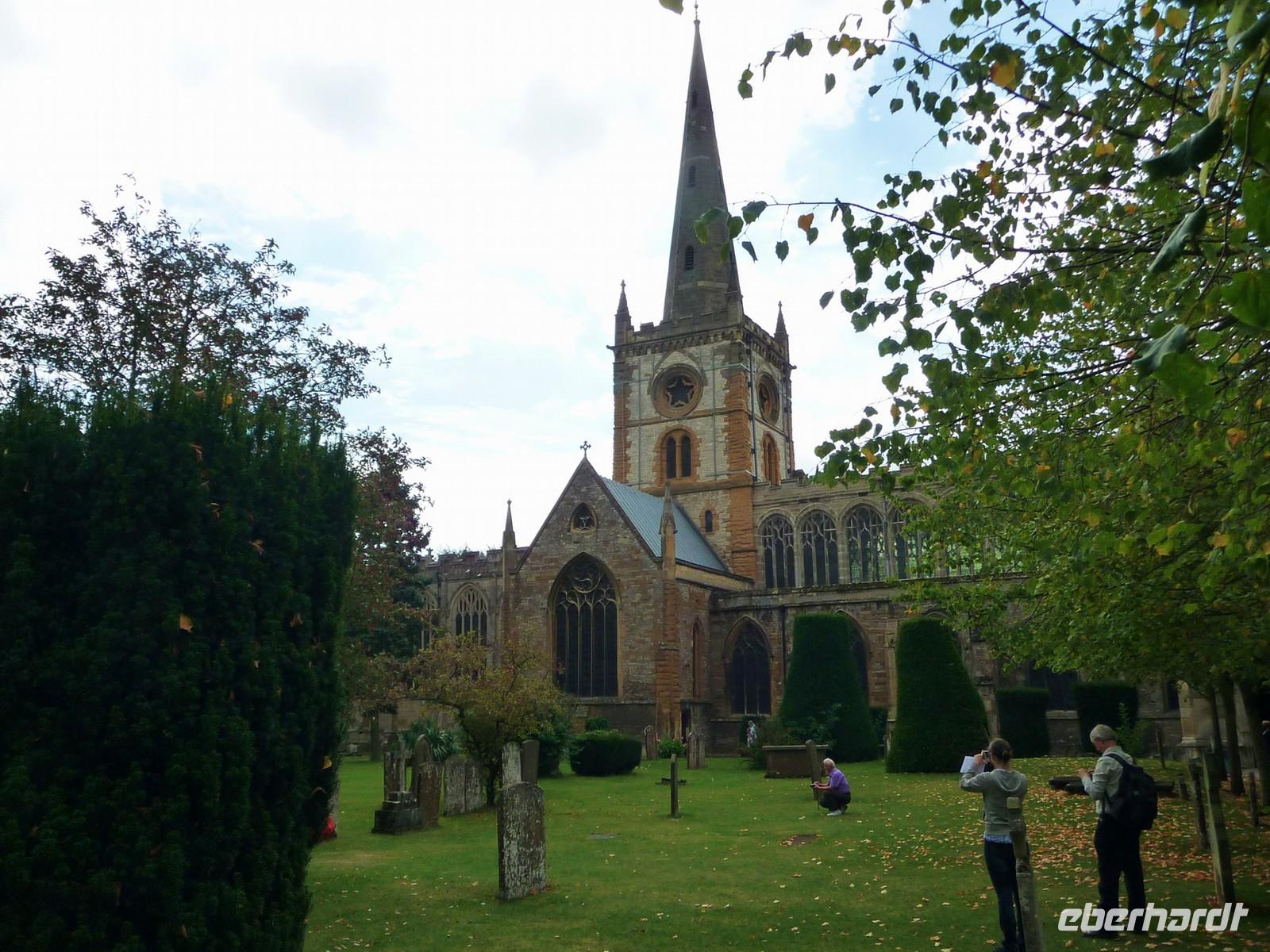 Wieder ist schönes Wetter, nur zu Tagesbeginn ist es noch etwas wolkig. Wir fahren zuerst in die Cotswolds, als eberhardt-Wow für die Gäste, erleben die Landschaft im englischen Inland und besichtigen den hübschen Ort Bourton- on-the-Water. Dann geht es weiter nach Stratford-upon-Avon, der Geburts- und Heimatstadt Shakespeares. Bei Sonnenschein spazieren wir vom Besucher- und Informationszentrum neben dem Shakespeare-Geburtshaus durch die Fußgängerzone, weiter zum Royal Shakespeare Theatre - leider gelingt es durch die laufenden Proben nur Wenigen kurz in den Theatersaal hineinzuschauen -danach geht es weiter zur Trinity Church, an das Grab Shakespeares und schließlich zum New Place/Nash’s House und zur Guid Hall.