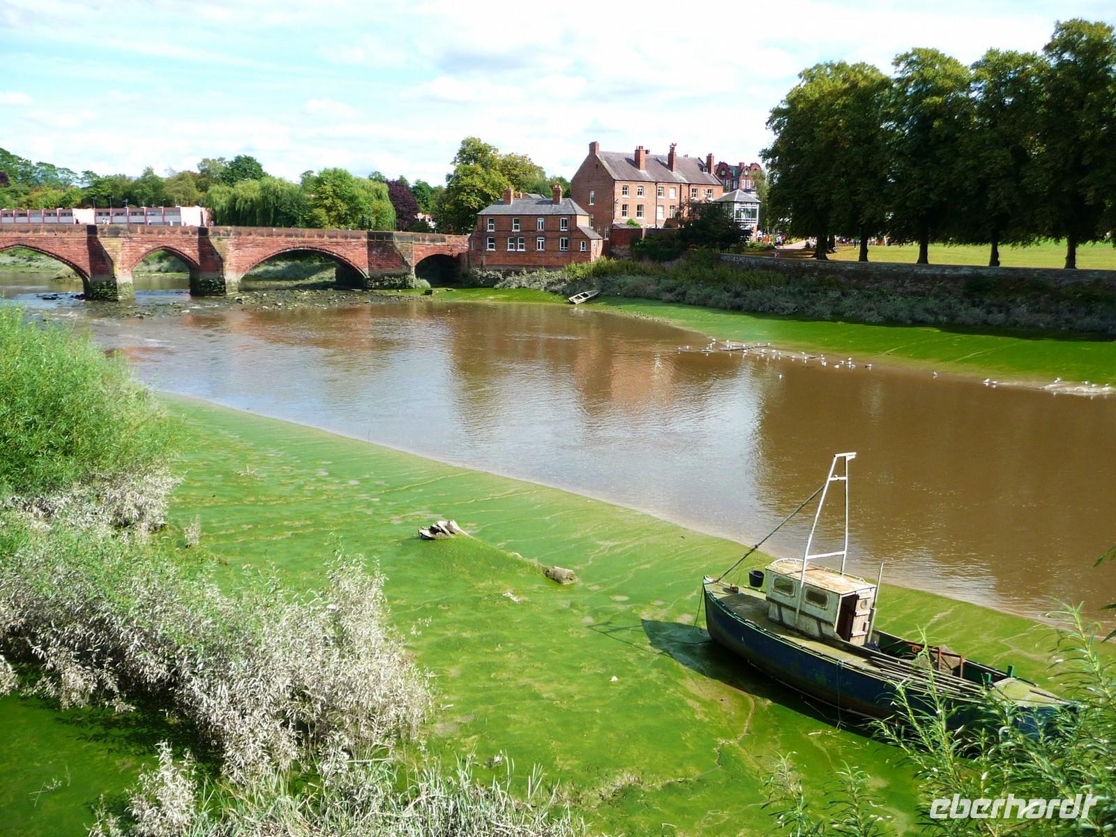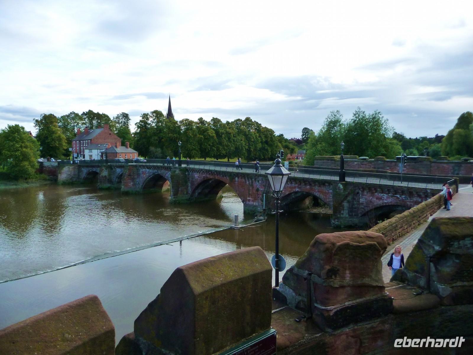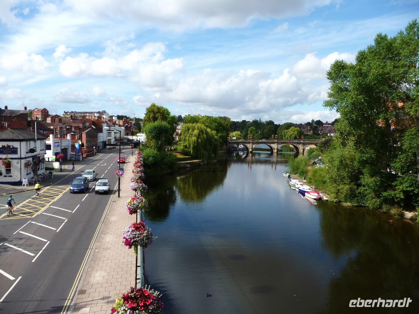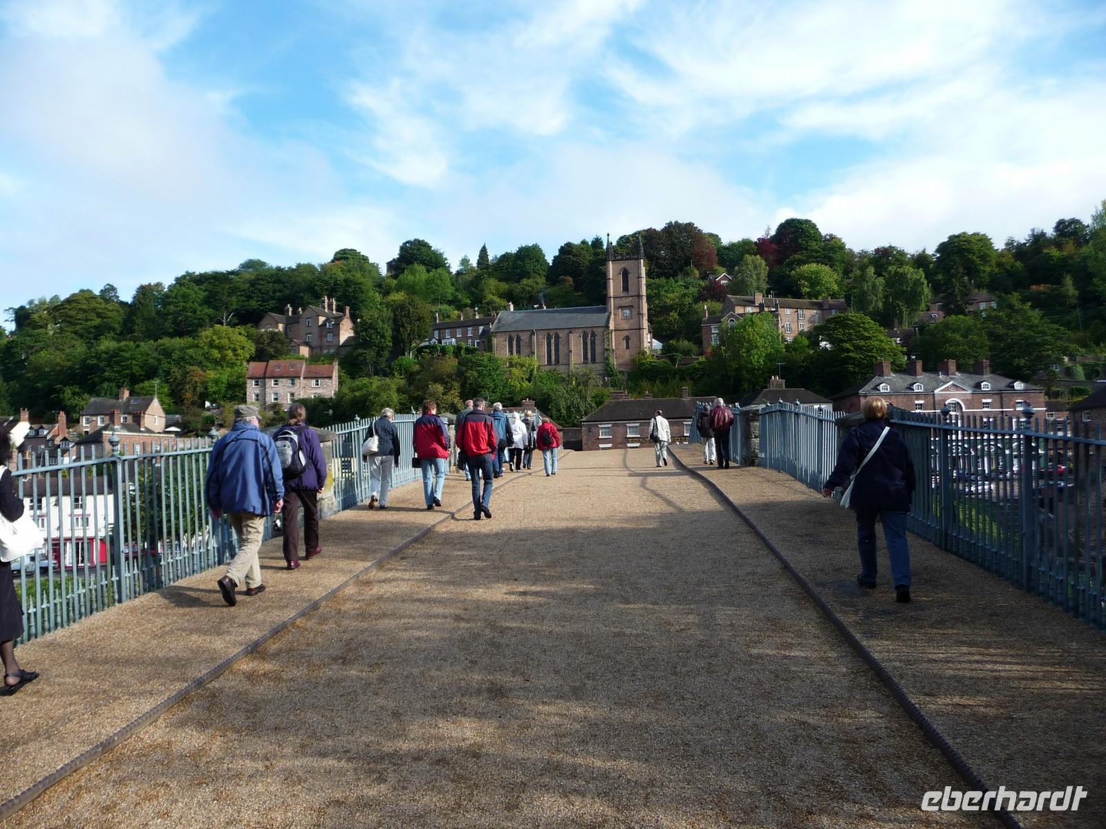 Heute fahren wir an Birmingham vorbei zur Ironbridge - der ersten Stahlgussbrücke der Welt, wo wir vom Busparkplatz zuerst gemeinsam über die Brücke laufen und anschließend suchen wir die schönsten Fotomotive. Gestärkt mit einem Kaffee beginnt dann die Weiterfahrt über die Landstraße nach Shrewsbury. Vom Parkplatz Franklin Park gehen wir vorbei an der Gäste-Information im „Alten Haus“ zum Marktplatz , von wo aus wir das Castle und die Innenstadt mit den hübschen Gassen und alten Häusern besichtigen (die Stadt ist Blumenstadt 1998 mit Preisen auch 2008 und 2009).
