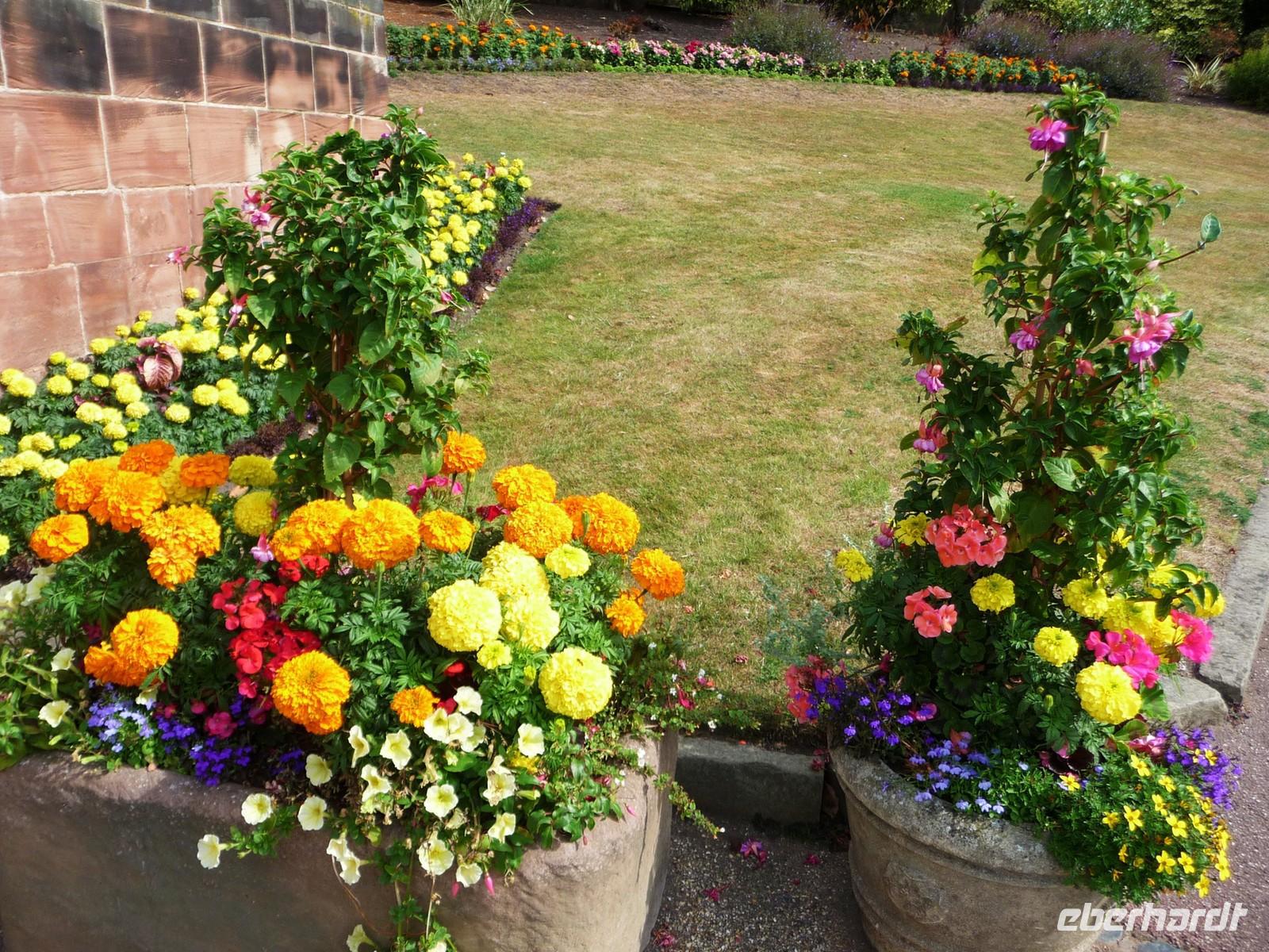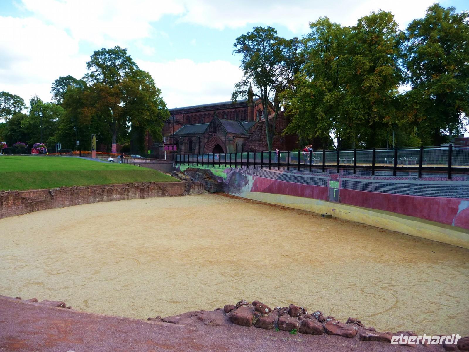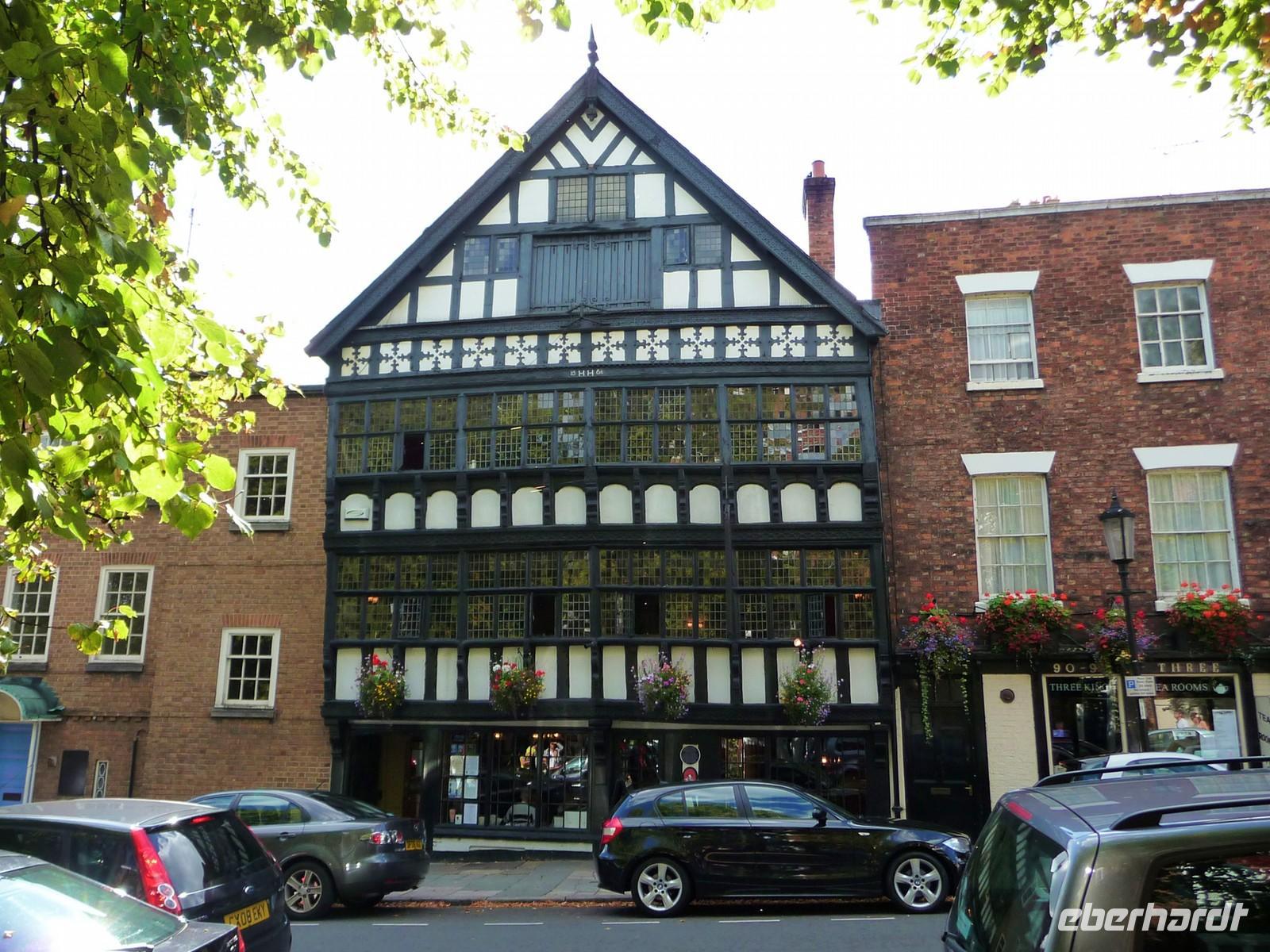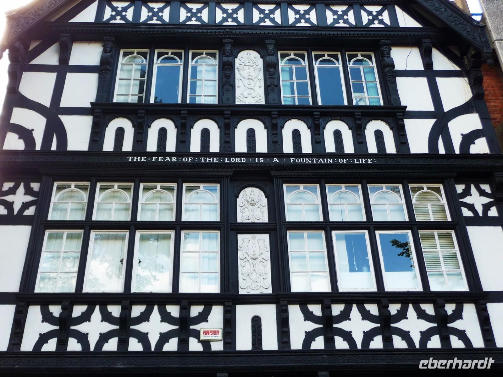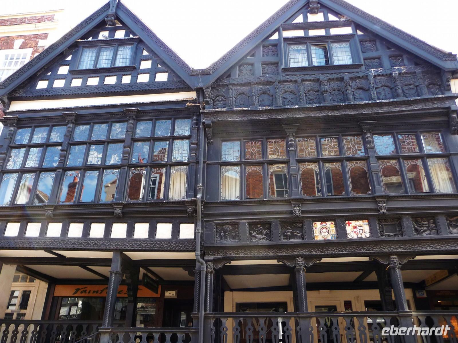 Nach dem Mittag erreichen wir Chester, die historische englische Stadt nahe der Grenze zu Wales. Am Little Rodee Coach Park unterhalb der Burganlage erwarten uns die beiden Stadtführer schon - Janett und Peter - beide begeistern ihre Gruppen auf dem anschließenden Stadtrundgang. Das wunderschöne Wetter tut sein übriges. Das alte Wehr und die alte Brücke zur Stadt, historische Häuser wie die 7 Gleichen, die römischen Befestigungsanlagen, das Amphitheater, die Cathedral, die Rows sind einfach beeindruckend. Am Rathaus, mit den Uhren nach allen Richtungen, außer nach Westen, damit die Waliser die Zeit nicht sehen können, endet die Stadtführung.
