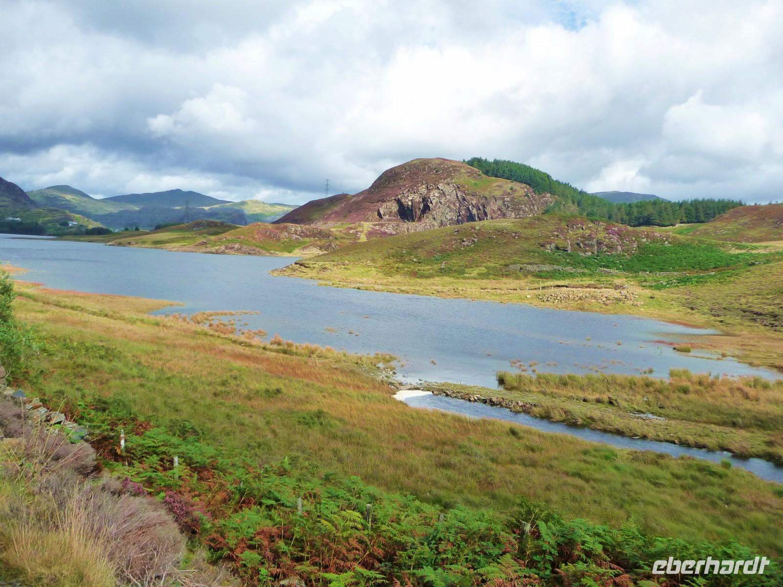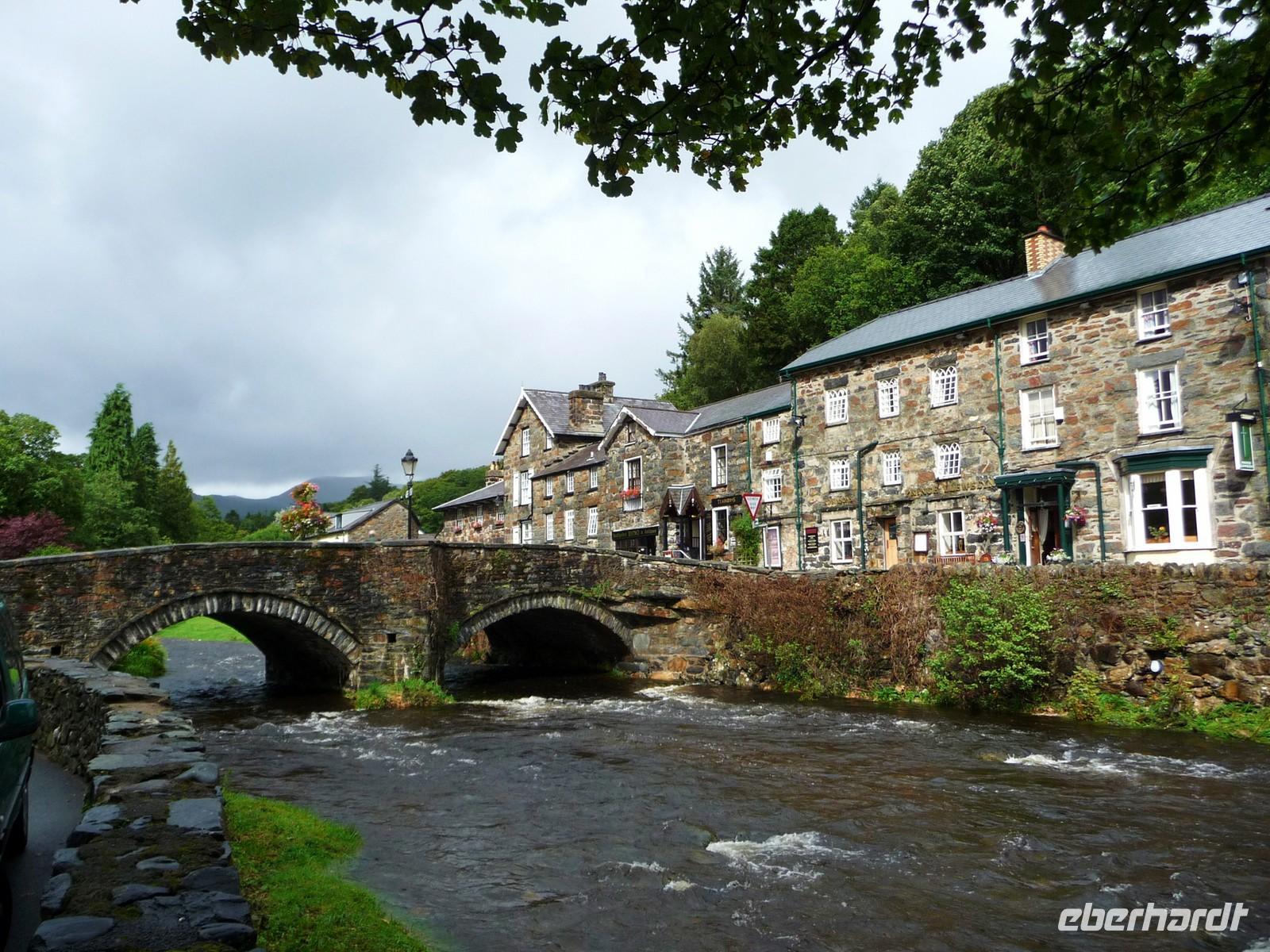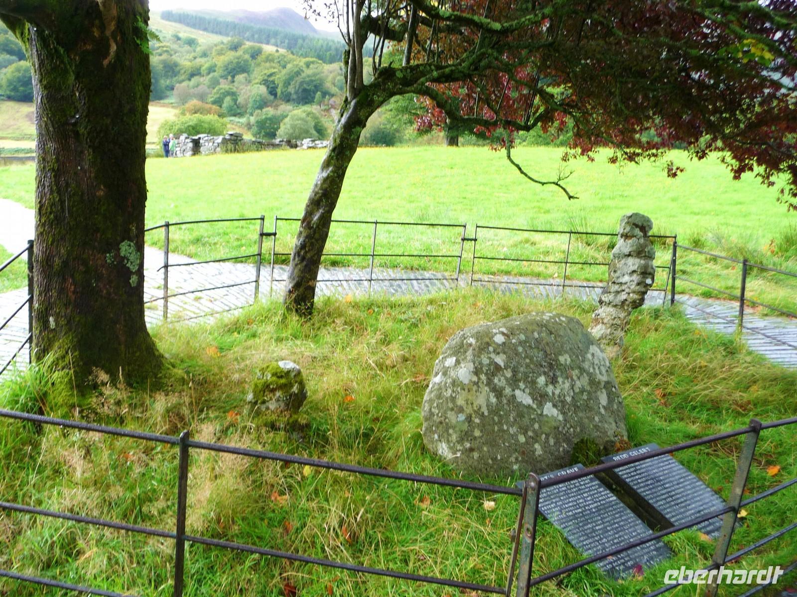 11:00 Uhr starten wir Richtung Porthmadog, es geht hinein in den Snowdon Nationalpark, vorbei am Lynn Gwellyn, dem malerisch gelegenen See. Leider sind wegen eines Marathonlaufes alle Parkbuchten besetzt und auch der Regen setzt immer wieder ein. Wir fahren deshalb bis Beddgelert, wo uns die tragische Legende vom begrabenen Hund Gelert gefangen nimmt - hier spazieren wir zum Grab und machen eine schöne Mittagspause nahe dem Kleinbahnbahnhof.