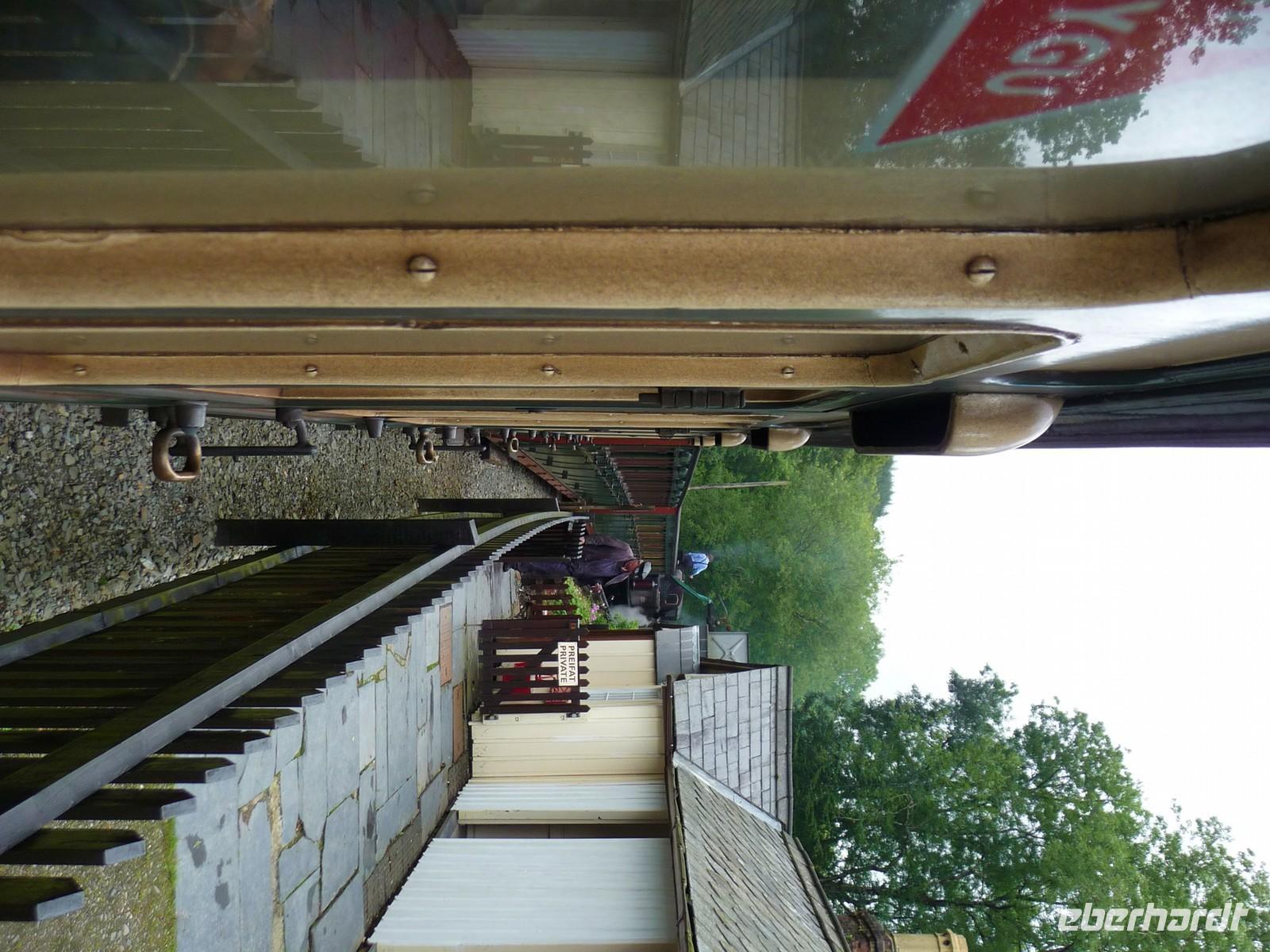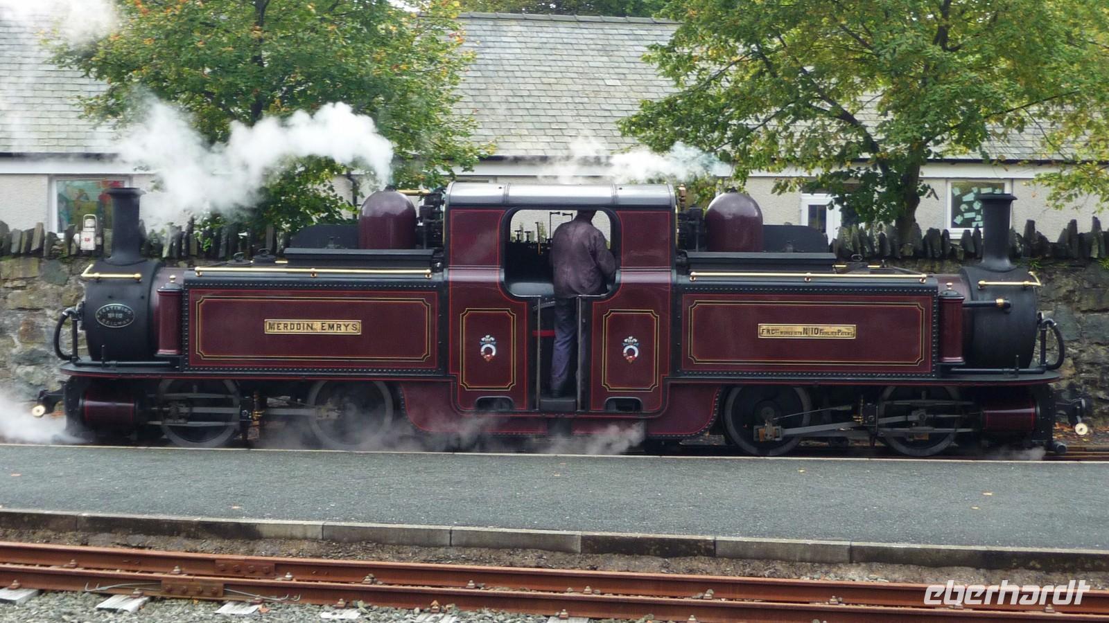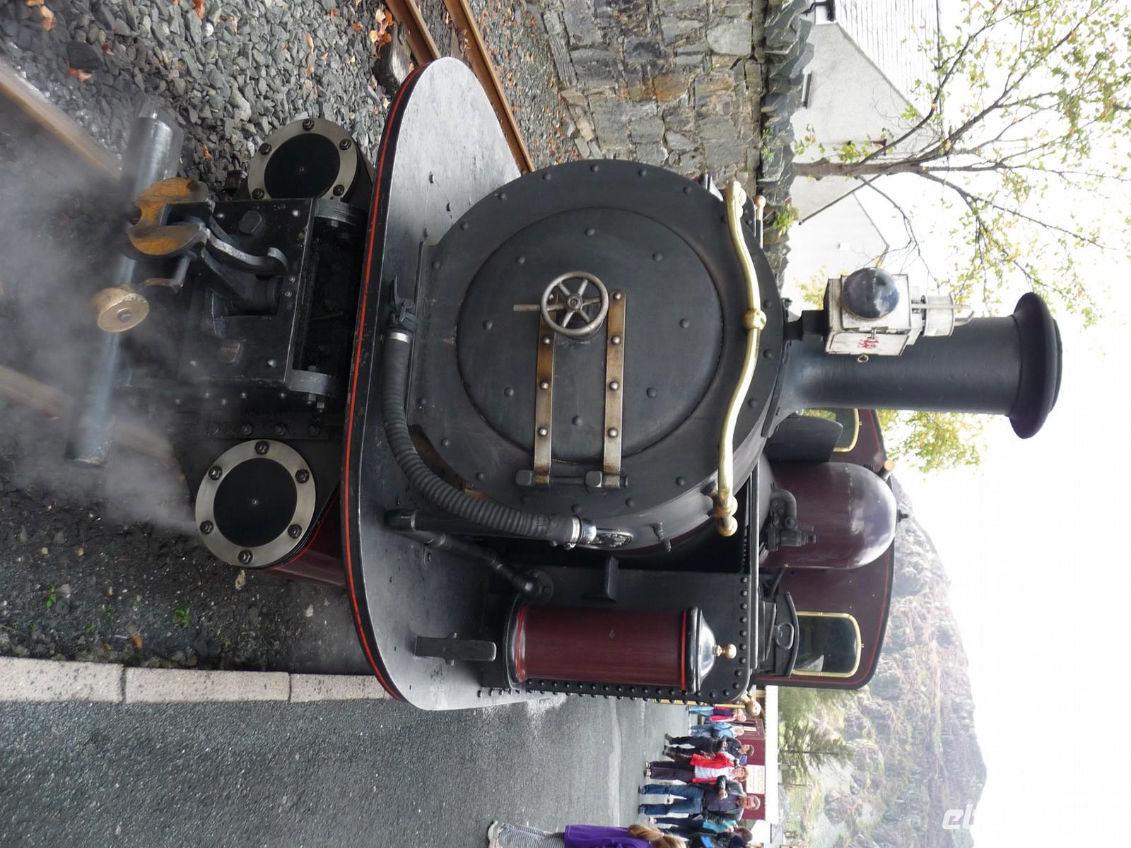 Danach geht es weiter durch das malerische Tal in Richtung Porthmadog. Ein braunes Schild weist uns den Weg zur Ffestinog Railway. Wir nehmen in den Wagons der Schmalspurbahn platz und fahren mit dem Dampfzug