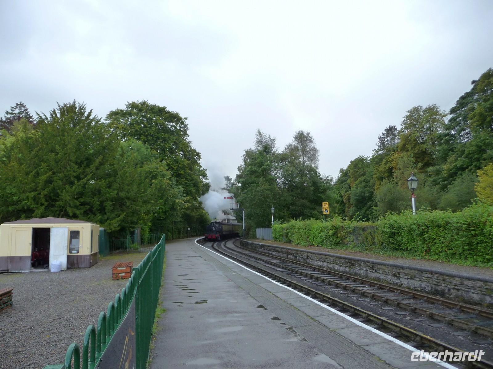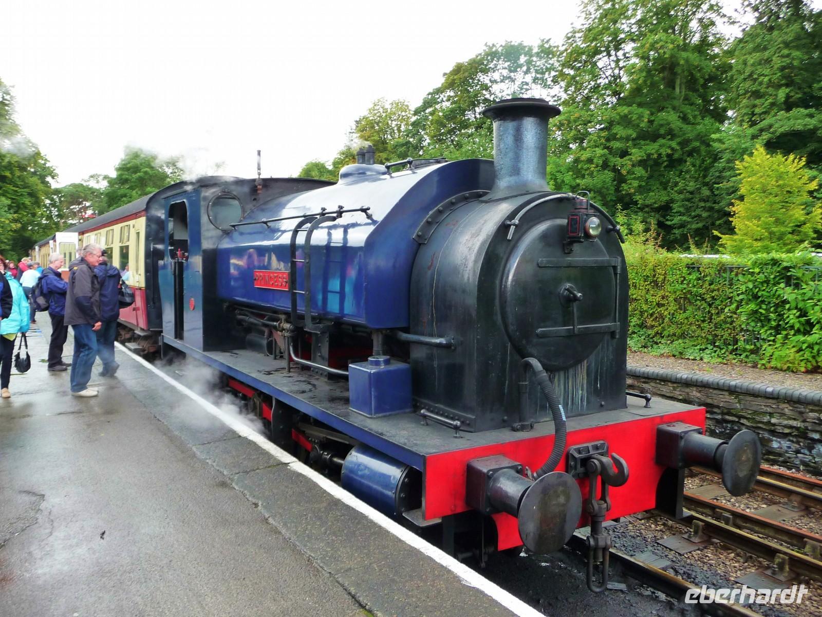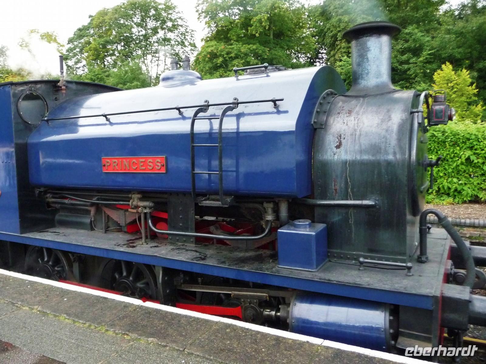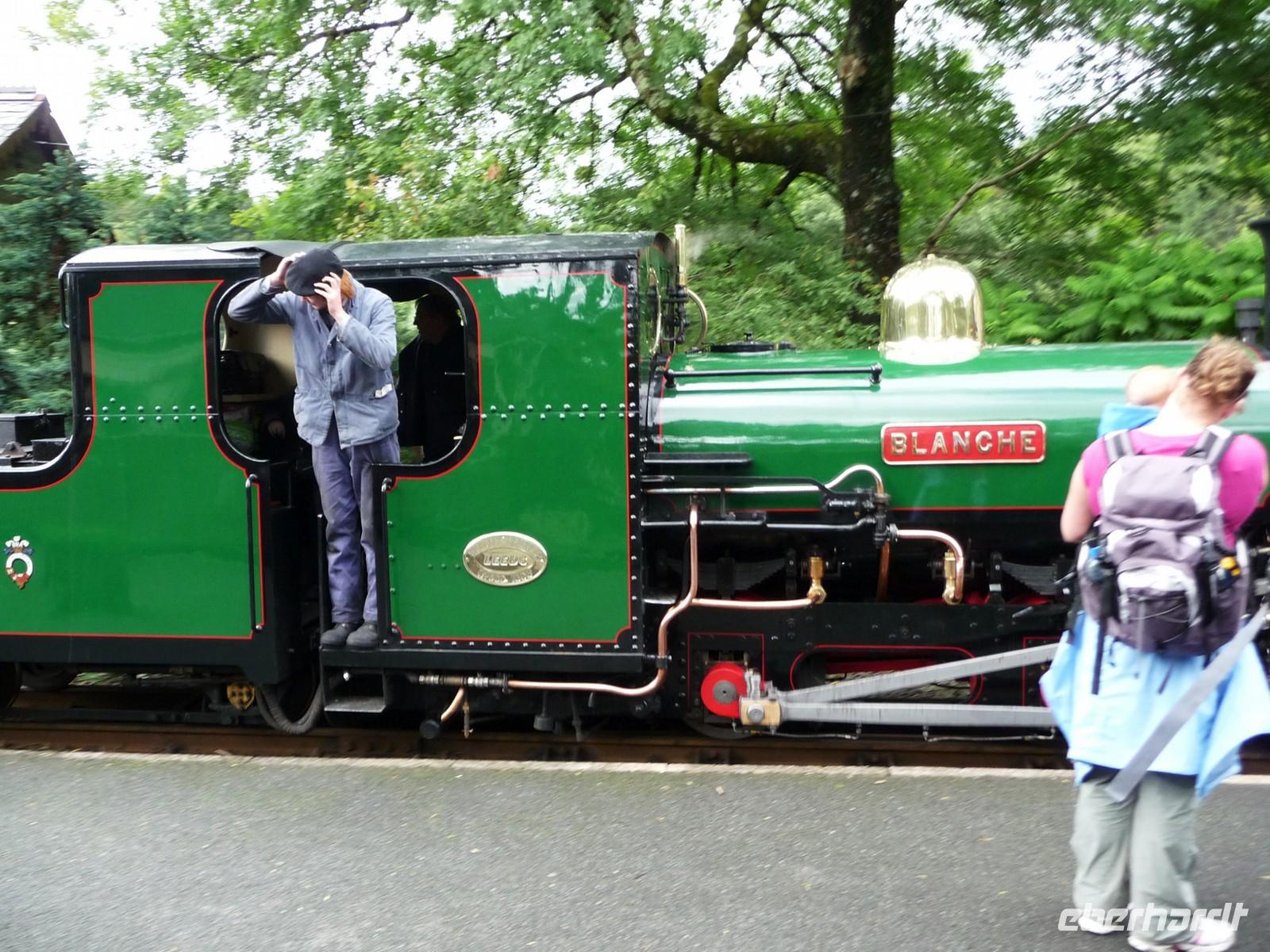Danach geht es weiter durch das malerische Tal in Richtung Porthmadog. Ein braunes Schild weist uns den Weg zur Ffestinog Railway. Wir nehmen in den Wagons der Schmalspurbahn platz und fahren mit dem Dampfzug