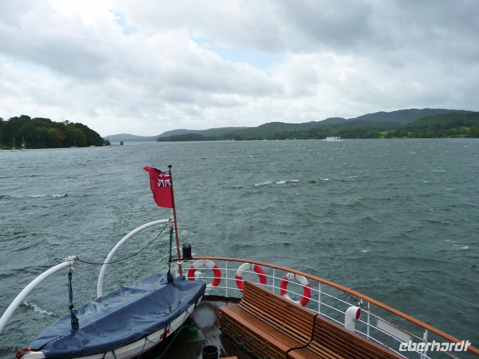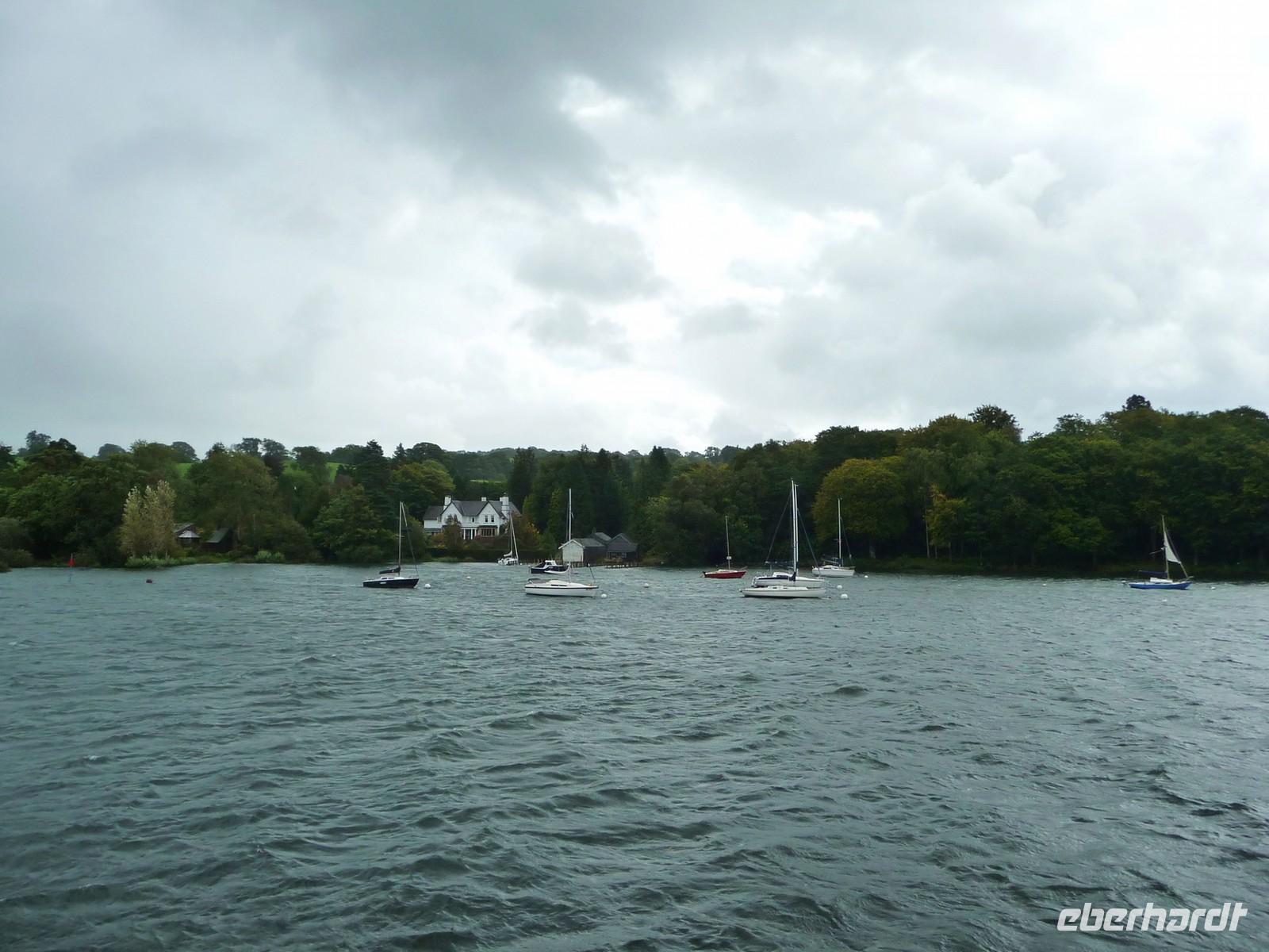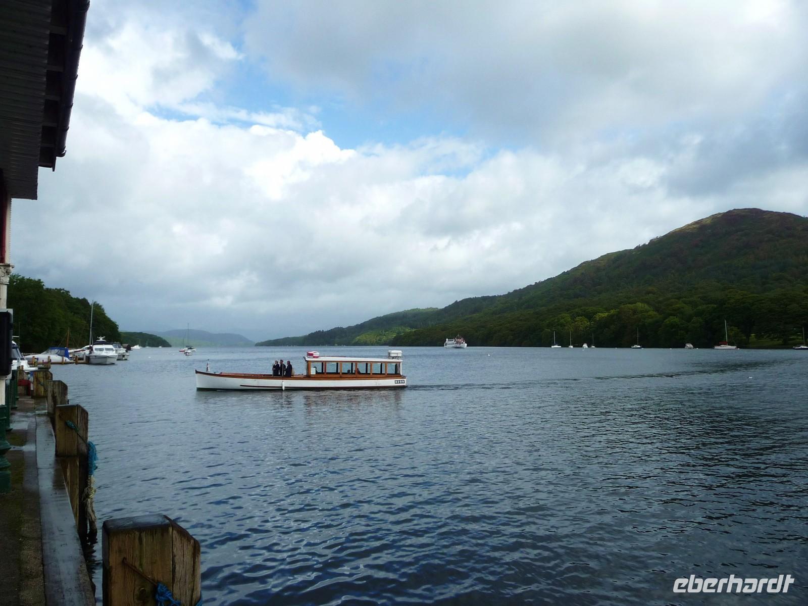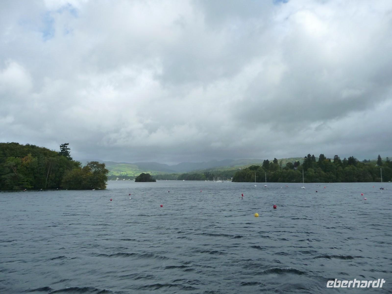 Teils Regen, teils Sonne wechseln ab auf der Fahrt zum Lake District; auf der M6 am Service Lancaster machen wir Pause und kommen so 10:35 Uhr am Lake Windermere an.