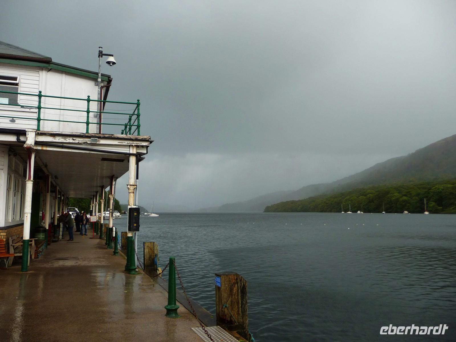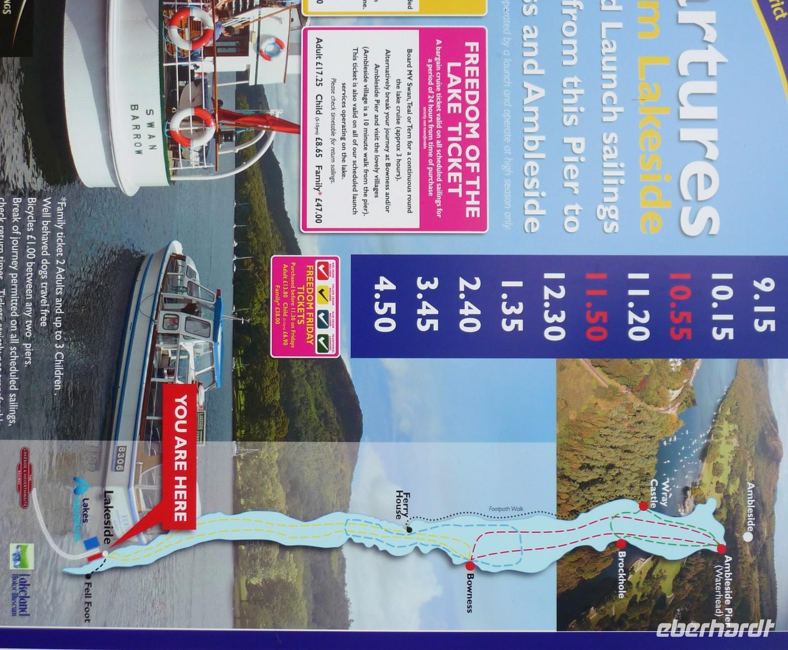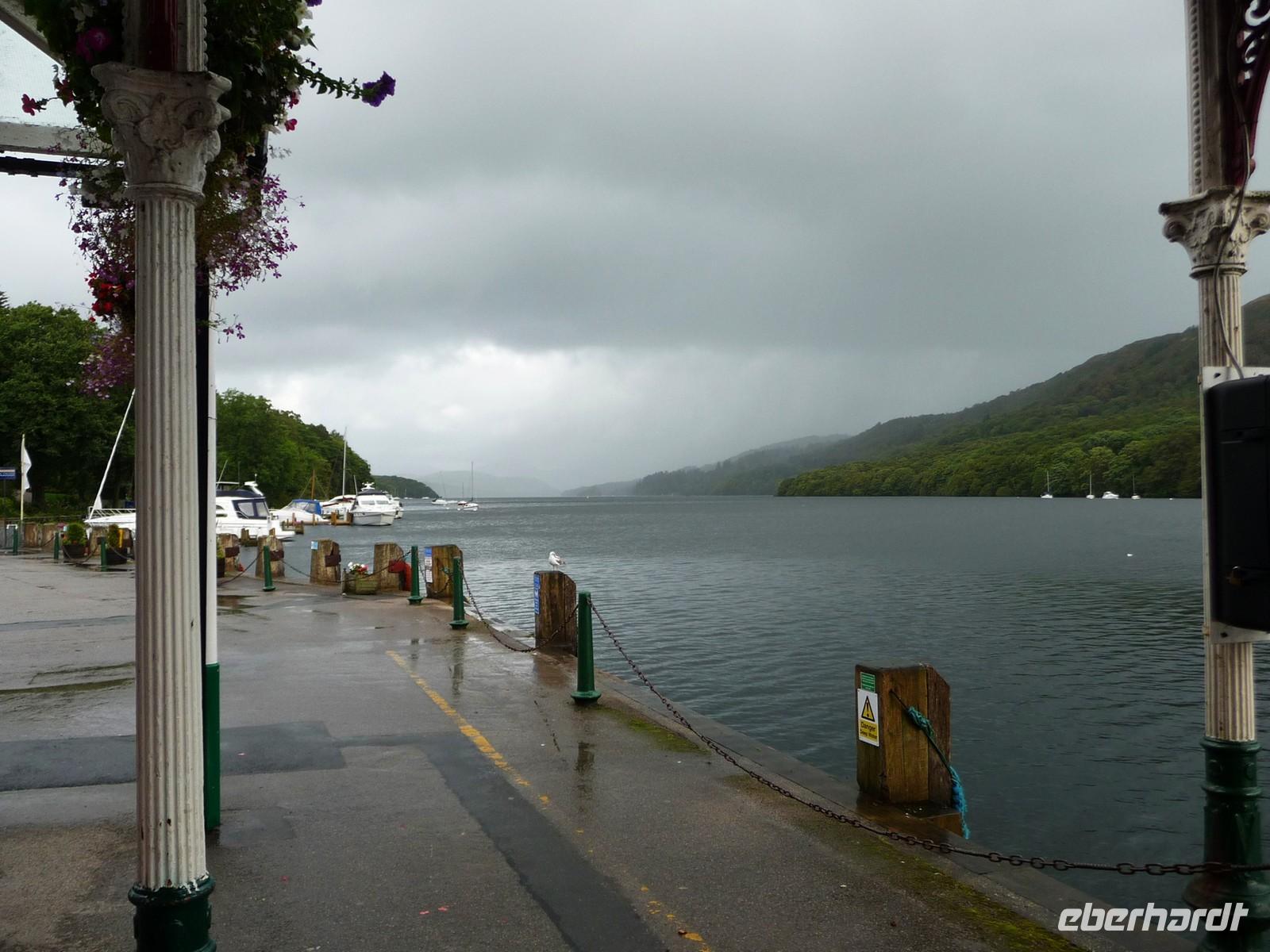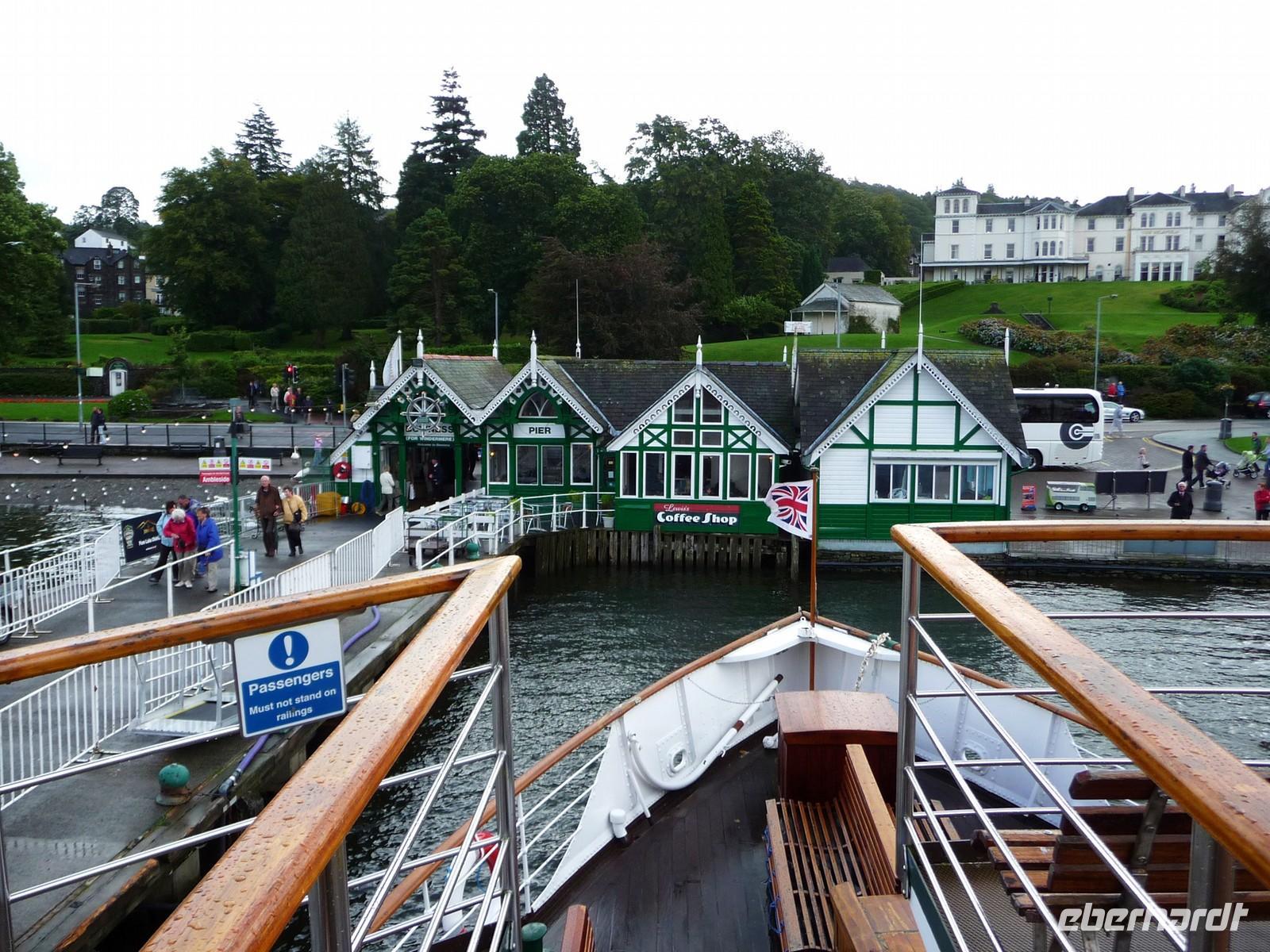 Teils Regen, teils Sonne wechseln ab auf der Fahrt zum Lake District; auf der M6 am Service Lancaster machen wir Pause und kommen so 10:35 Uhr am Lake Windermere an.