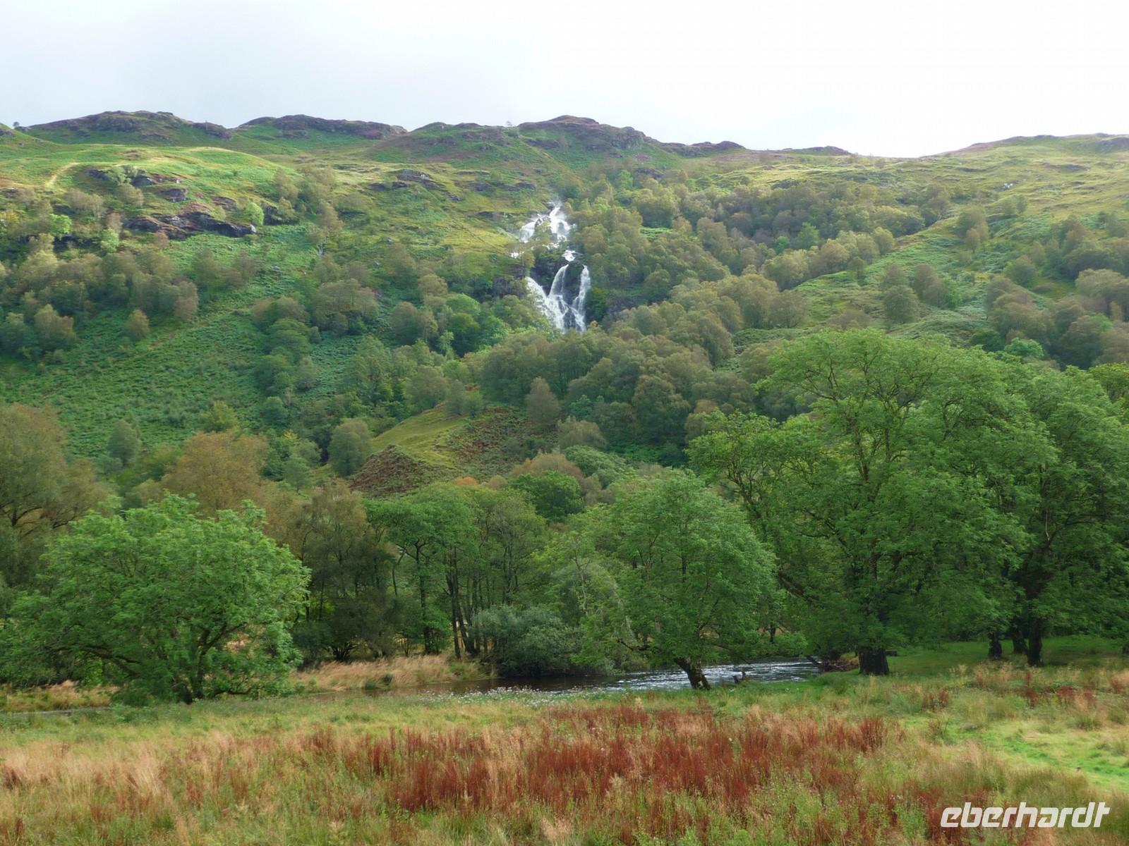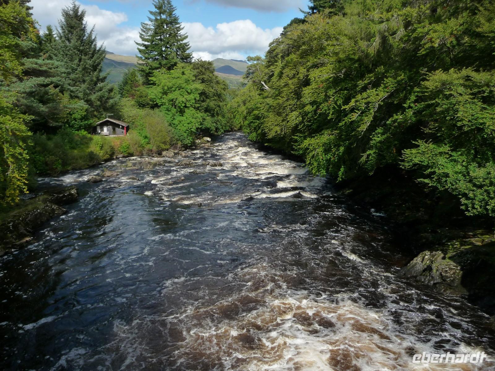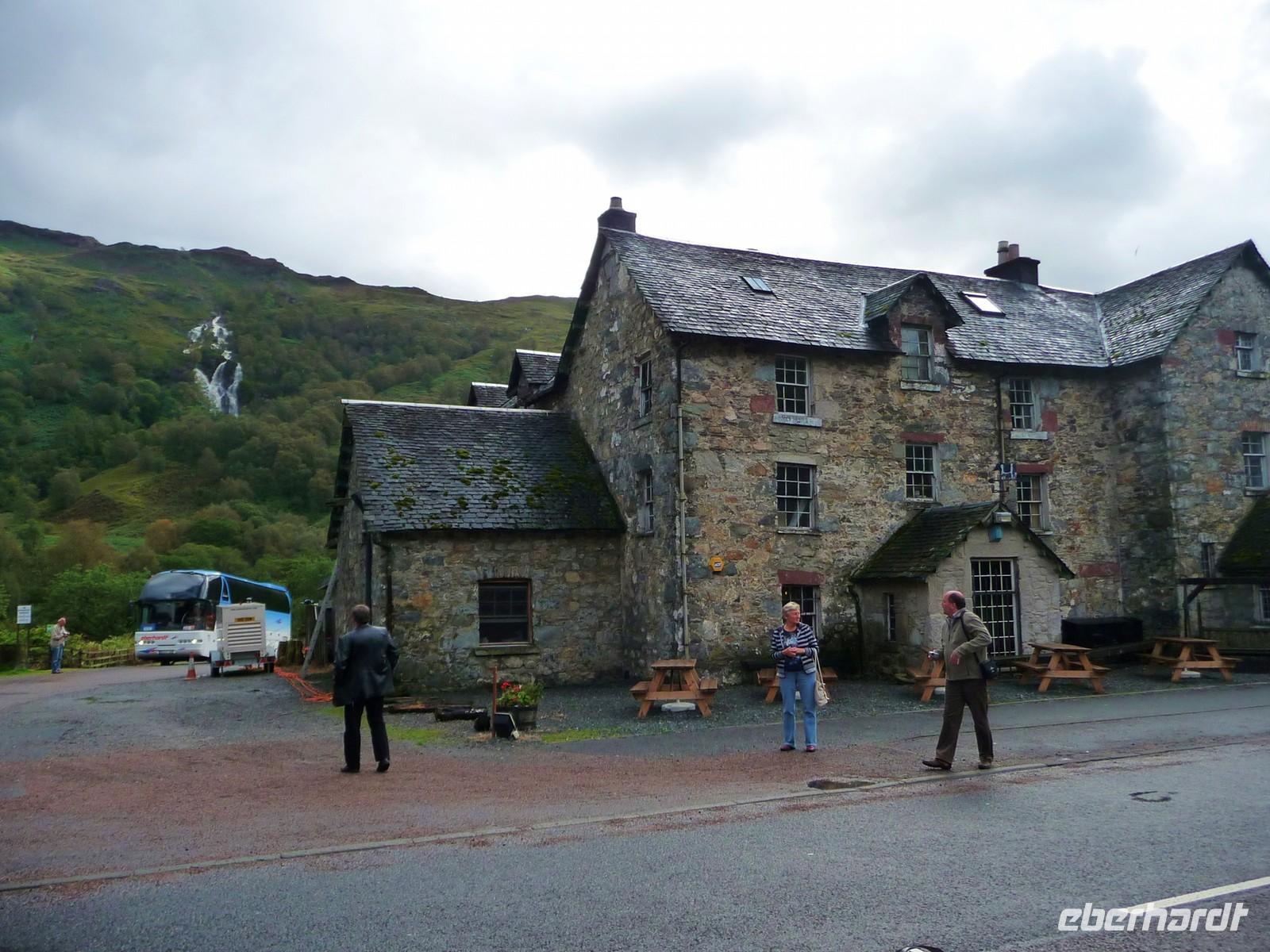 Wir machen einen gemeinsamen Spaziergang zum See und am Strand entlang zur kleinen Seebrücke sowie durch den Ort Luss. Unser nächster Fotostopp ist an den Ardlui Falls, sehen den tosenden Wasserfall am Berg und besichtigen neben dem Parkplatz die romantisch eingerichtete Kneipe mit den vielen präparierten Tieren.