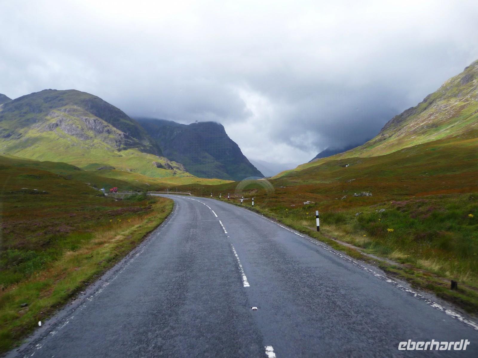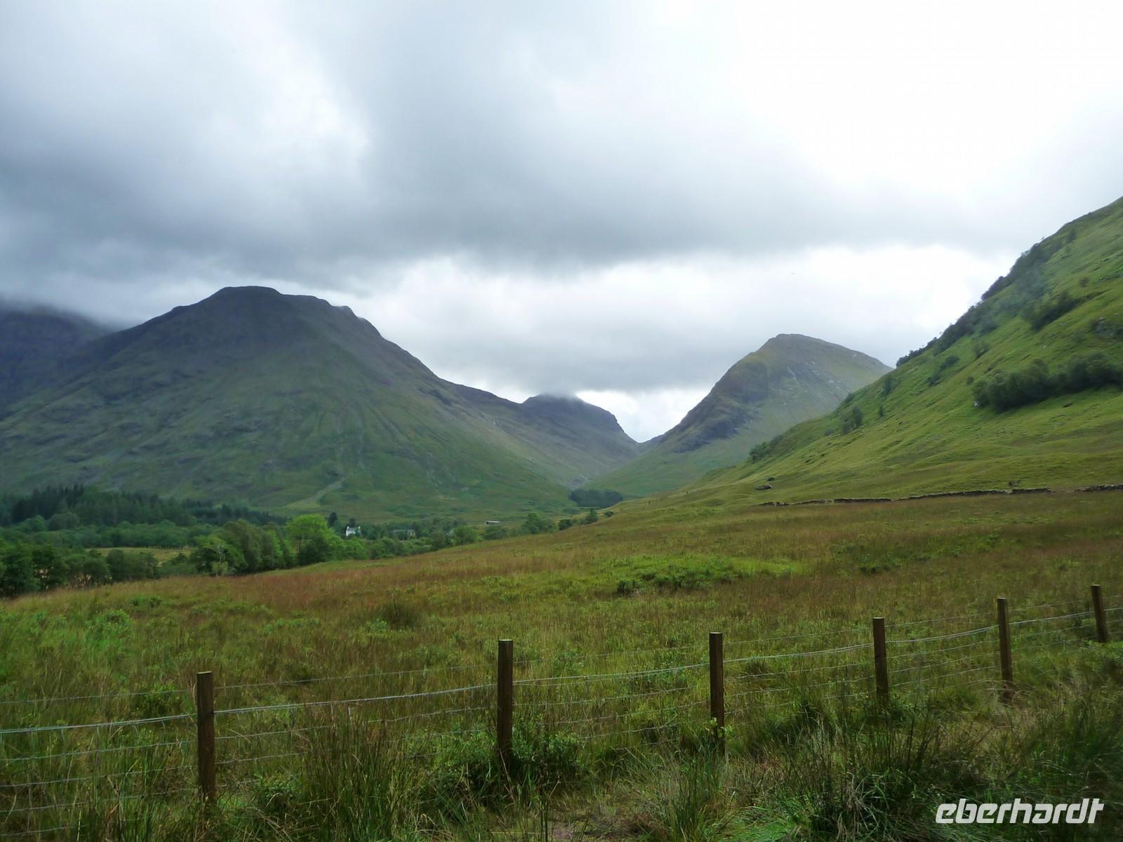 Ein weiterer Fotostopp folgt an einer schönen Aussicht mitten in den schottischen Highlands und dann geht es weiter hinab durch das wildromantische Tal, hinunter nach Glencoe. Mit schottischer Musik und der Geschichte des Tals und des Massakers halten wir am Besucherzentrum des Tales.