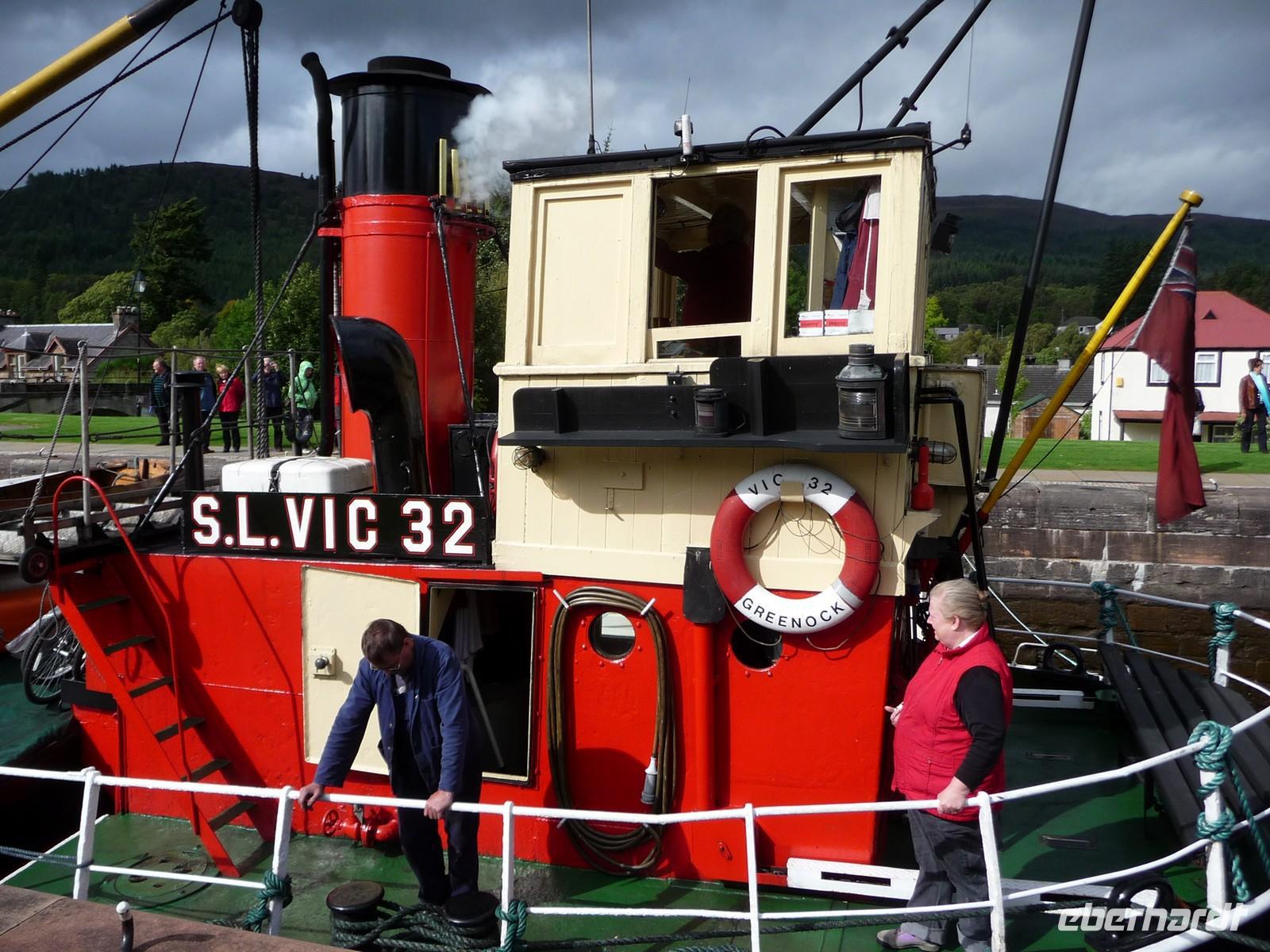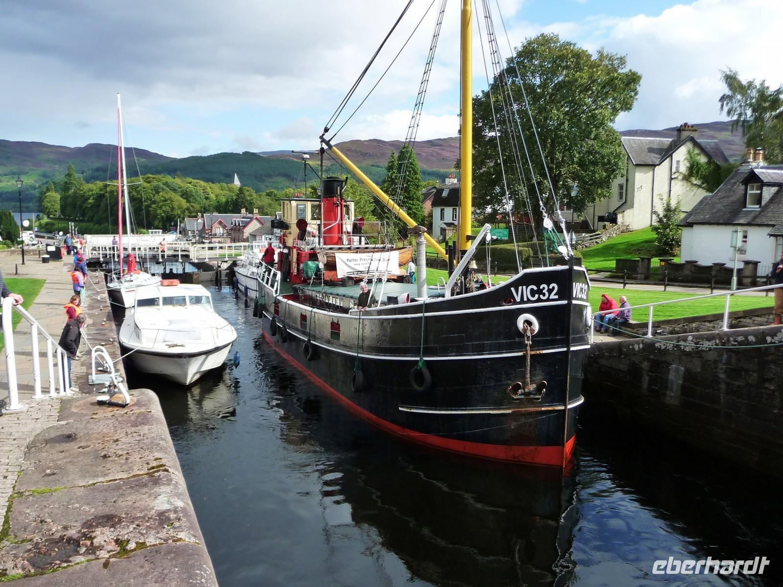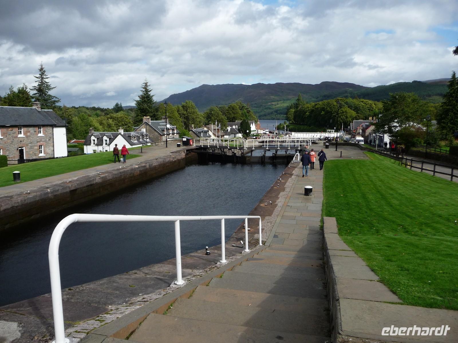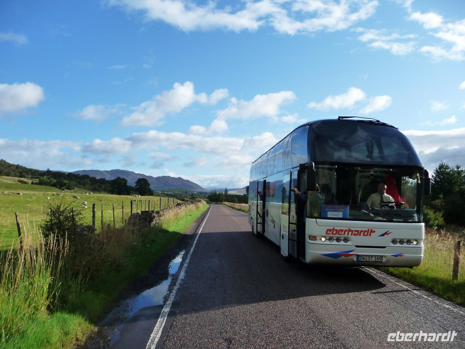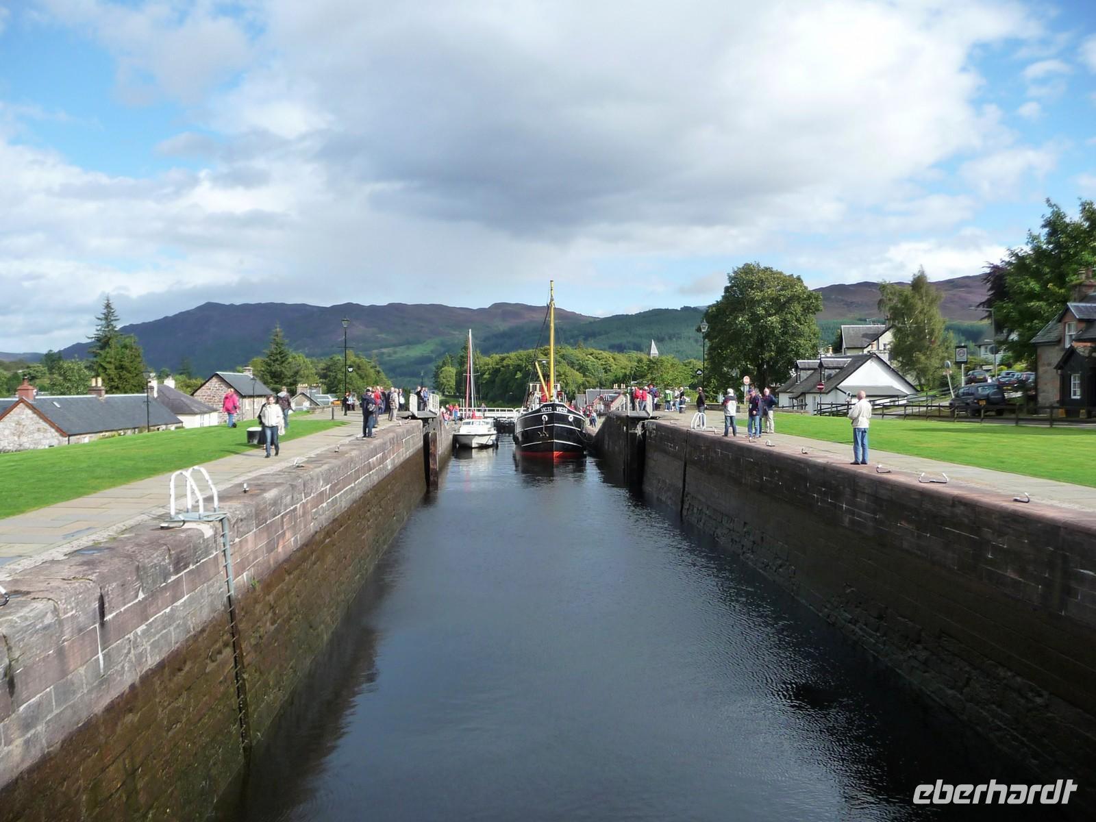 Später dann, am Commando Memorial schauen wir zum höchsten Berg Großbritanniens und machen Mittag. Nächster Fotostopp ist in Fort Augustus an den Schleusenstufen des Caledonian Canals. Ein historisches Dampfschiff wird gerade durch die Schleusen gehoben und der Kapitän spielt Lieder auf der Dampforgel des Schiffssignals. Am berühmten Urquhart Castle kommen wir 14:30 Uhr an und gehen in das kleine Kino, wo der Film über die Geschichte des Castles in deutscher Sprache gezeigt wird - mit einem sehr schönen Effekt am Ende. Nun besuchen wir individuell die Ruine des Castle. Auf der Fahrt zum Hotel halten wir noch am Nessie-Center in Drumnadrochit, um Nessi zu fotografieren.