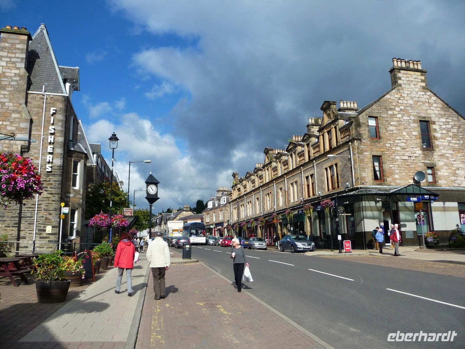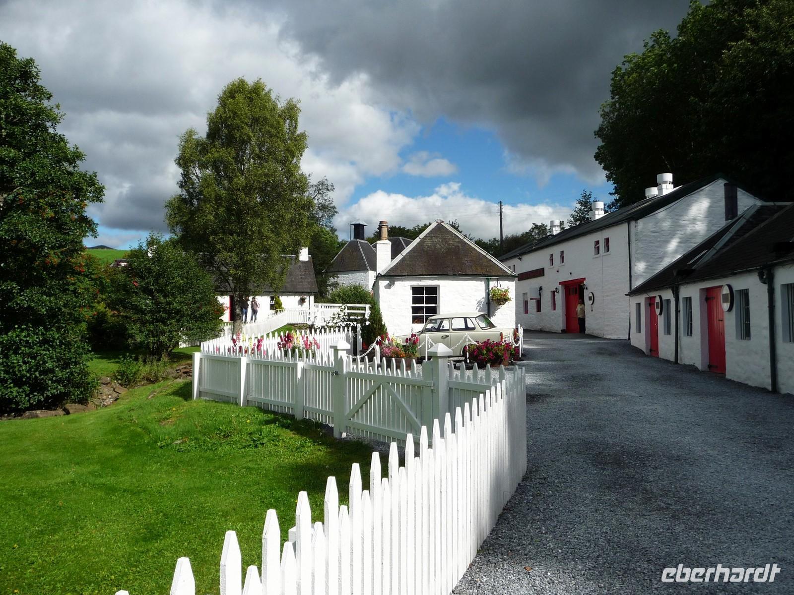 Heute wollen wir der Gruppe etwas Ruhe und Erholung gönnen, wir beginnen mit einer kleinen Rundfahrt durchs Gebirge, machen Fotostopps bei Highland-Rindern, einer Whisky-Destillery und fahren nach Pitlochry, einer sehr hübschen Stadt, schön zum Shoppen und Besichtigen. Von hier fahren wir zur Edradour Destillery, wo uns der Gästeführer in der schottischen Tracht schon erwartet. Wir folgen seinen interessanten Ausführungen, nehmen eine Probe des edlen Getränkes, sehen die Filmvorführung (deutsche Untertitel) und gehen schließlich durch die Anlagen der Destillerie.