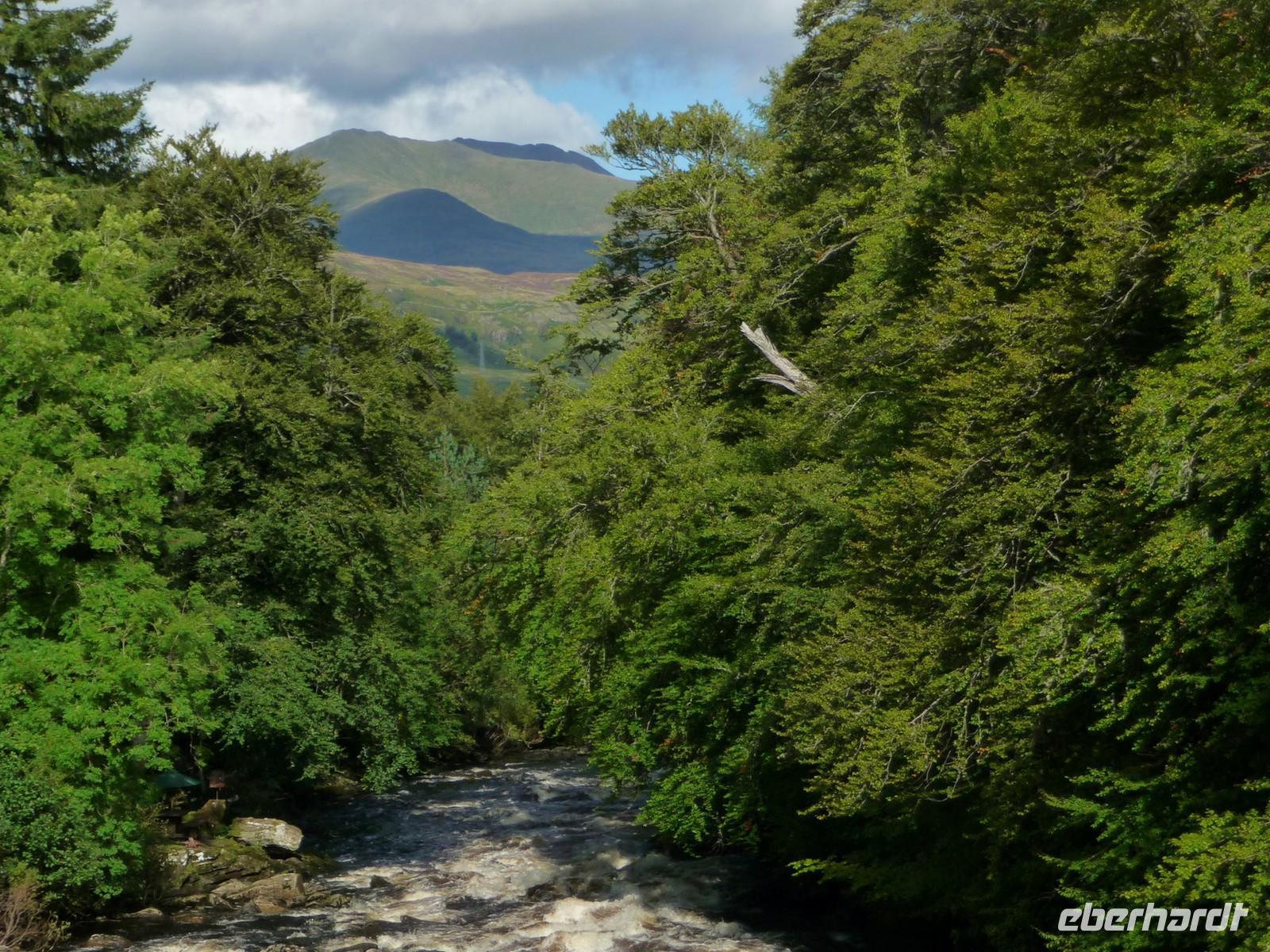 8:00 Uhr beginnt die Heimfahrt und zuerst geht es Richtung Jedburgh; durch das Tal des River Leaver, mit einer tollen Backsteinbrücke und aufragenden Vulkanbergen.