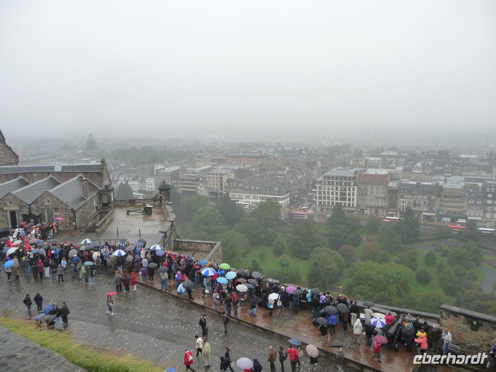 Pünktlich 9:00 Uhr ist Abfahrt mit unserer Stadtführerin Janett Shearer zur Stadtrundfahrt durch Edinburgh. Leider trüben Regen und Nebel das Bild.