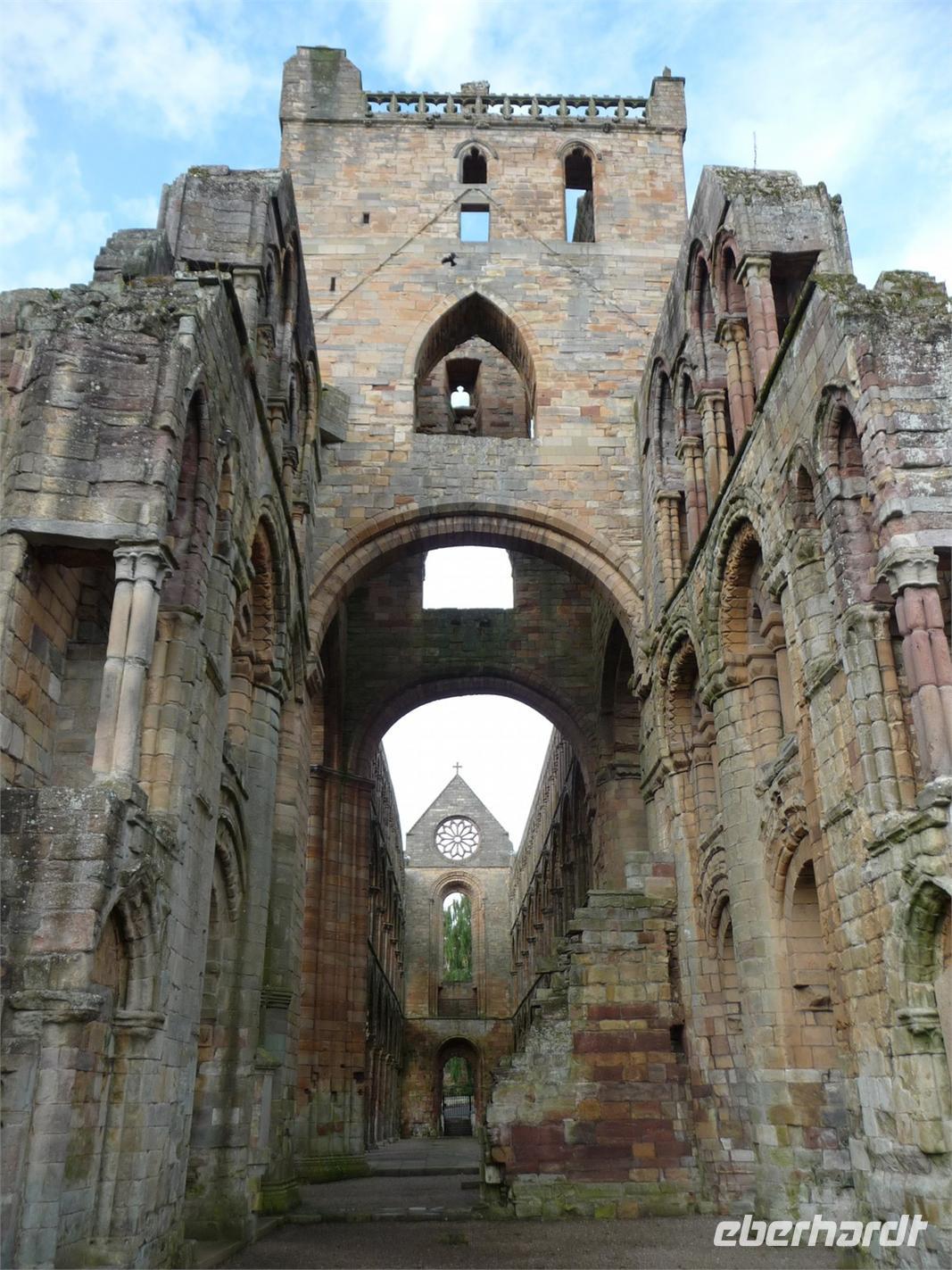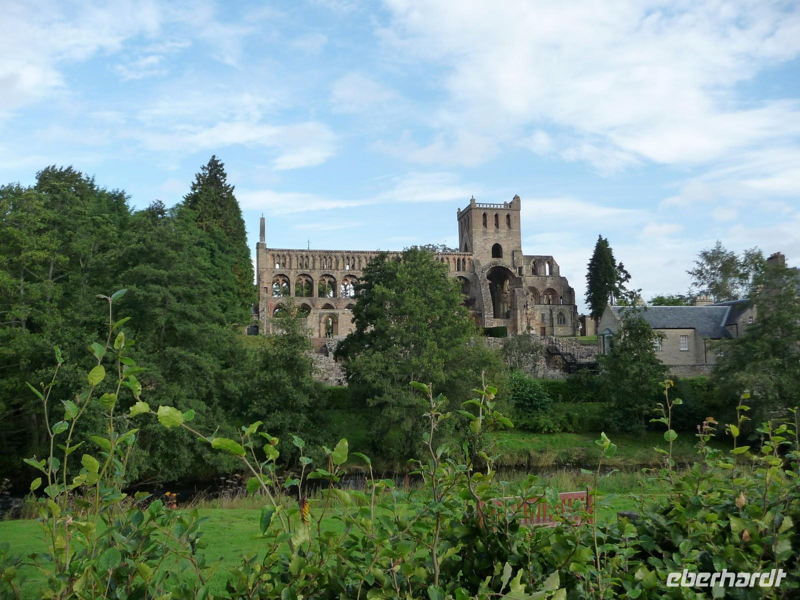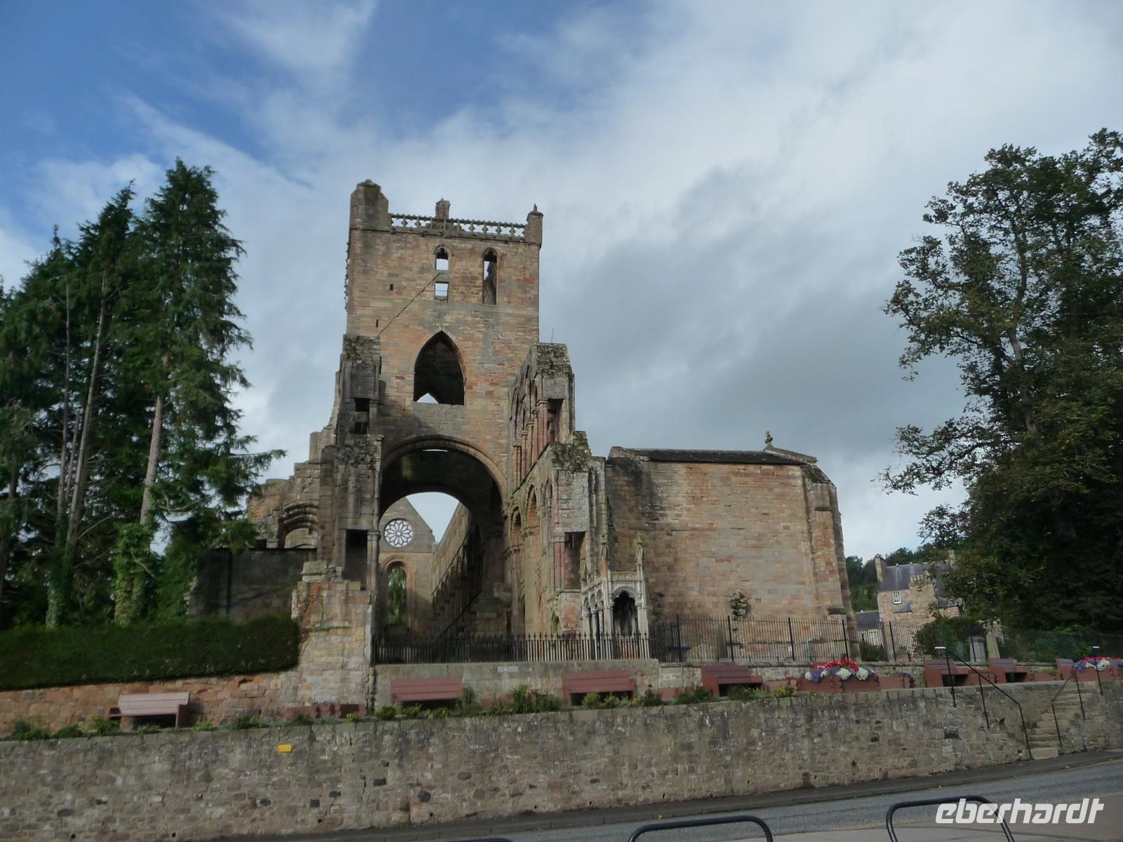 In Jedburgh dann der Fotostopp an der Ruine der Abbey mit den normannischen Bögen, den romanischen und gotischen Details.