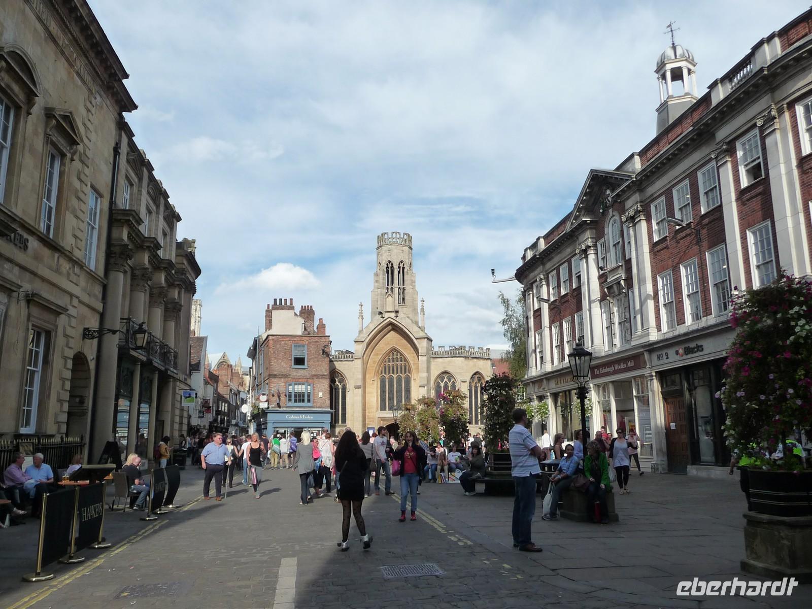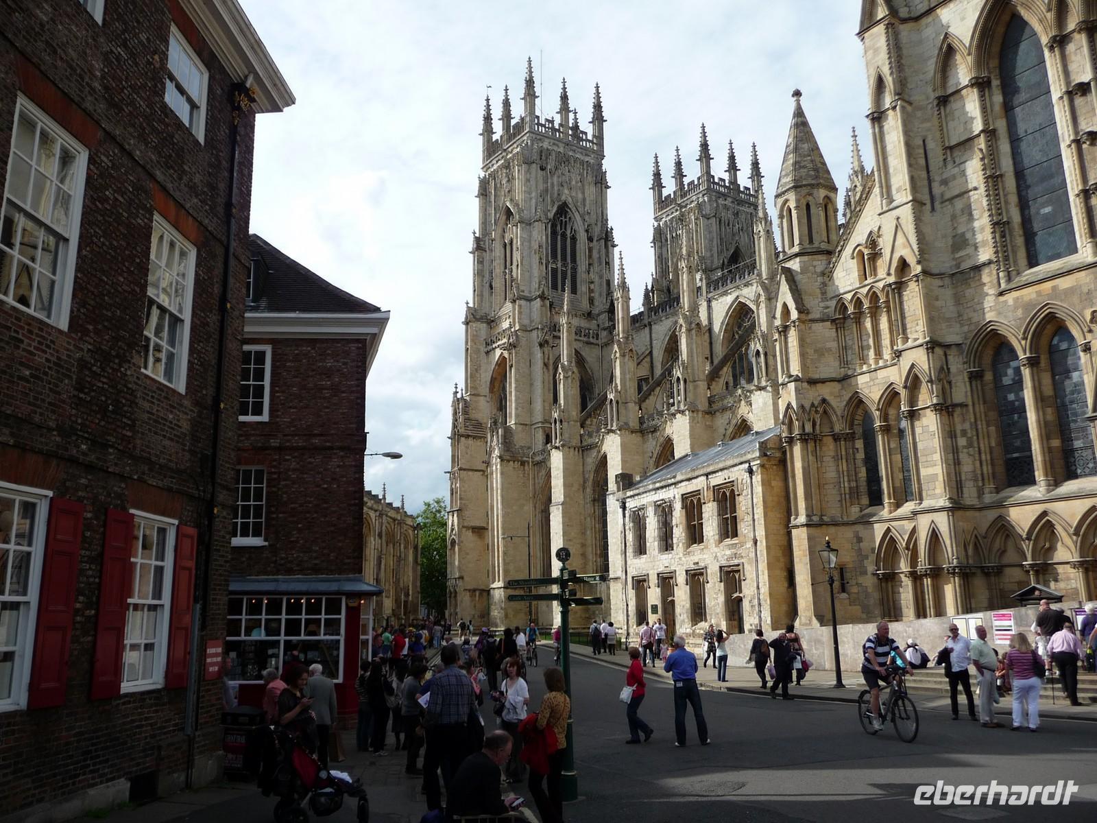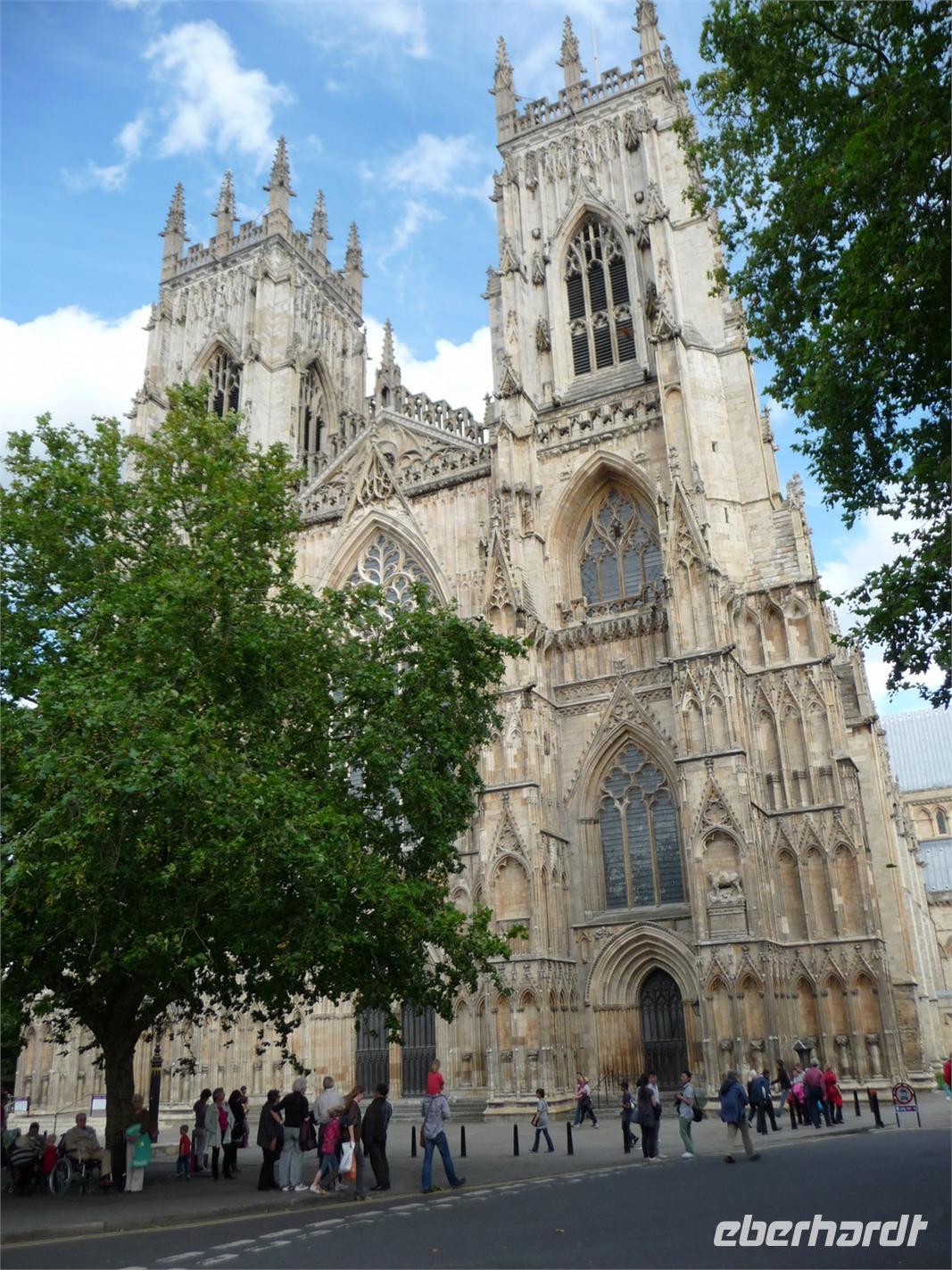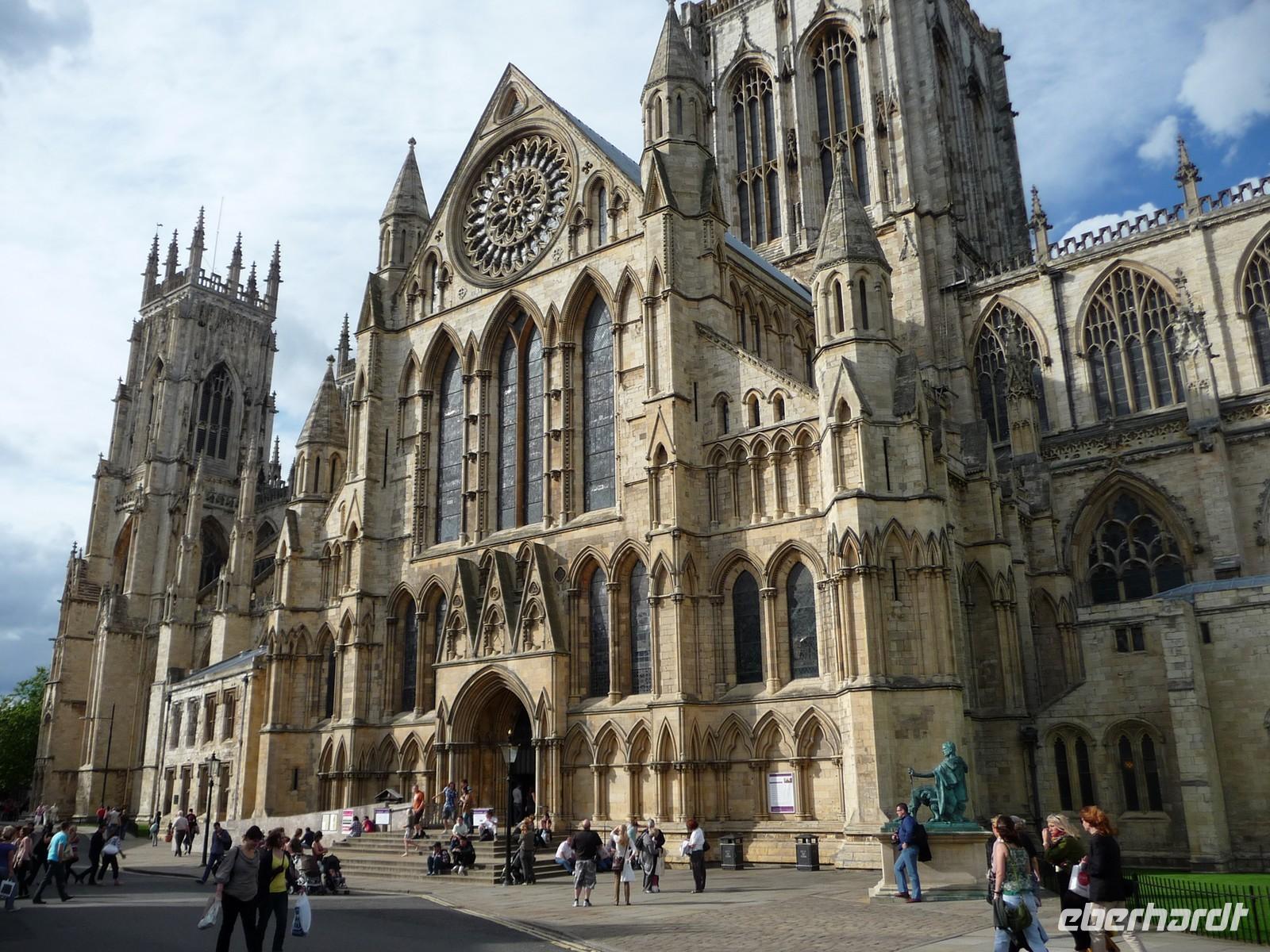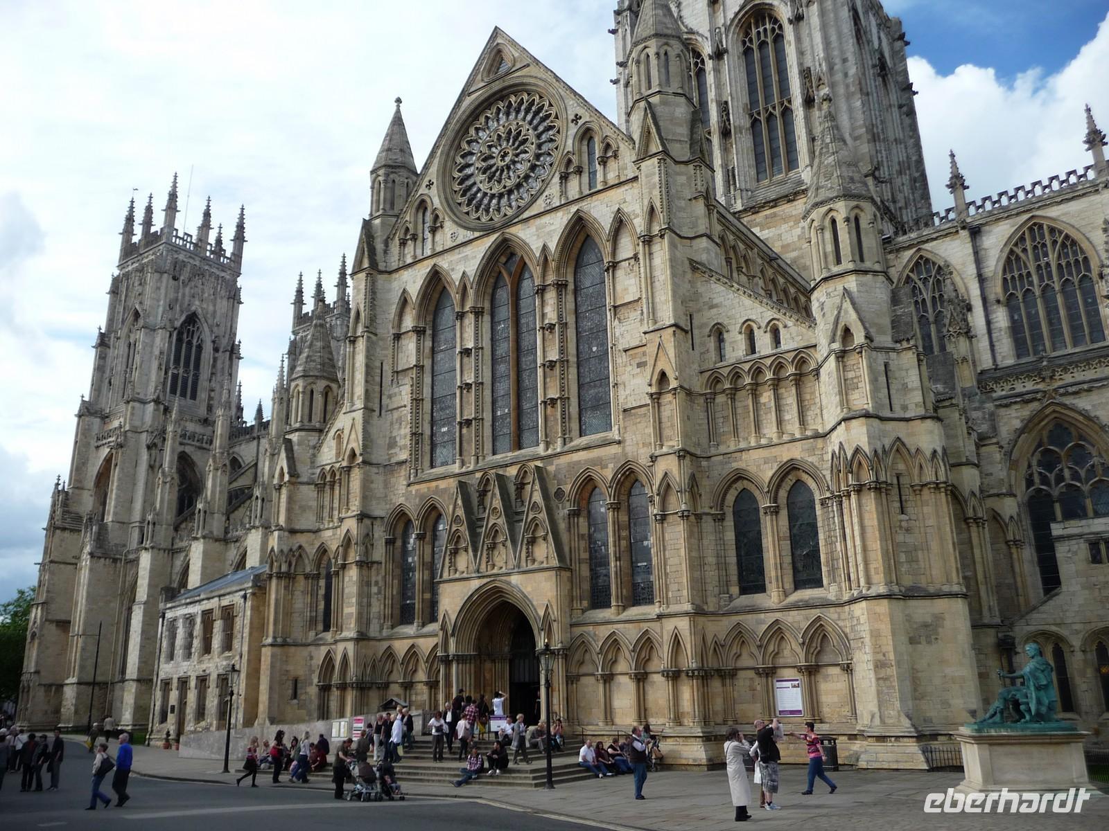 An Borders Bar, der Grenze zwischen Schottland und England bereiten wir unseren Gästen eine Überraschung. Als eberhardt-Wow gibt es Whisky oder Cremelikör und leckere schottische Highlandkekse zum Abschied von Schottland. Auch Gruppenfotos werden am Grenzstein noch erstellt. Dann führt uns die Fahrt über die Autobahn M1 mit Mittagspause an den Washington Services nach York, der alten Stadt Mittelenglands. Mit einem gemeinsamen Spaziergang bis zum Stadttor beginnen wir die Besichtigung. Die Gelegenheit zum Besuch des alten Minster nehmen alle wahr. Ein Rundgang über die römische Stadtmauer und durch die alten Gassen der Stadt vollenden den Besuch dieser tollen Stadt.