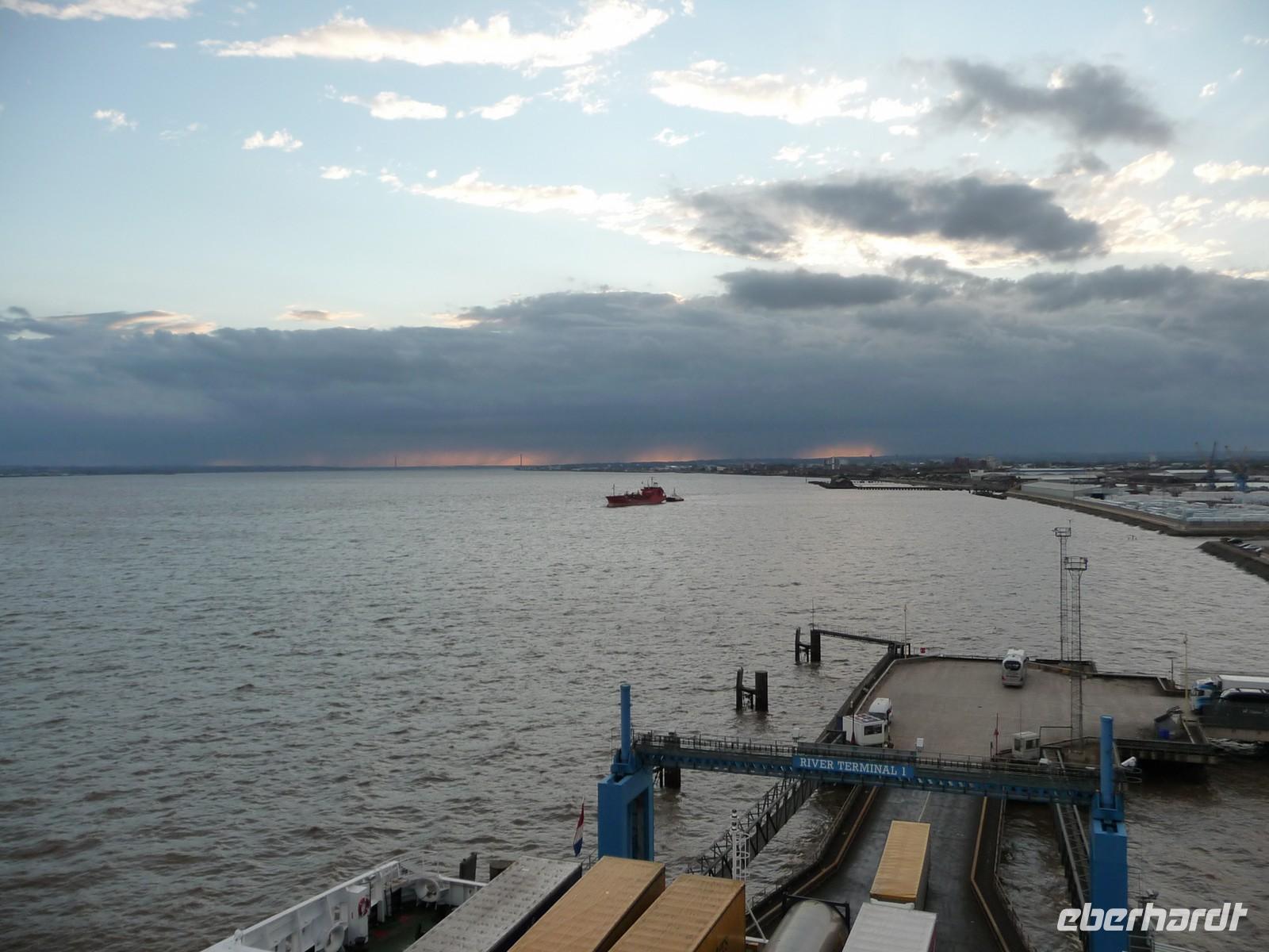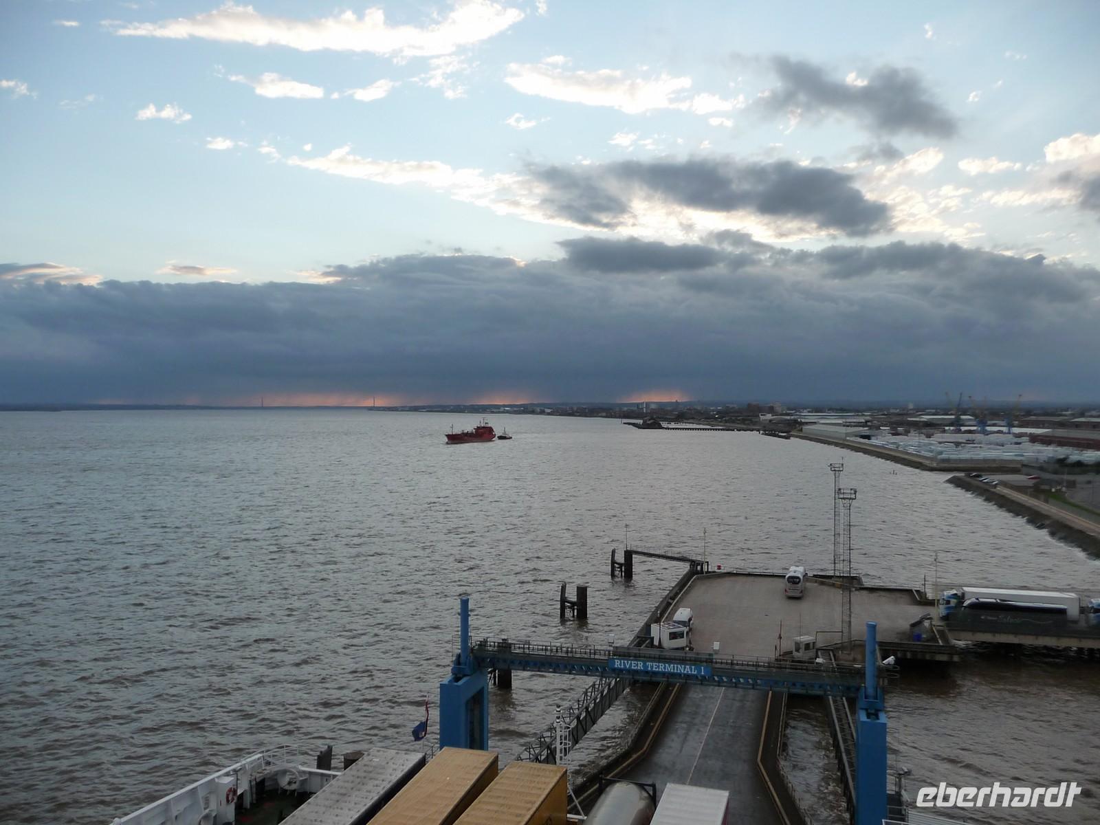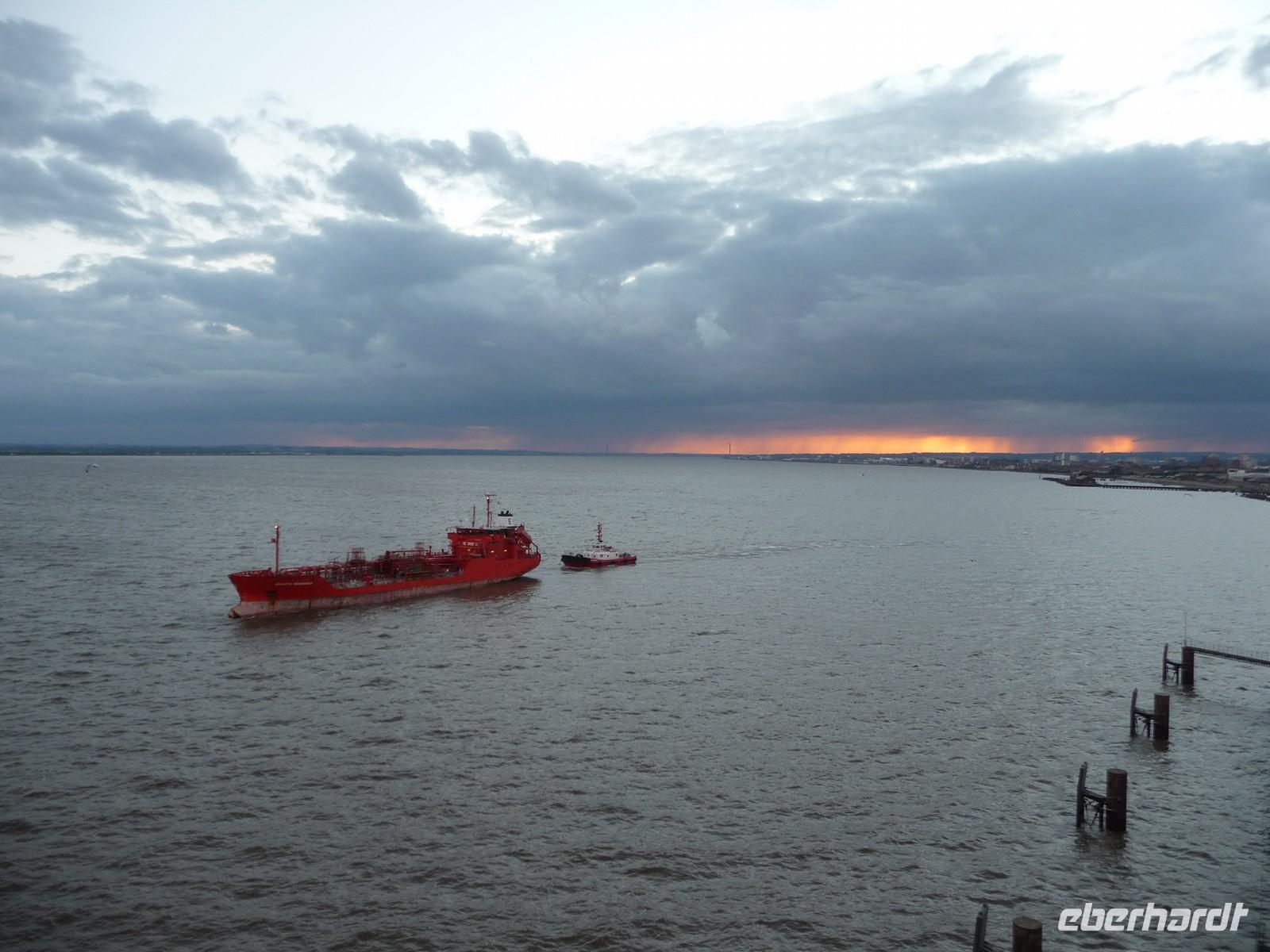 18:00 Uhr ist schließlich Ankunft im Fährhafen Hull, am George King Dock, wo unser Fährschiff schon auf uns wartet. 21 Uhr geht es hinaus auf die Nordsee.