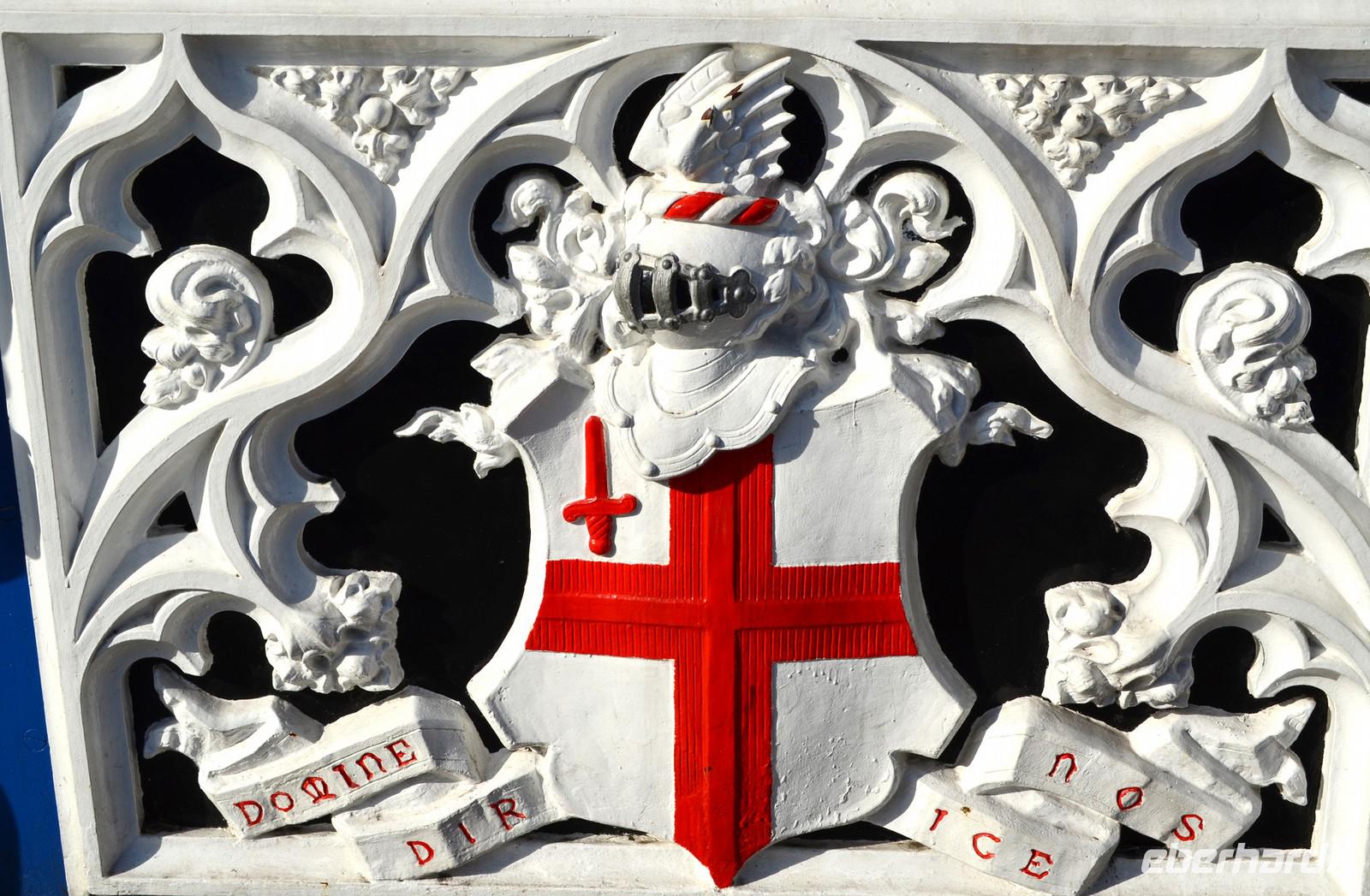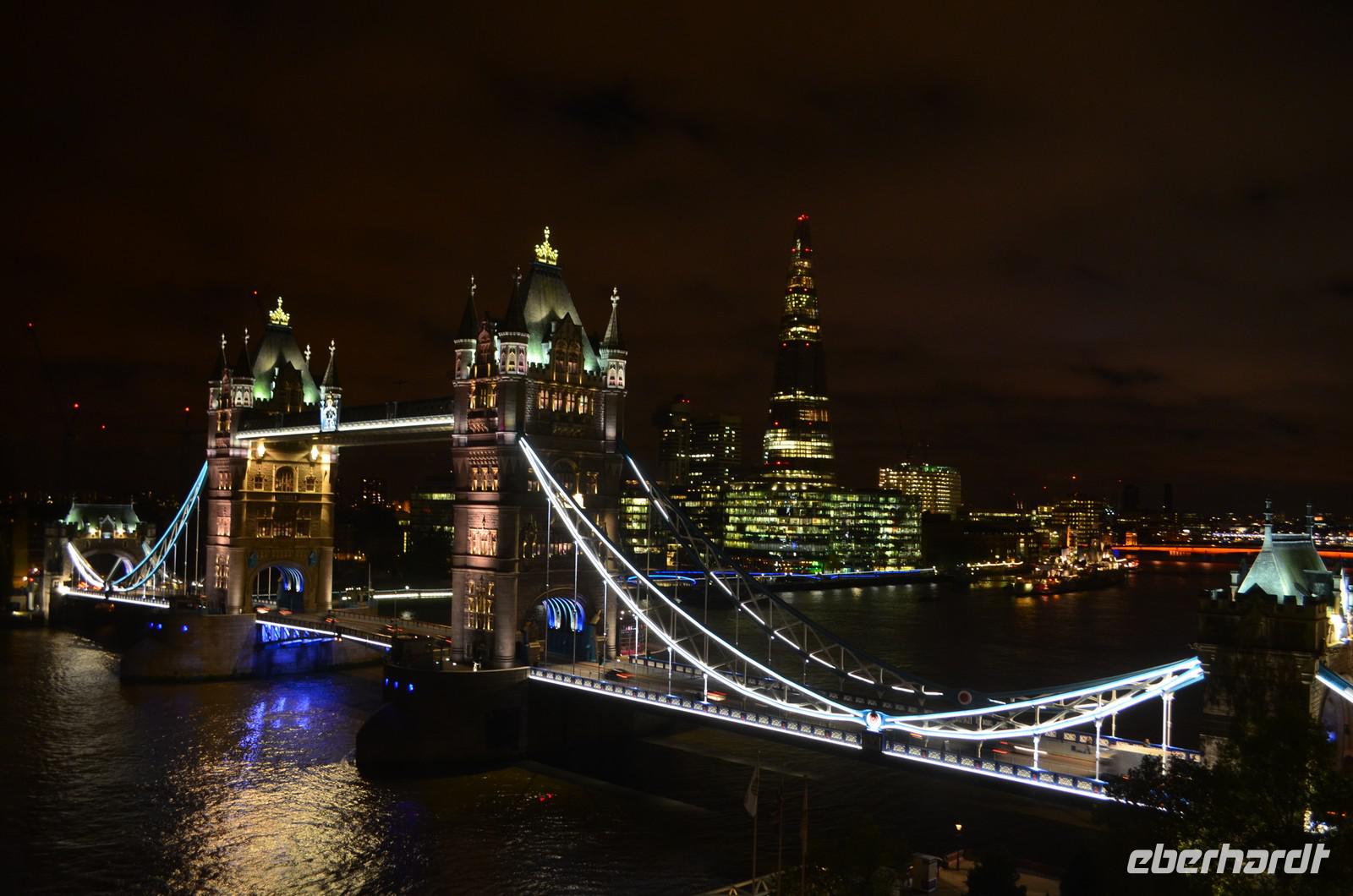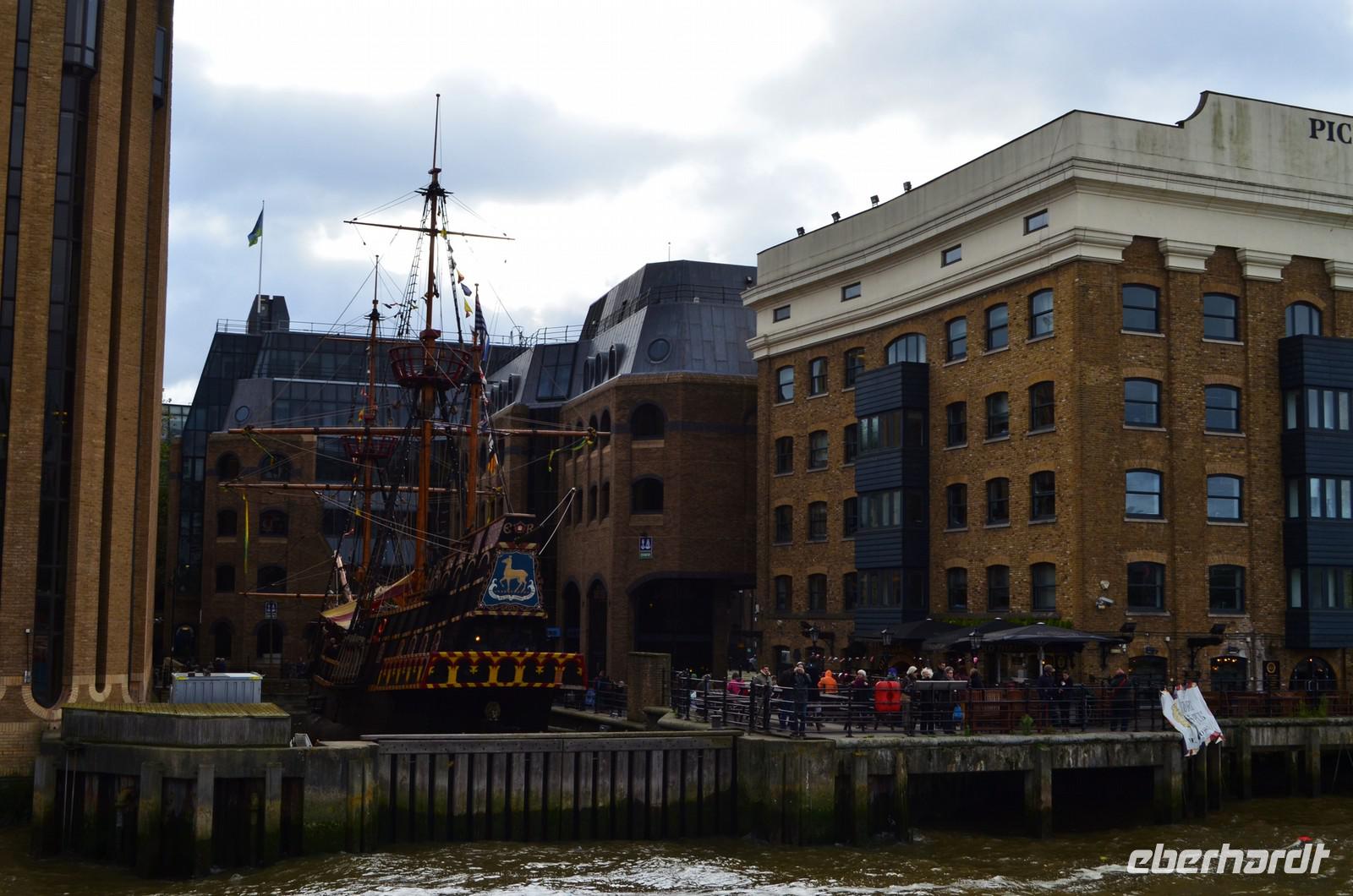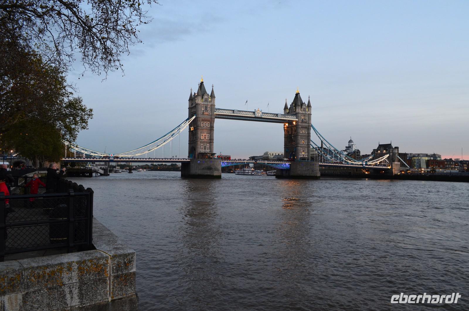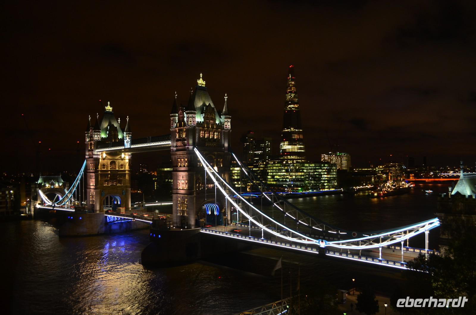 Nach dem Check Inn begrüßen wir auch unsere Fluggäste, die schon früher eingetroffen sind. Alle gemeinsam besuchen wir am Nachmittag den nahen Tower von London, laufen am Themseufer hinüber, machen die ersten Fotos der Londoner Skyline und betreten dann durch den Gruppeneingang die alte Festungsanlage, die von den „Beefeatern" bewachte und durch die Kolkraben beschützte Anlage, die von Wilhelm dem Eroberer 1078 gegründet wurde.