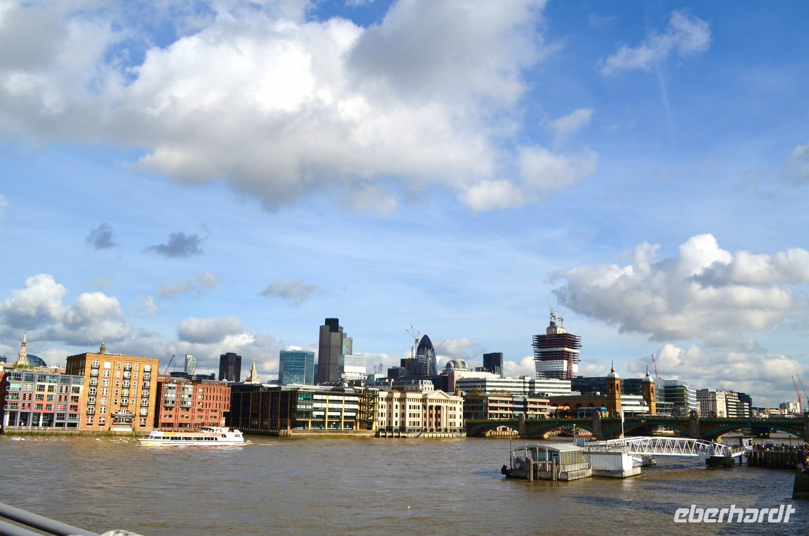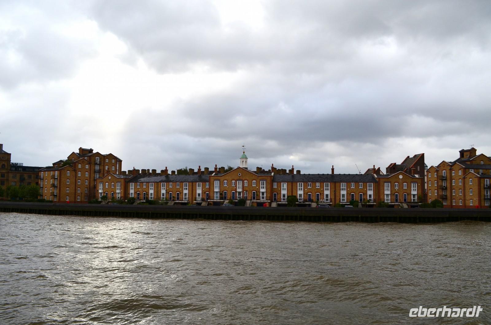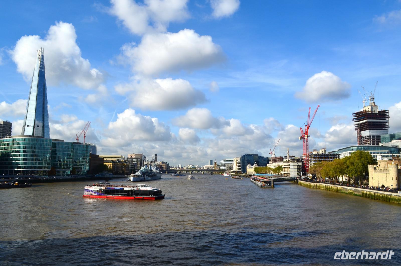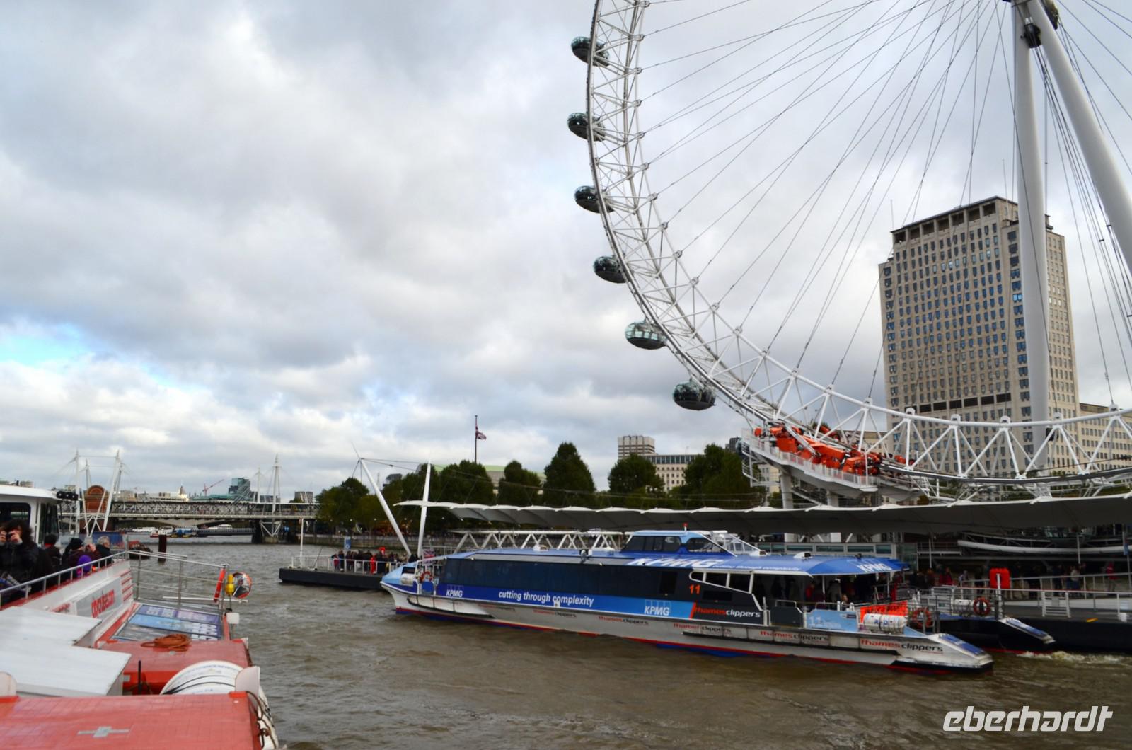 Die Stadtführerin Vicki Bick holt uns im Hotel ab und wir spazieren gemeinsam mit ihren Erklärungen hinüber zum Coachpark. Mit dem Reisebus starten wir zur Stadtrundfahrt durch London - mit Halts auf der Queen Victoria Street, zwischen St. Pauls Cathedral und Millennium Bridge, an Royal Albert Memorial und Albert Hall und schließlich enden wir am Westminster Pier. Von hier fahren wir mit dem City-Cruise-Schiff themseabwärts, mit spektakulären Ausblicken auf die Stadt, die sich gerade am Flussufer total gewandelt hat - die alten Speicher und Werften sind zu modernen Wohn- und Arbeitsorten umgebaut.