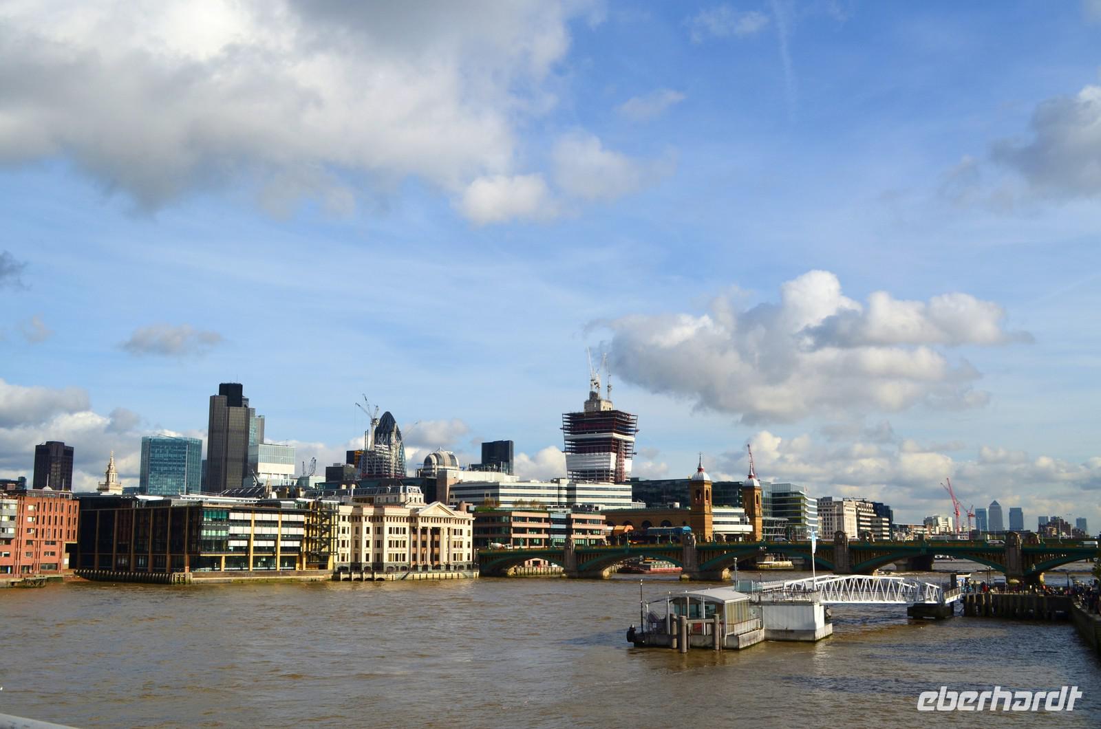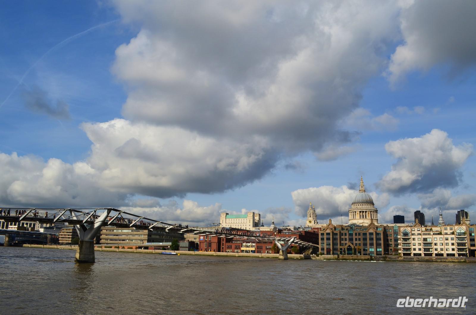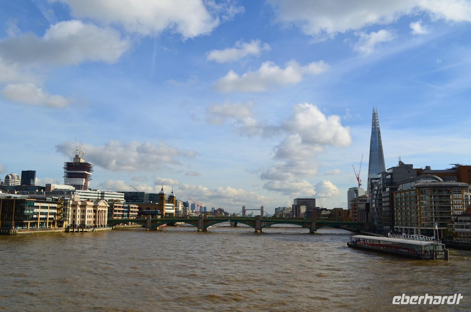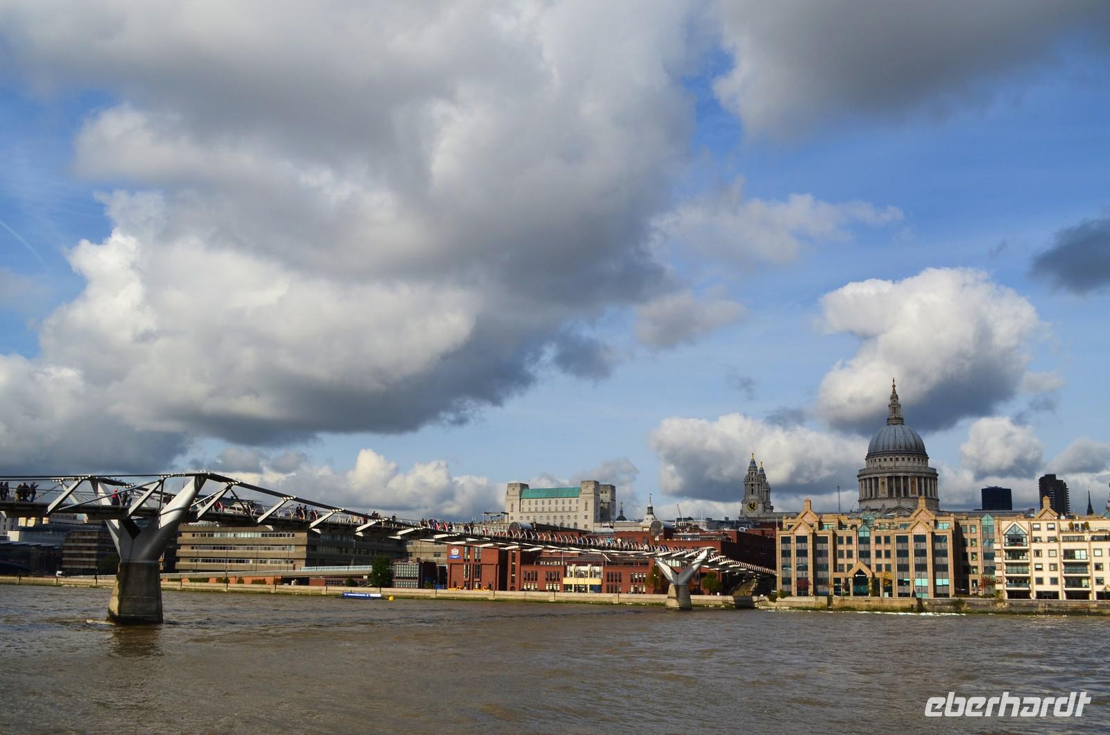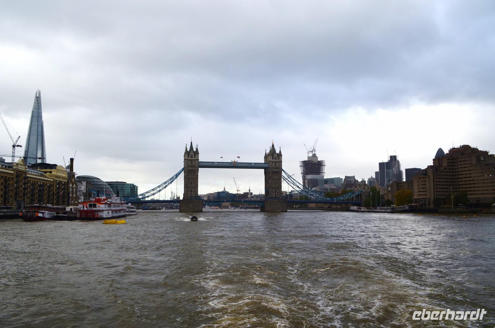 Die Stadtführerin Vicki Bick holt uns im Hotel ab und wir spazieren gemeinsam mit ihren Erklärungen hinüber zum Coachpark. Mit dem Reisebus starten wir zur Stadtrundfahrt durch London - mit Halts auf der Queen Victoria Street, zwischen St. Pauls Cathedral und Millennium Bridge, an Royal Albert Memorial und Albert Hall und schließlich enden wir am Westminster Pier. Von hier fahren wir mit dem City-Cruise-Schiff themseabwärts, mit spektakulären Ausblicken auf die Stadt, die sich gerade am Flussufer total gewandelt hat - die alten Speicher und Werften sind zu modernen Wohn- und Arbeitsorten umgebaut.