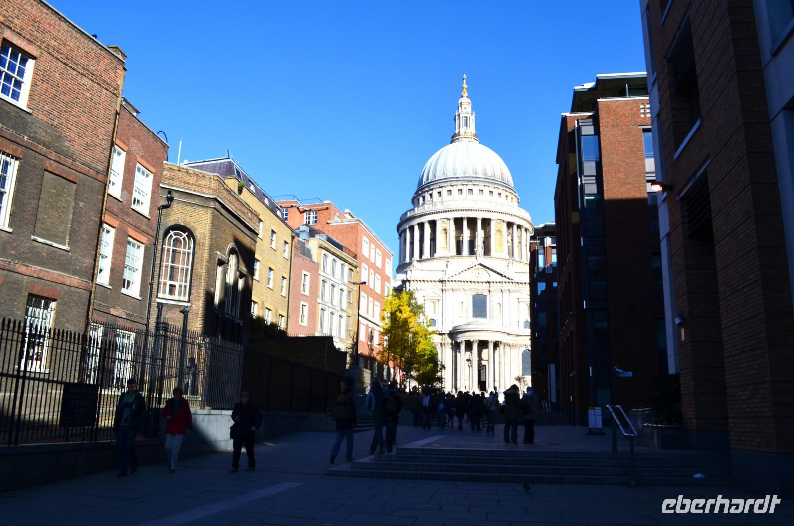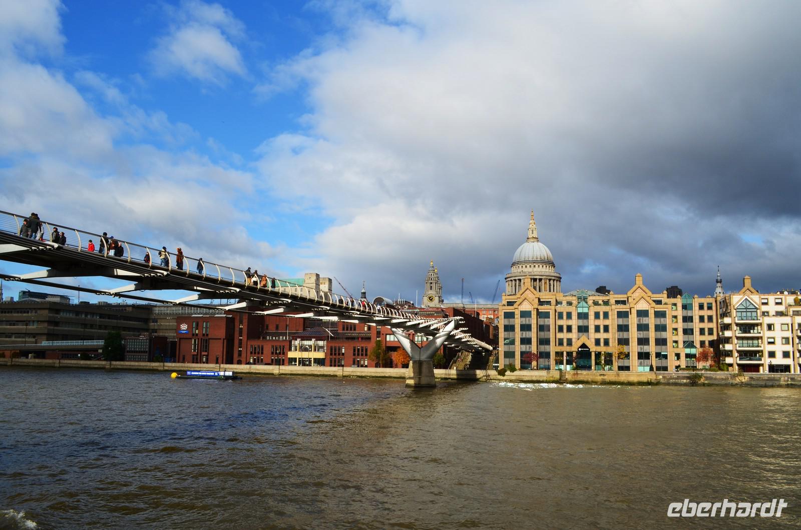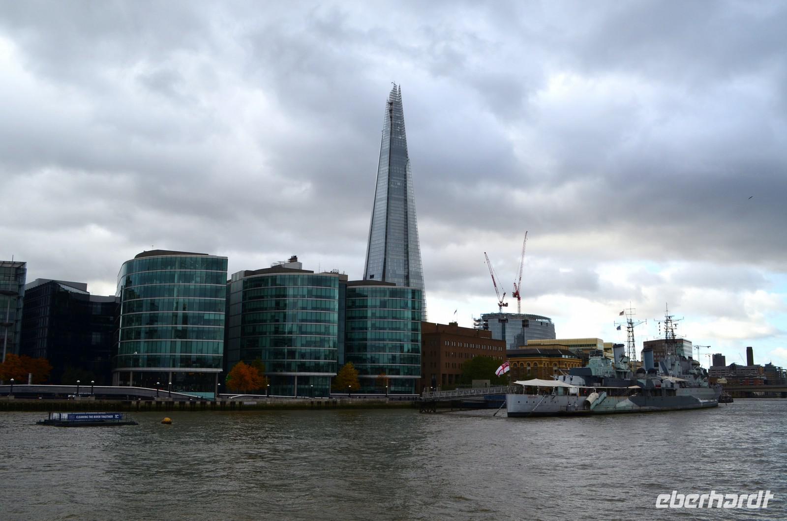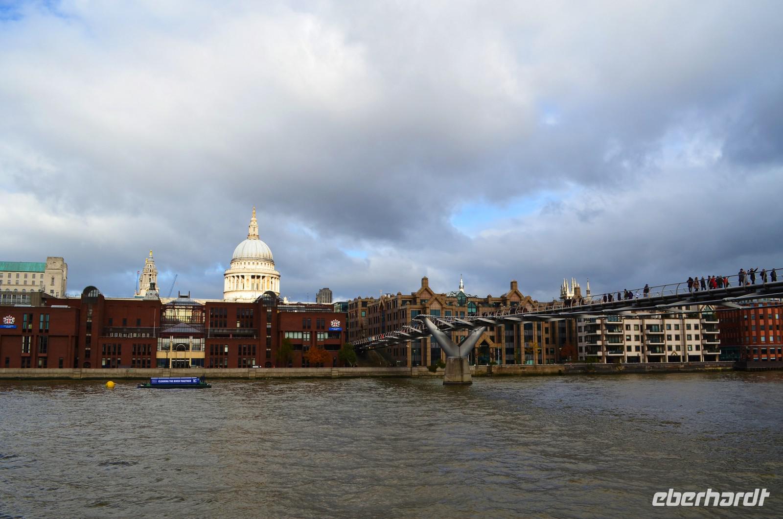 Die Stadtführerin Vicki Bick holt uns im Hotel ab und wir spazieren gemeinsam mit ihren Erklärungen hinüber zum Coachpark. Mit dem Reisebus starten wir zur Stadtrundfahrt durch London - mit Halts auf der Queen Victoria Street, zwischen St. Pauls Cathedral und Millennium Bridge, an Royal Albert Memorial und Albert Hall und schließlich enden wir am Westminster Pier. Von hier fahren wir mit dem City-Cruise-Schiff themseabwärts, mit spektakulären Ausblicken auf die Stadt, die sich gerade am Flussufer total gewandelt hat - die alten Speicher und Werften sind zu modernen Wohn- und Arbeitsorten umgebaut.