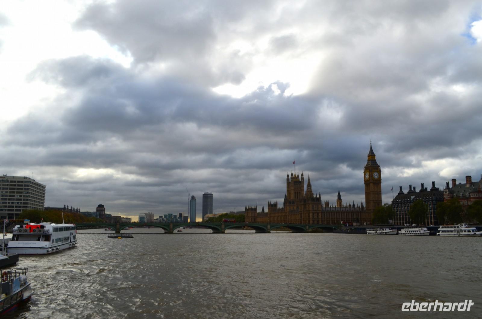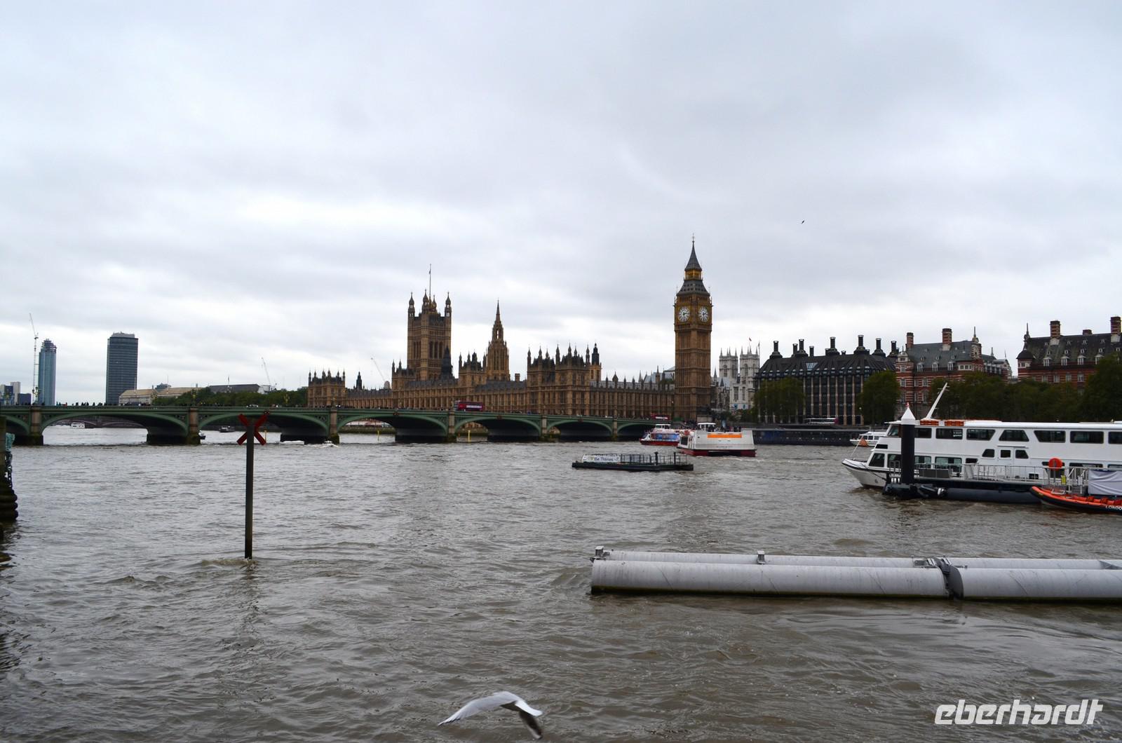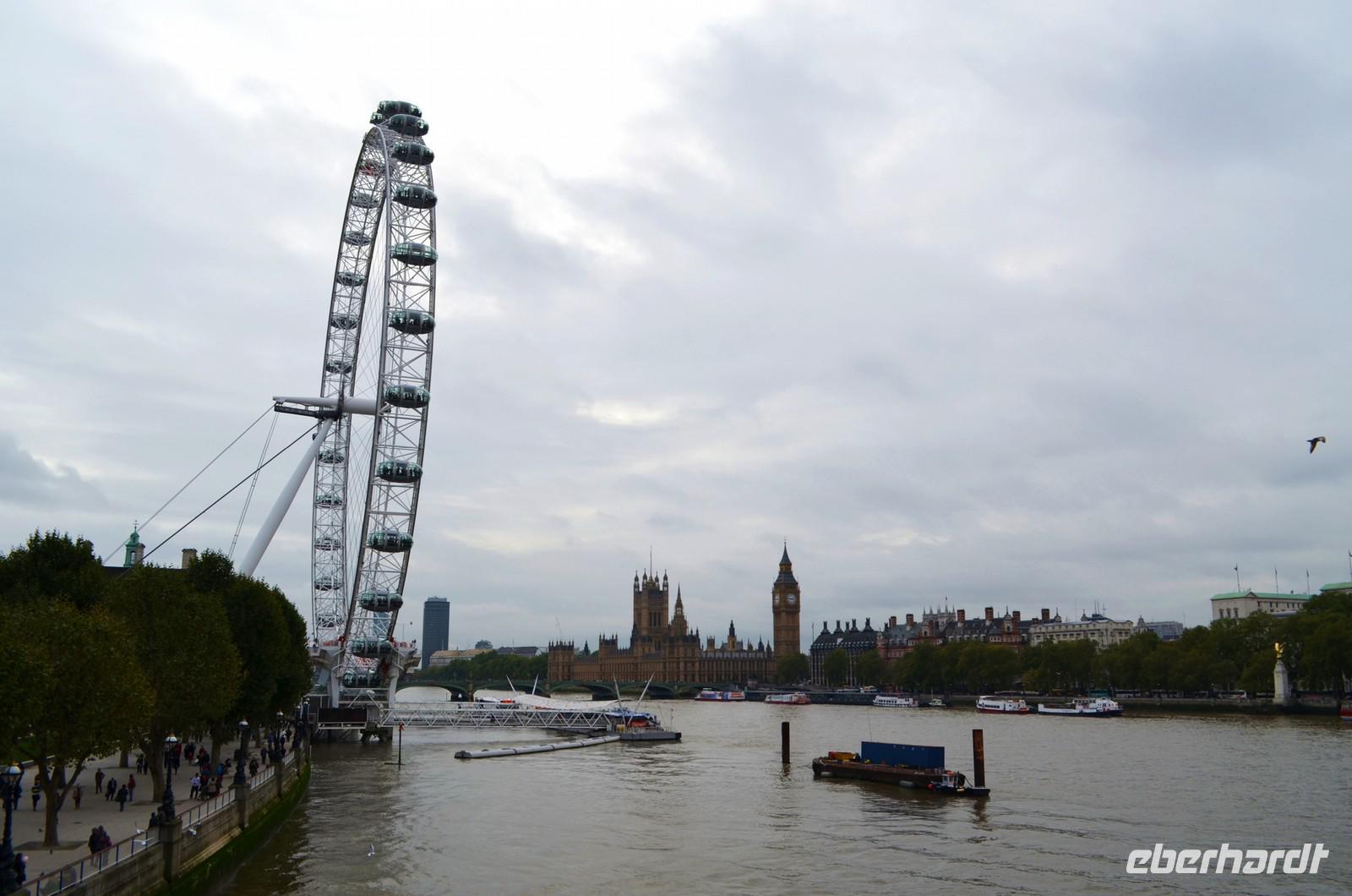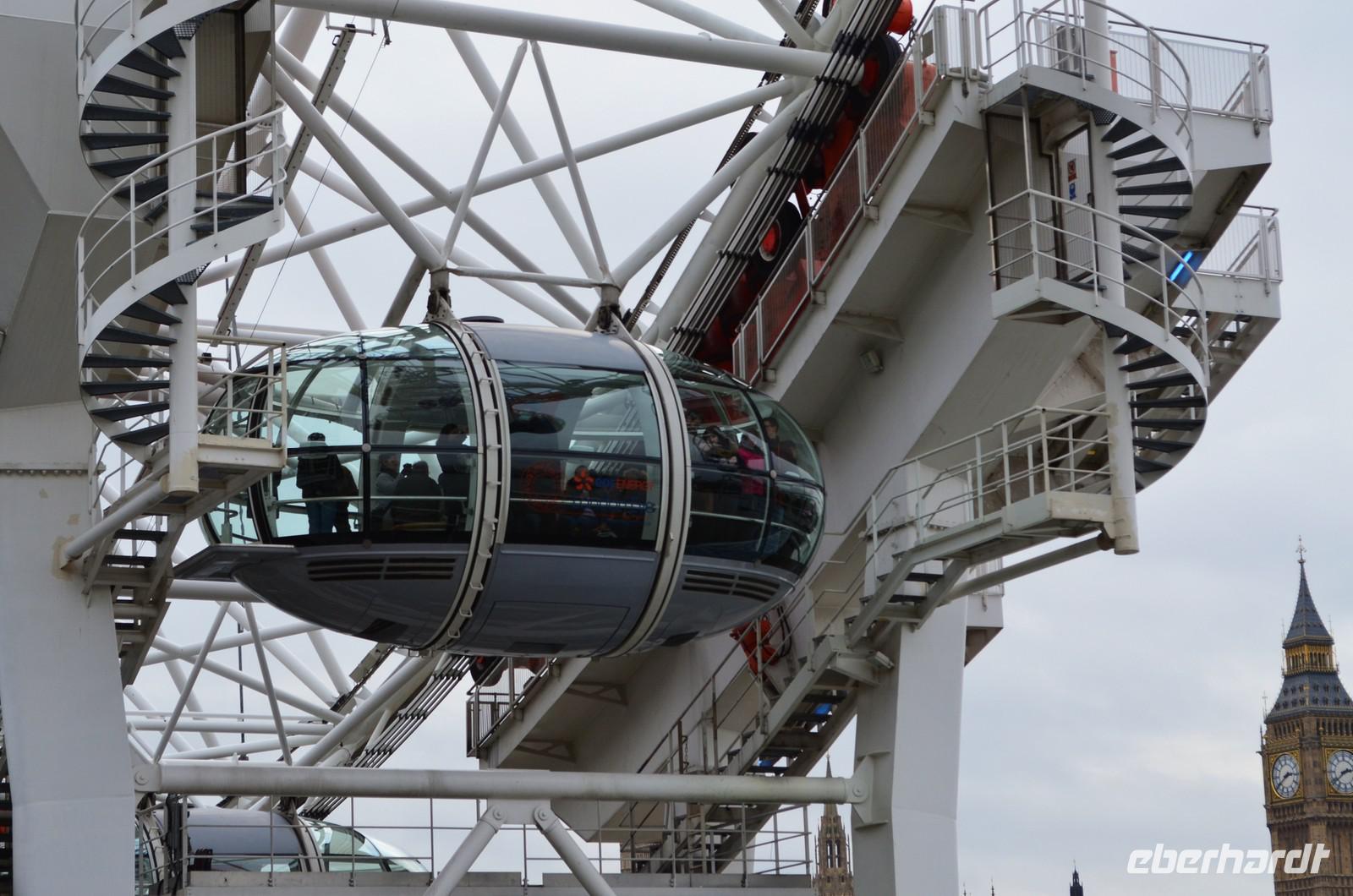 Die Mehrheit aber spaziert nach einem kleinen Mittagsimbiss an einem der Kioske im Park zurück durch den St. James Park, auf der anderen Seeseite entlang zur King Charles Street/Downing Street, weiter zum Parliament Square und zur Westminster Abbey, dann über Westminster Bridge zum London Eye. Wir besuchen den tollen 4D-Filmstreifen im Informationszentrum und dann beginnt die Fahrt mit dem London Eye - das Panoramaerlebnis der Stadt.