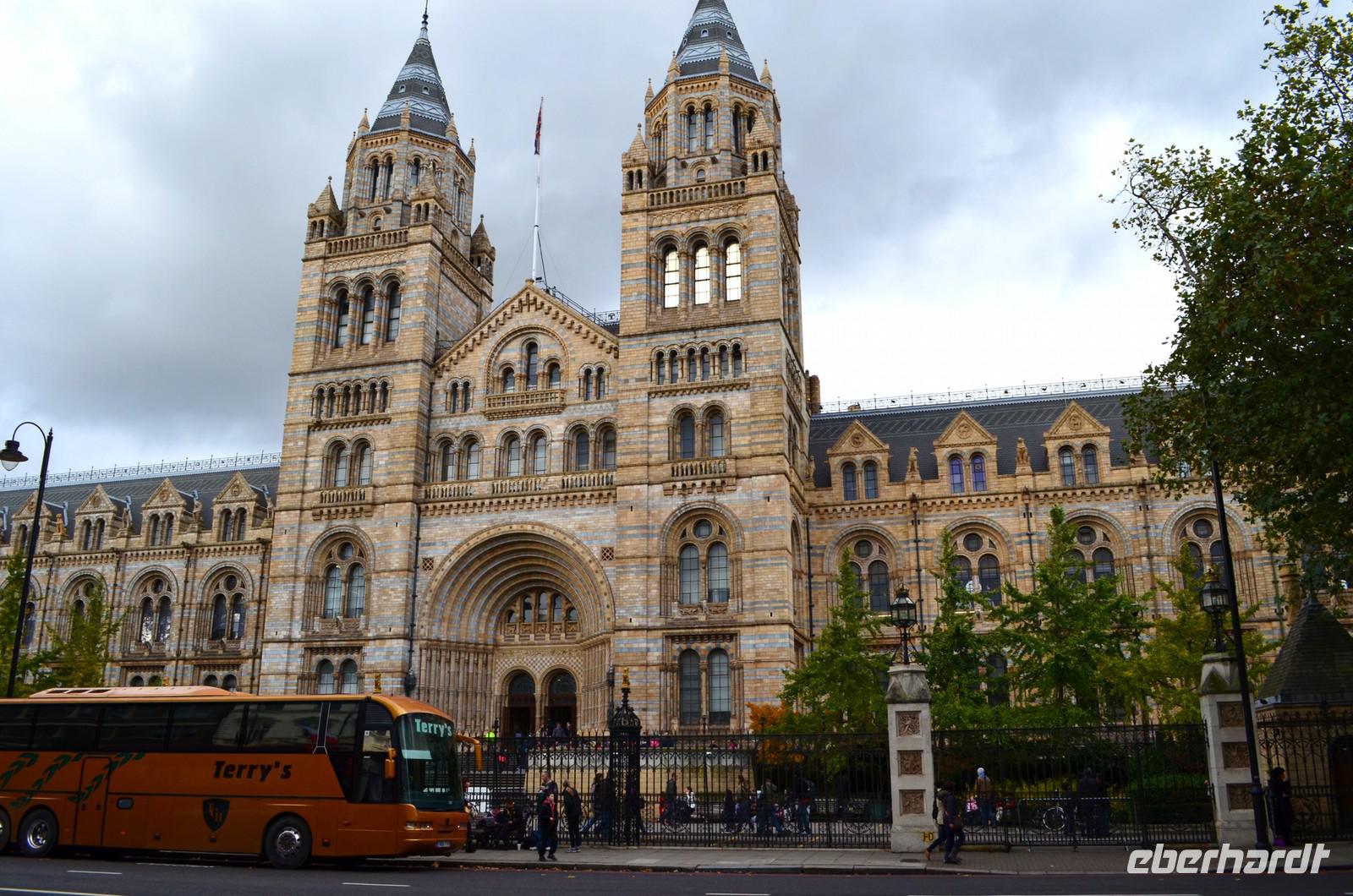 Es regnet und wir fahren durch die Stadt nach Westen, zum Natural History Museum.