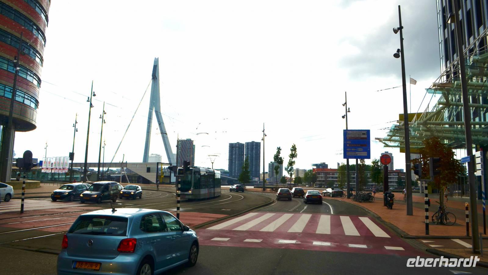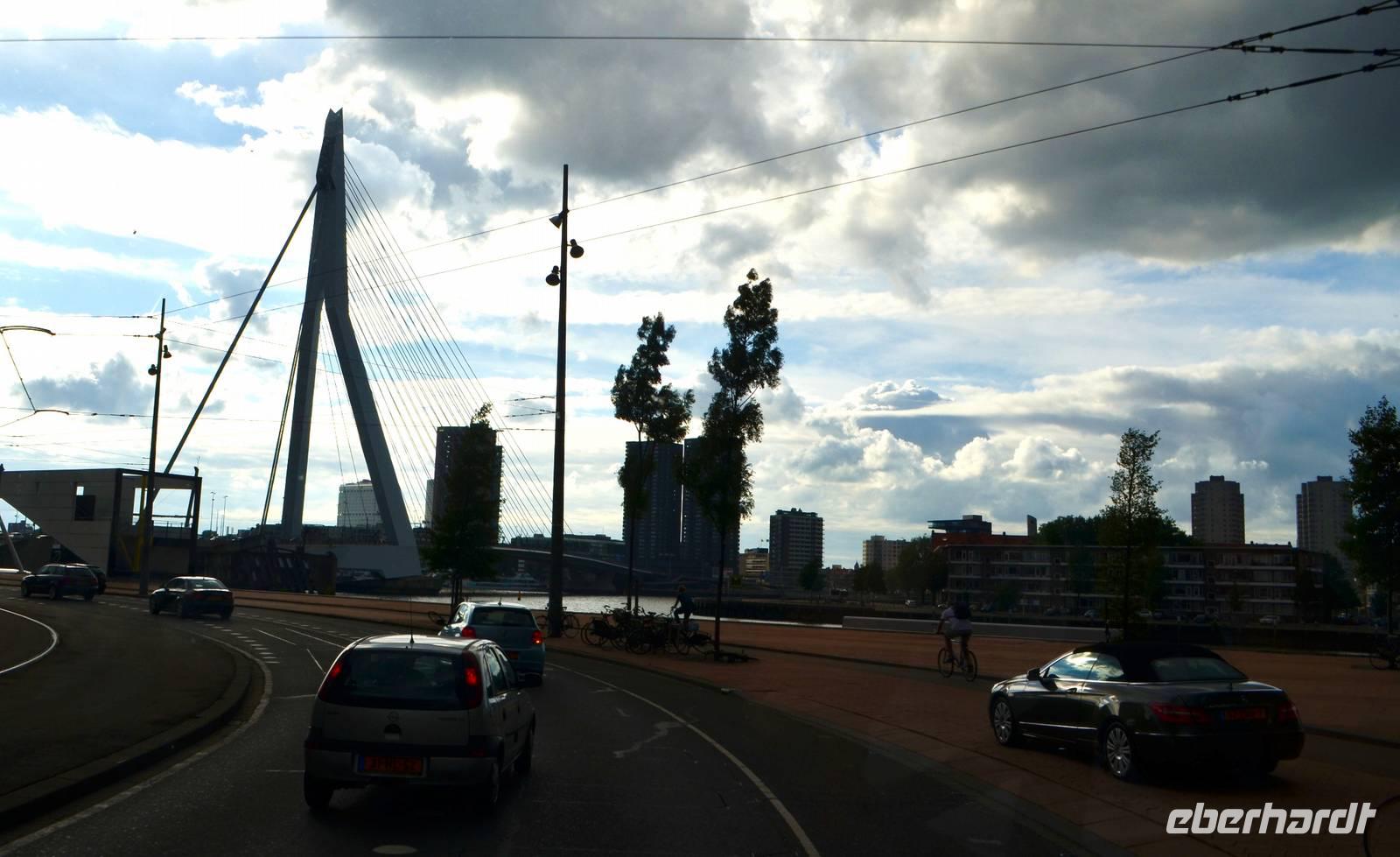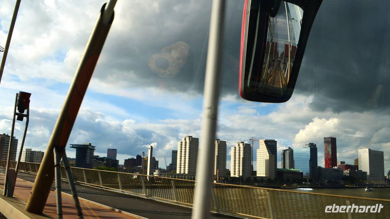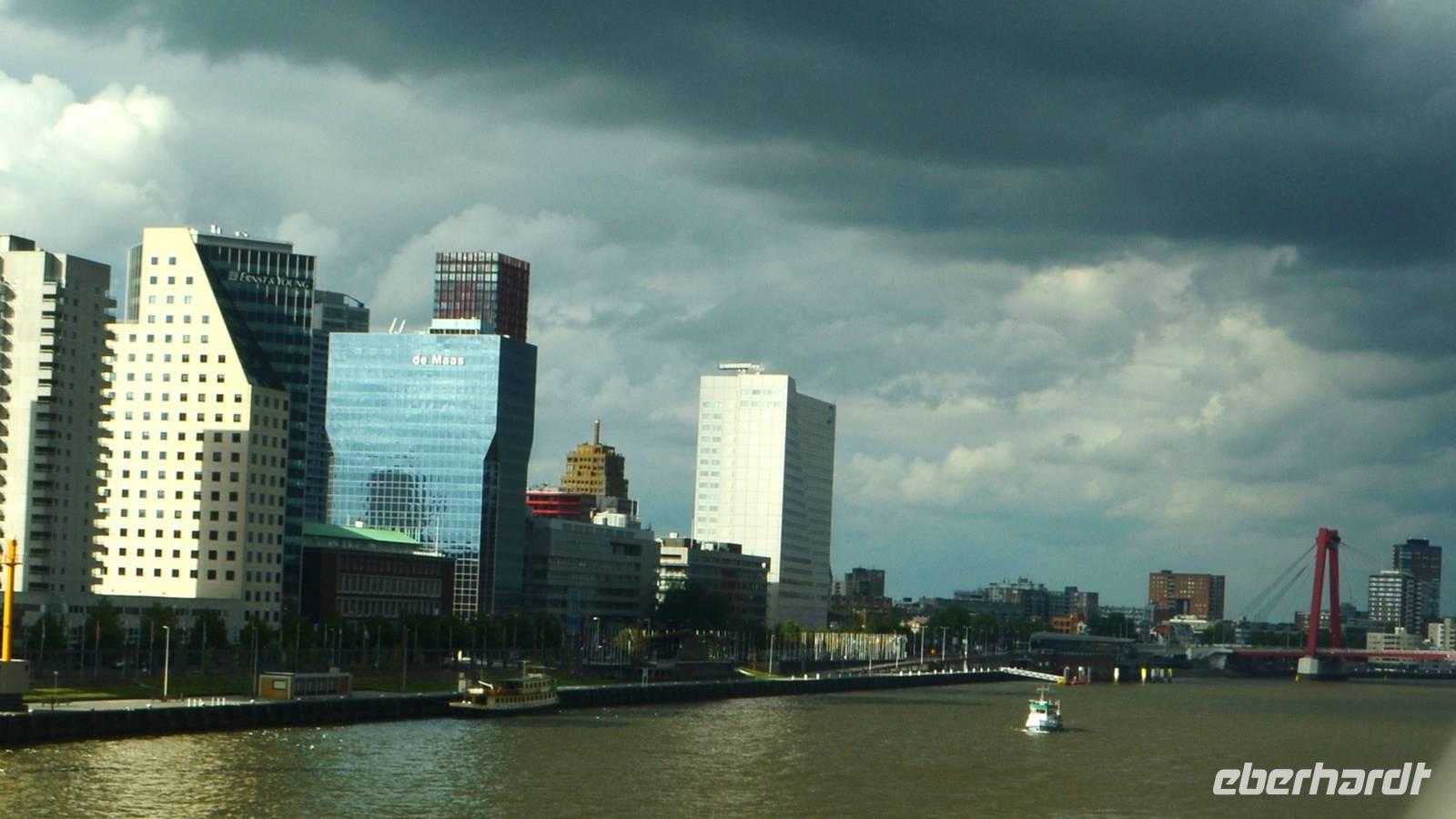 Unser abendliches Ziel ist Hoek van Holland, der Fährhafen der Stena Line vor Rotterdam. Natürlich lassen wir uns einen Abstecher in die Hafenmetropole Rotterdam nicht entgehen, schließlich hat diese moderne Stadt den größten Seehafen Europas - den drittgrößten Hafen der Welt. Gelegen an der Nieuwe Maas, einem Hauptarm des Rheindeltas erstreckt sich diese Stadt über eine riesige Fläche.