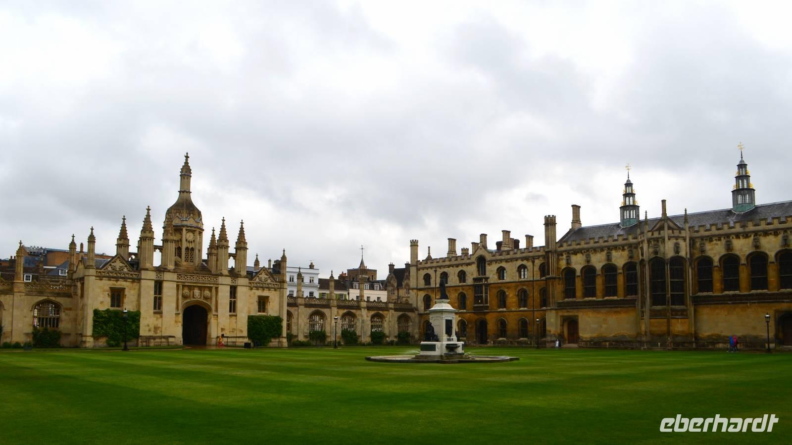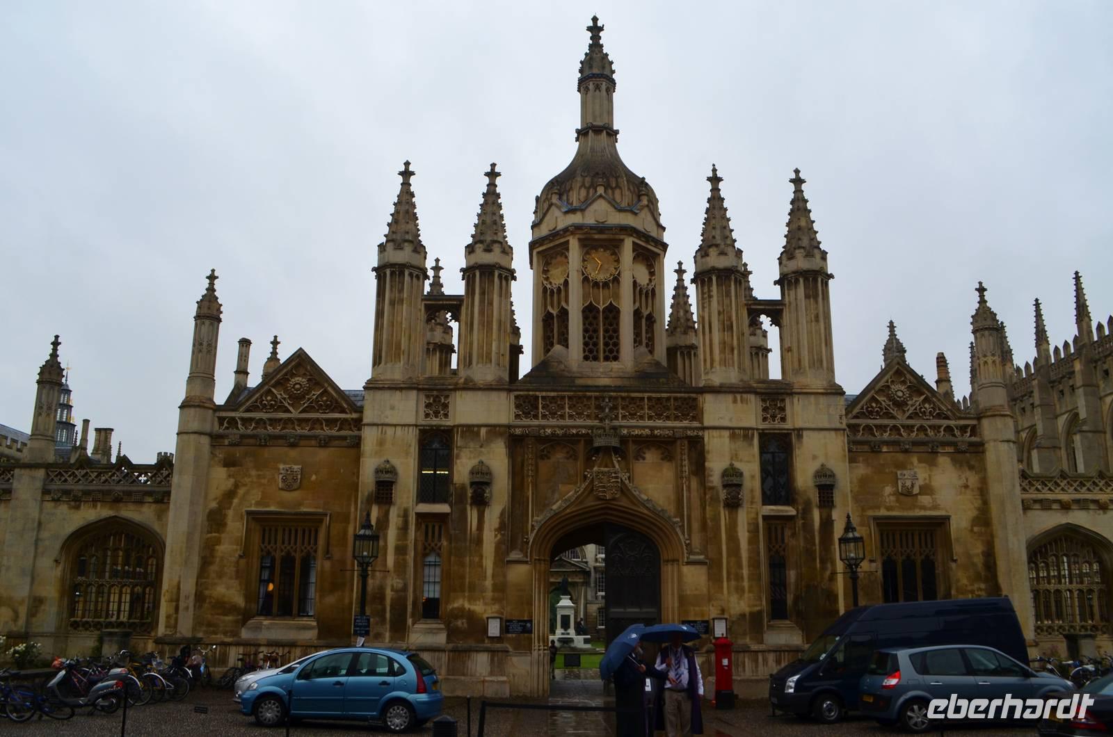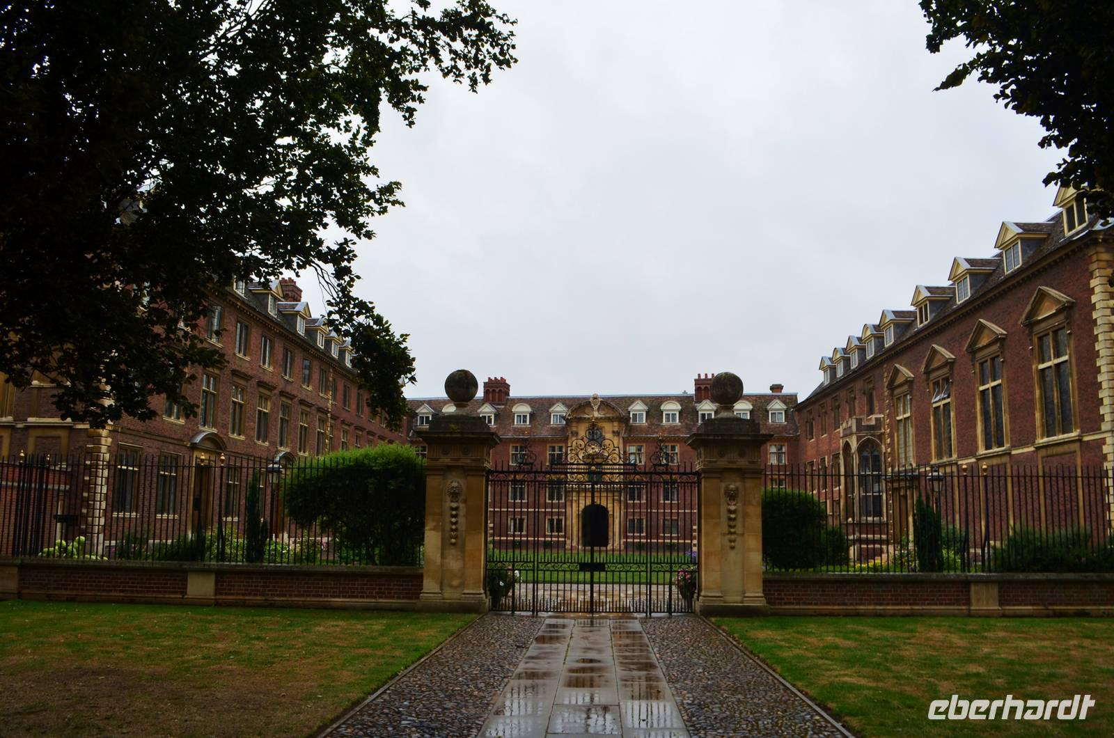 Nach der Einreisekontrolle an der Grenze zum Vereinigten Königreich fahren wir Richtung Cambridge, der Universitätsstadt am Flüsschen Cam. Dort, an unserem ersten Tagesziel, erwartet uns unsere Gästeführerin Catherine Hall, die uns schon freudig winkend begrüßt. Sie hat noch eine Kollegin mitgebracht und so teilen wir uns in zwei kleinere Gruppen für die Besichtigung. Leider regnet es ein bisschen.