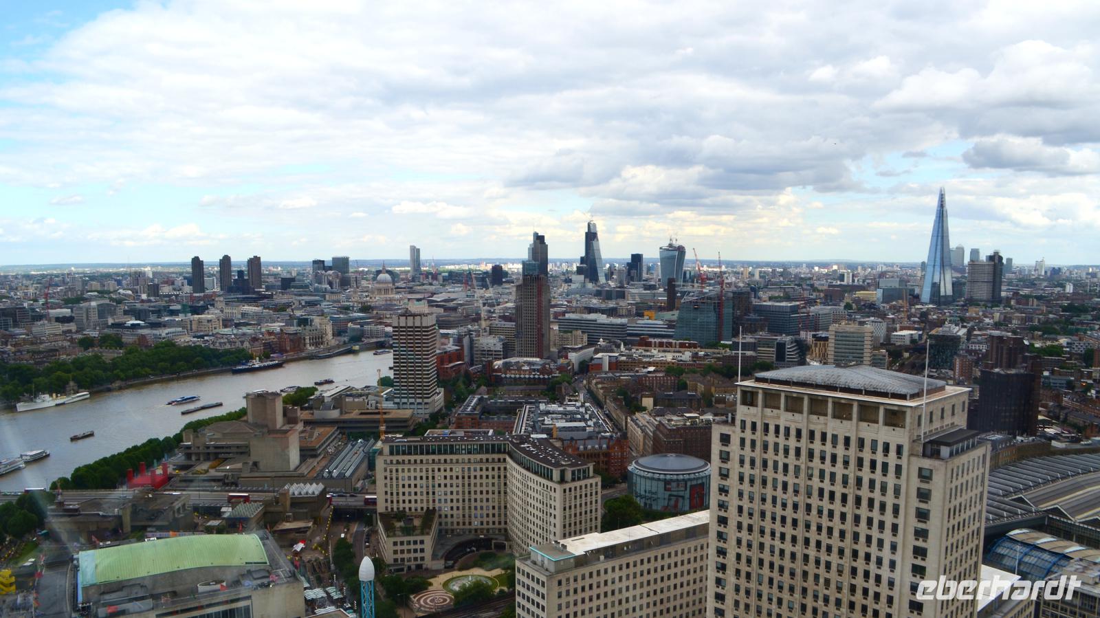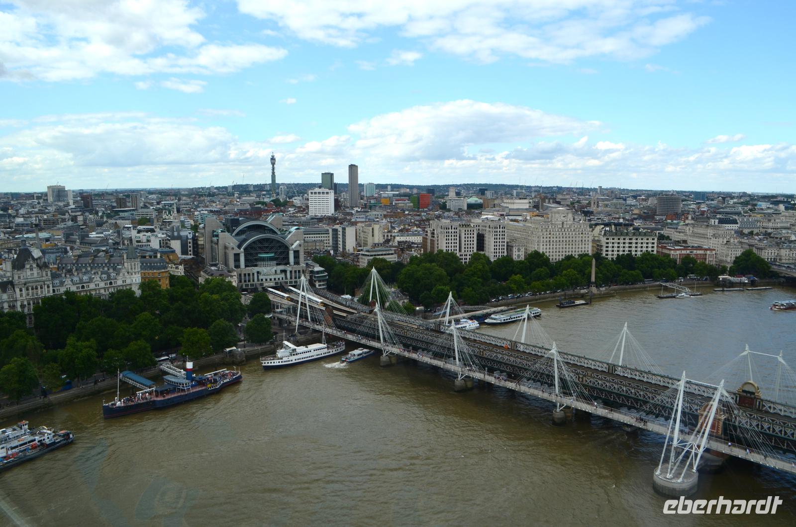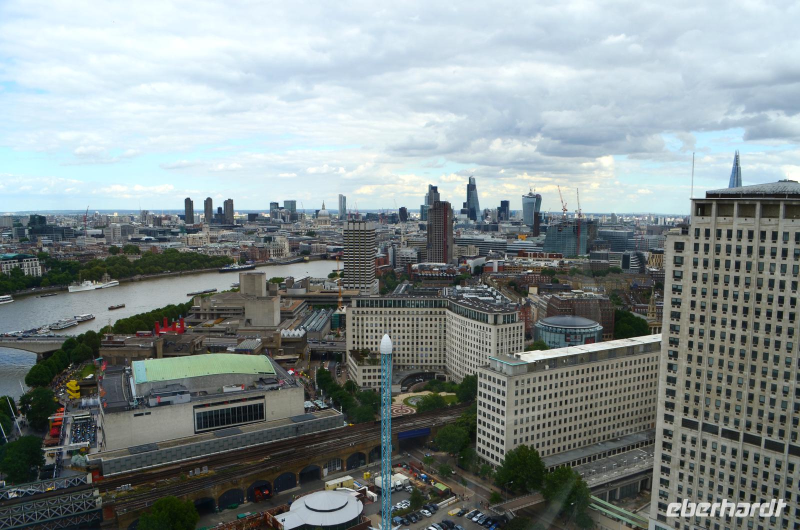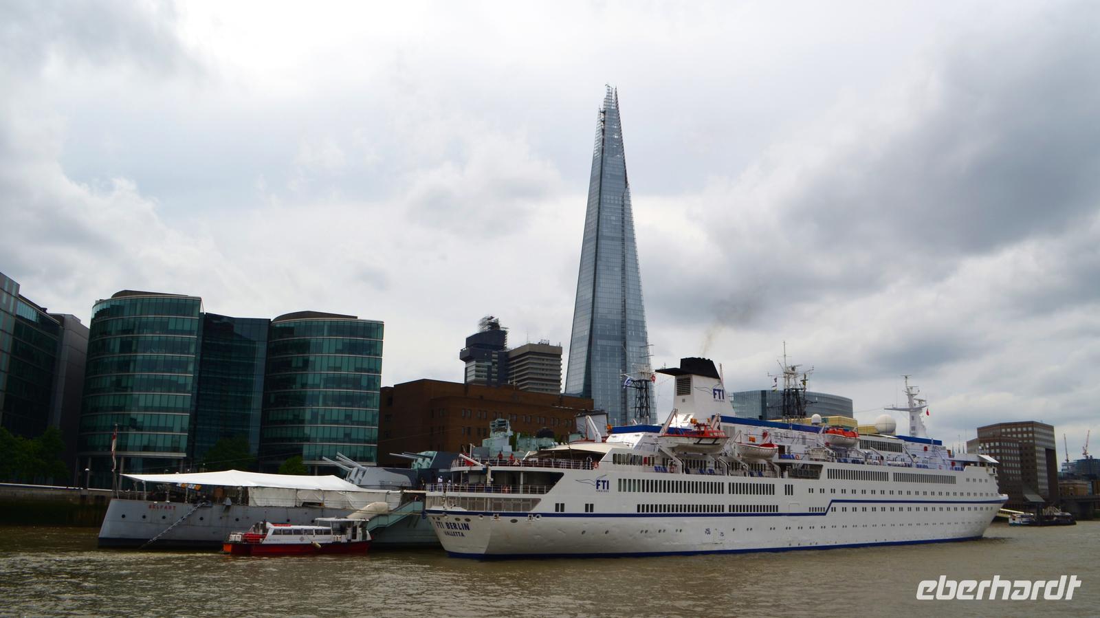 Tony hat alles wunderbar erklärt und so erkennen wir vieles auf unserer anschließenden Fahrt mit dem City-Cruise-Schiff themseabwärts wieder. Spektakuläre Ausblicke auf die Stadt eröffnen sich vom Fluss aus. Gerade an den Flussufern hat sich die Stadt in den letzen Jahren und im Zuge der olympischen Spiele total gewandelt. Die alten Speicher und Werften sind zu modernen Wohn- und Arbeitsorten umgebaut worden und bilden attraktive Ensemble.