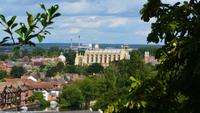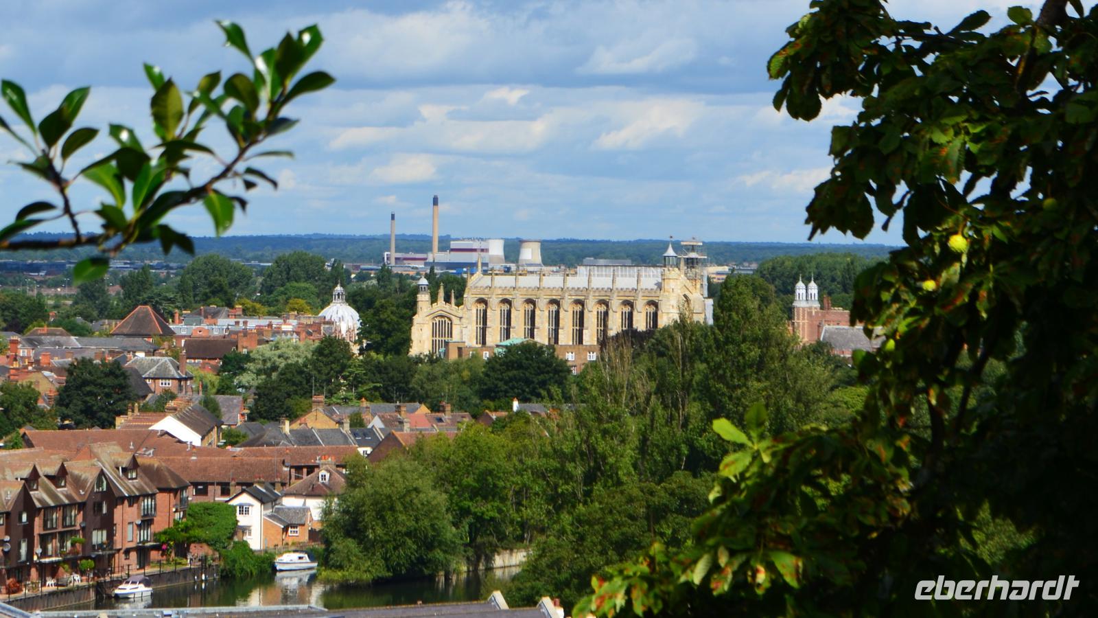 Die Sonne scheint und wir fahren durch die Stadt nach Westen hinaus, nach Windsor. Vom Coach-Parkplatz gehen wir gemeinsam zum Bahnhof hinauf, den Bahnsteig entlang bis zur alten Lok des Regierungszuges von Queen Victoria und weiter durch Fußgängerzone Richtung Castle. Die hübschen Gassen der Stadt sind erstes Ziel unseres Spazierganges. Über das Besucherzentrum betreten wir danach die weitläufige Schlossanlage von Windsor Castle, Orientierungspläne werden verteilt und deutschsprachige Audioguides erklären uns die Sehenswürdigkeiten. Die Prunkräume des Schlosses, das Dolls House und sie St. Georg Kathedrale sind besonders interessant. Die Schlosswache trägt die Paradeuniform.