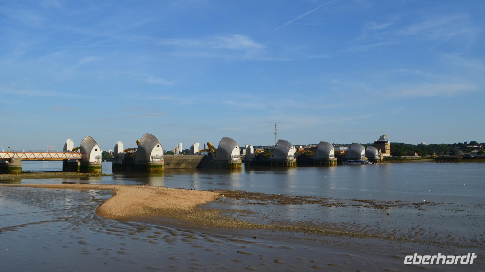 17:00 Uhr ist die pünktliche Abfahrt Richtung Fähre. Wir machen zuerst noch einen Abstecher zum Royal Victoria Dock und besuchen die nahe gelegene Themse-barriere.