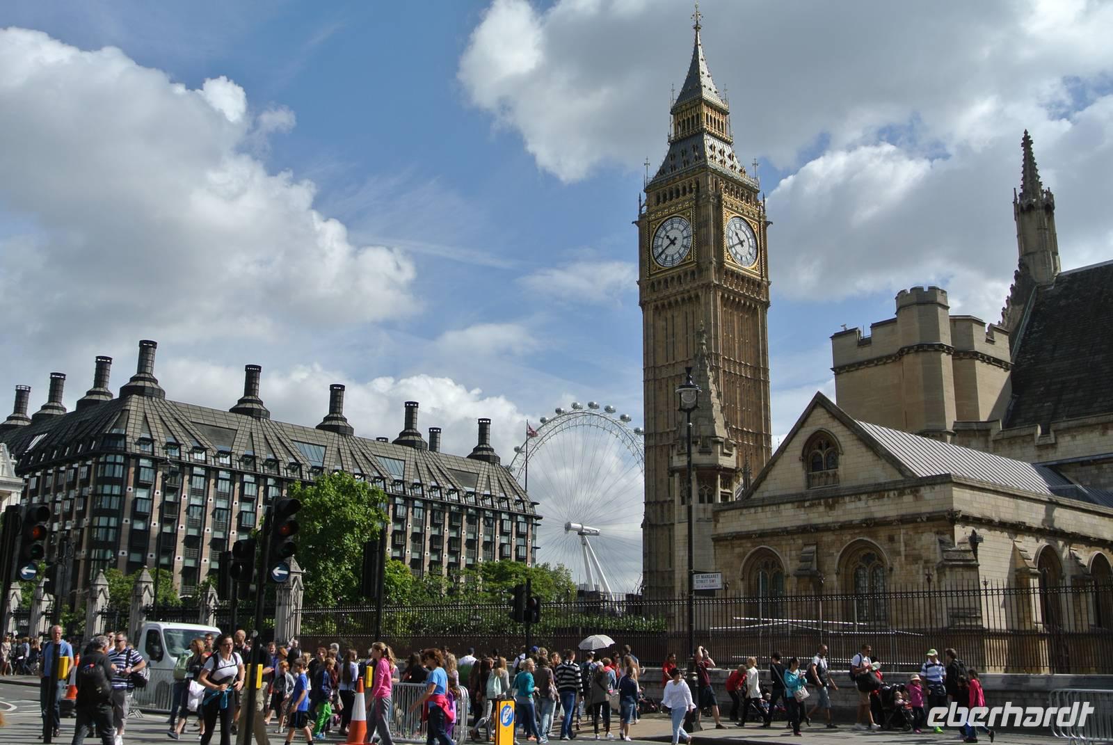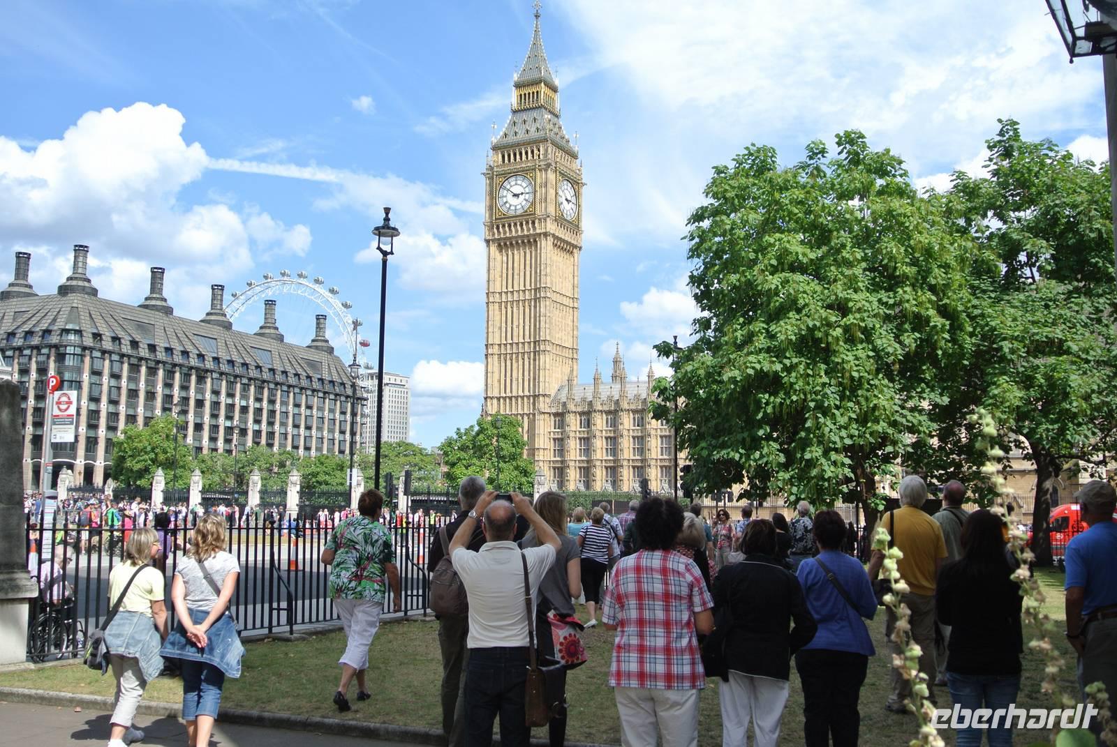 Gegen 12:45 Uhr gingen wir über den St. James Park wieder zum Horse Guards House, wo wir einen längeren Aufenthalt hatten. An der Downing Street No. 10 vorbei, kamen wir um 13:20 Uhr an der Westminster Abbey an. Nach einigen Informationen zur Mittagspausengestaltung und zu Besichtigungsmöglichkeiten, hatten die Gäste bis 14:30 Uhr Zeit die Westminster Abbey, das House of Parliament, Big Ben und die Westminster Bridge zu besichtigen.