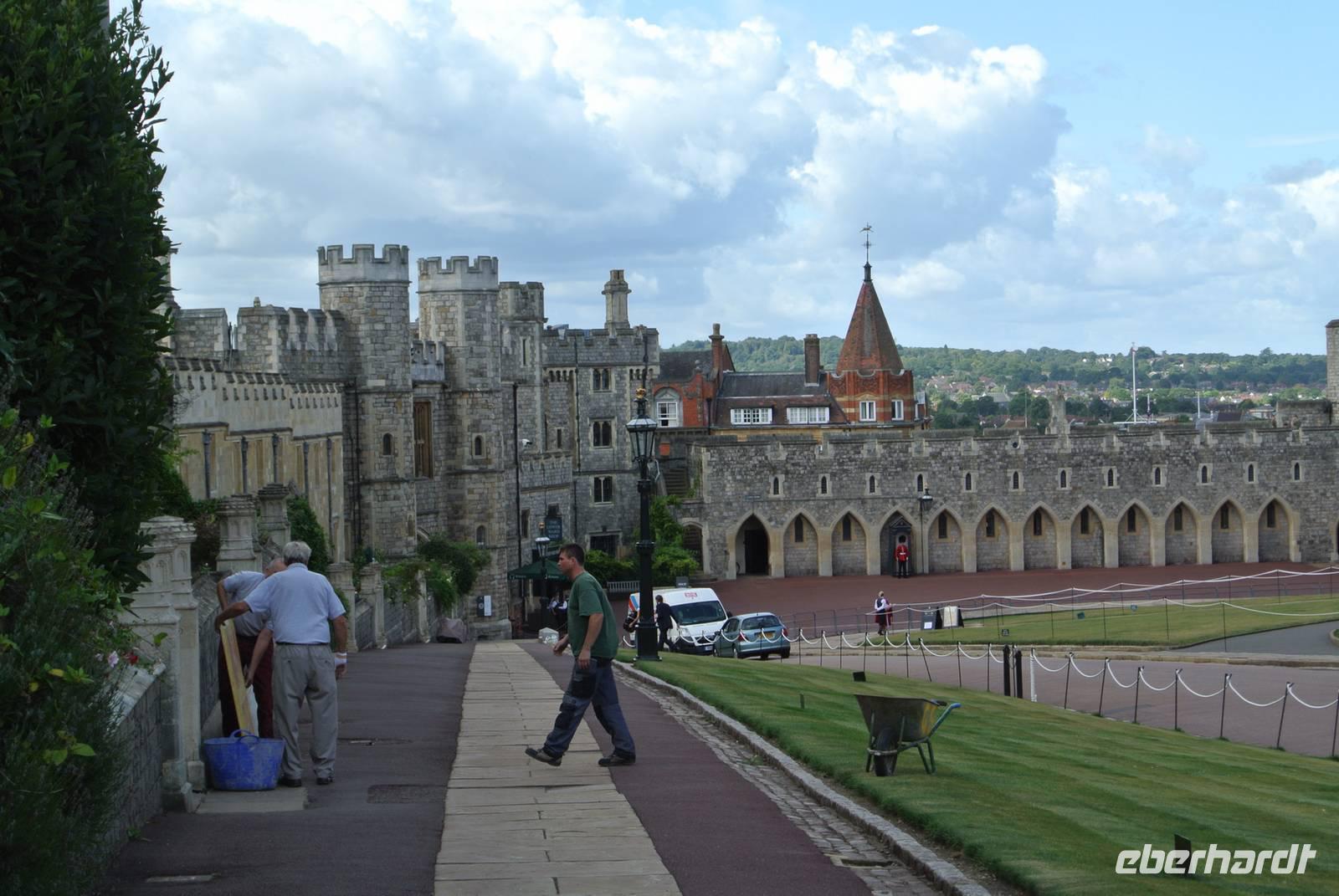 Dort machten wir eine WC Pause und ich besorgte für jeden Gast einen Stadtplan von Windsor in der Tourist-Information.Um 09:50 Uhr kamen wir am Gruppeneingang vom Windsor Castle an und gelangten sehr schnell durch die Karten und Gepäckkontrolle in das Schloss.