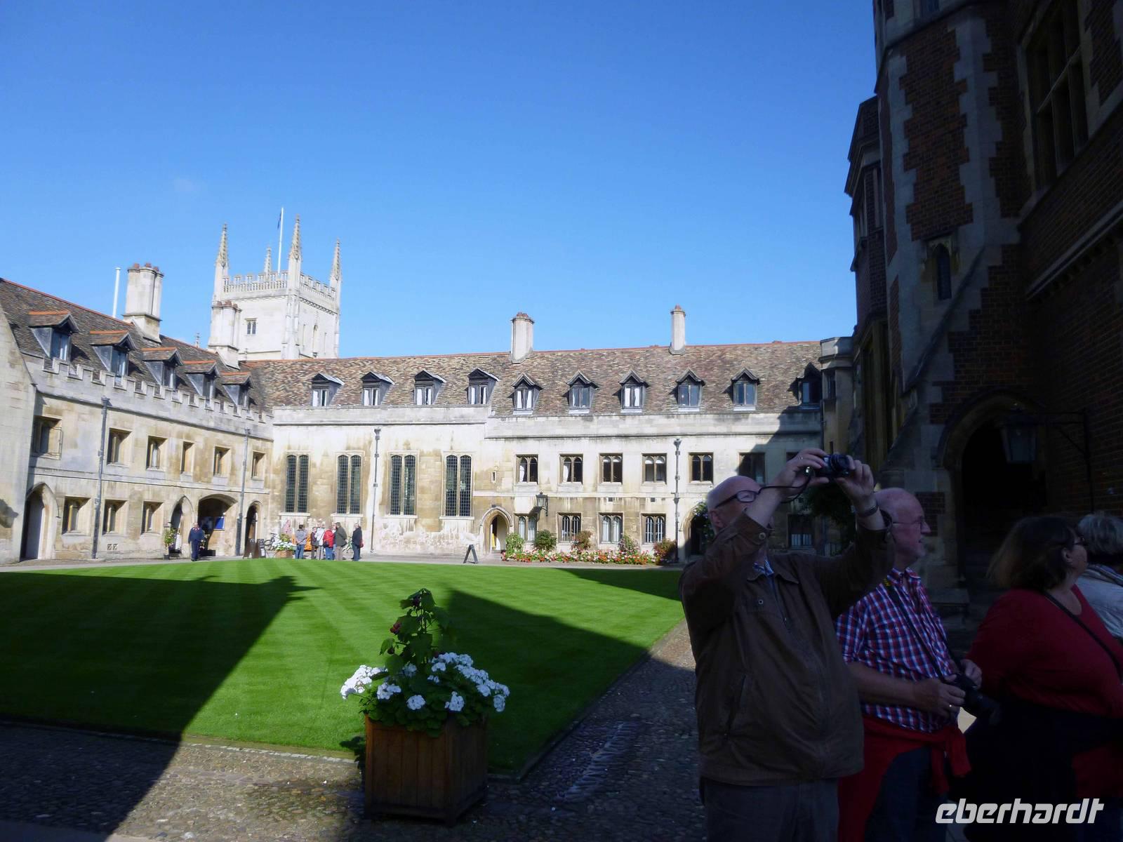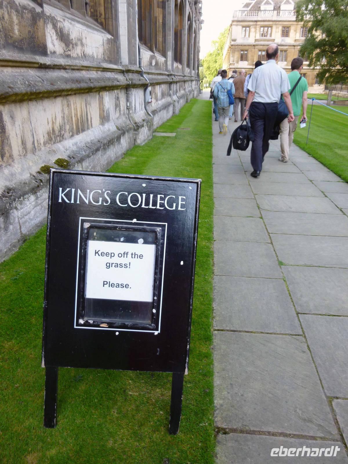 Hier geht nichts ohne Rad oder Boot, doch waren die Studenten noch nicht da und so waren die Gehsteige nicht überfüllt. Margot zeigte uns wesentliche Facetten des uralten Ortes an der römischen Via Devana: den Fluss mit Mathematikerbrücke, die Colleges mit Pembroke und der alten gotischen Kings College Chapel in der City. Alles schnell erreichbar. Jedes College für sich eine kleine Welt mit eigenen Regeln.