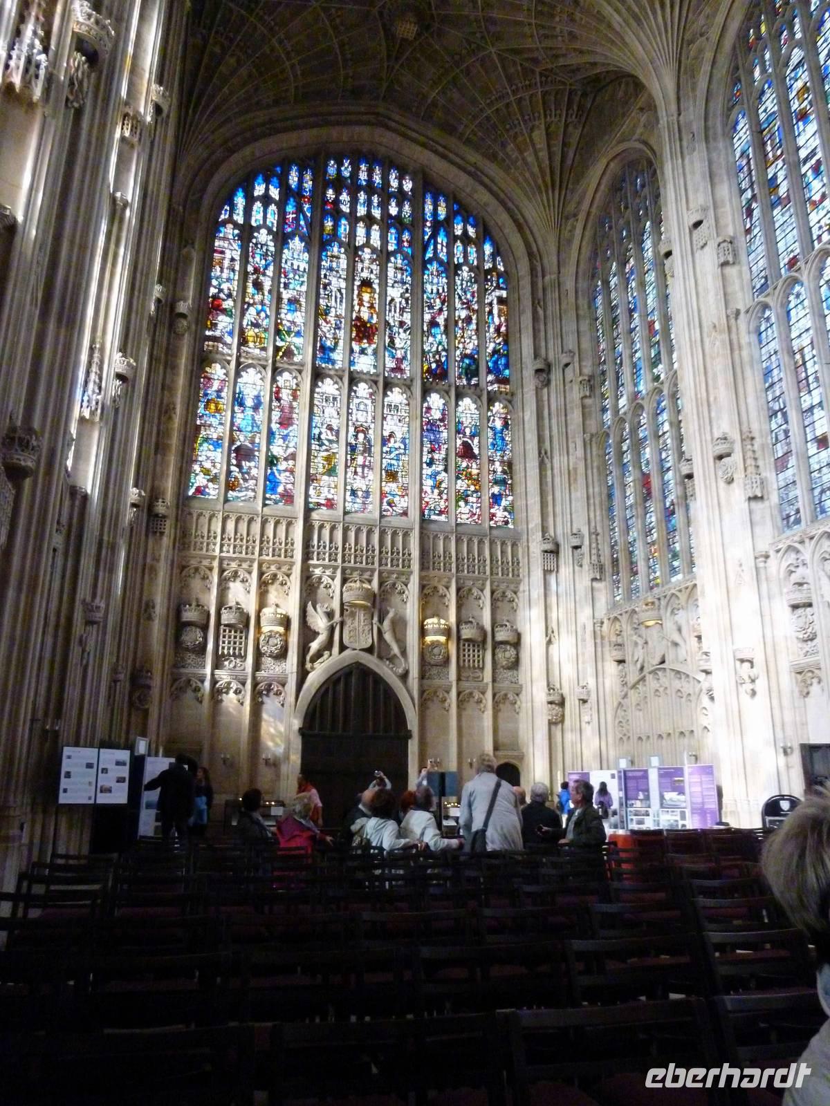 Die King's College Chapel wird gemeinhin als das Wahrzeichen der Stadt gesehen und ist das vielleicht berühmteste und schönste Gebäude gotischer Architektur in Cambridge. Es wurde über einen Zeitraum von rund 100 Jahren in drei Etappen erbaut und bietet das größte Fächergewölbe der Welt im typischen perpendicular style, viele schöne Kirchenfenster und das Gemälde „Die Anbetung der Weisen aus dem Morgenland" von Peter Paul Rubens. Wie uns Margot erzählte, wird die Kapelle weiterhin aktiv für Gottesdienste und andere College-Veranstaltungen genutzt. Unter den ehemaligen Schülern waren auch Sir Robert Walpole (1676-1745), erster Premierminister Großbritanniens und Salman Rushdie (* 1947).