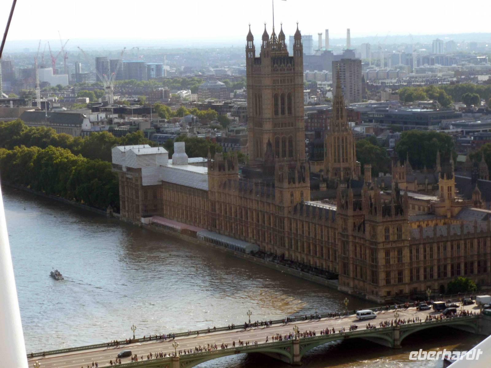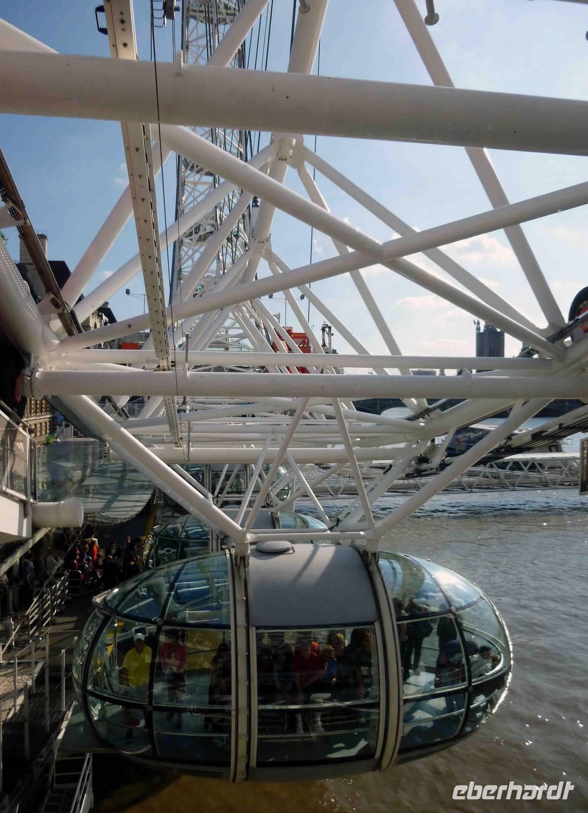 Nach so viel Bildung knurrte uns gehörig der Magen und gestärkt setzten wir dann die Fahrt nach London fort, checkten in das Copthorne Tara Hotel in Kensington ein, begrüßten unsere Fluggäste und fuhren gemeinsam zum Riesenrad "London Eye". Das „Auge von London", auch bekannt unter der Bezeichnung "Millennium Wheel", ist mit einer Höhe von 135 Metern das derzeit höchste Riesenrad Europas und das viertgrößte Riesenrad der Welt. Es steht in Londons City am Südufer der Themse, nahe der Westminster Bridge und ist inzwischen eines der Wahrzeichen der britischen Hauptstadt.