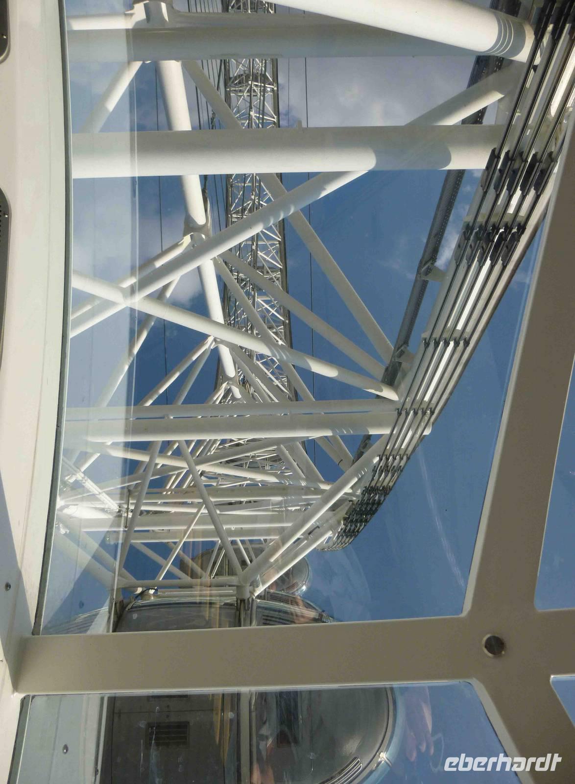 Wir betraten bei herrlichster Sicht zusammen eine der 32 verglasten Kapseln und schwebten ca. 40 Minuten (0,26 m/s) durch den azurblauen Himmel, was für ein Erlebnis!