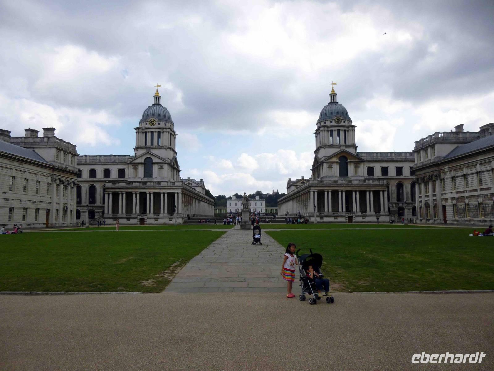 Wir schlenderten entlang der klassizistischen Mittelachse der Anlage mit Blickrichtung zum Queens House und bogen dann am Schifffahrtsmuseum vorbei zum Royal Greenwich Observatory ab.