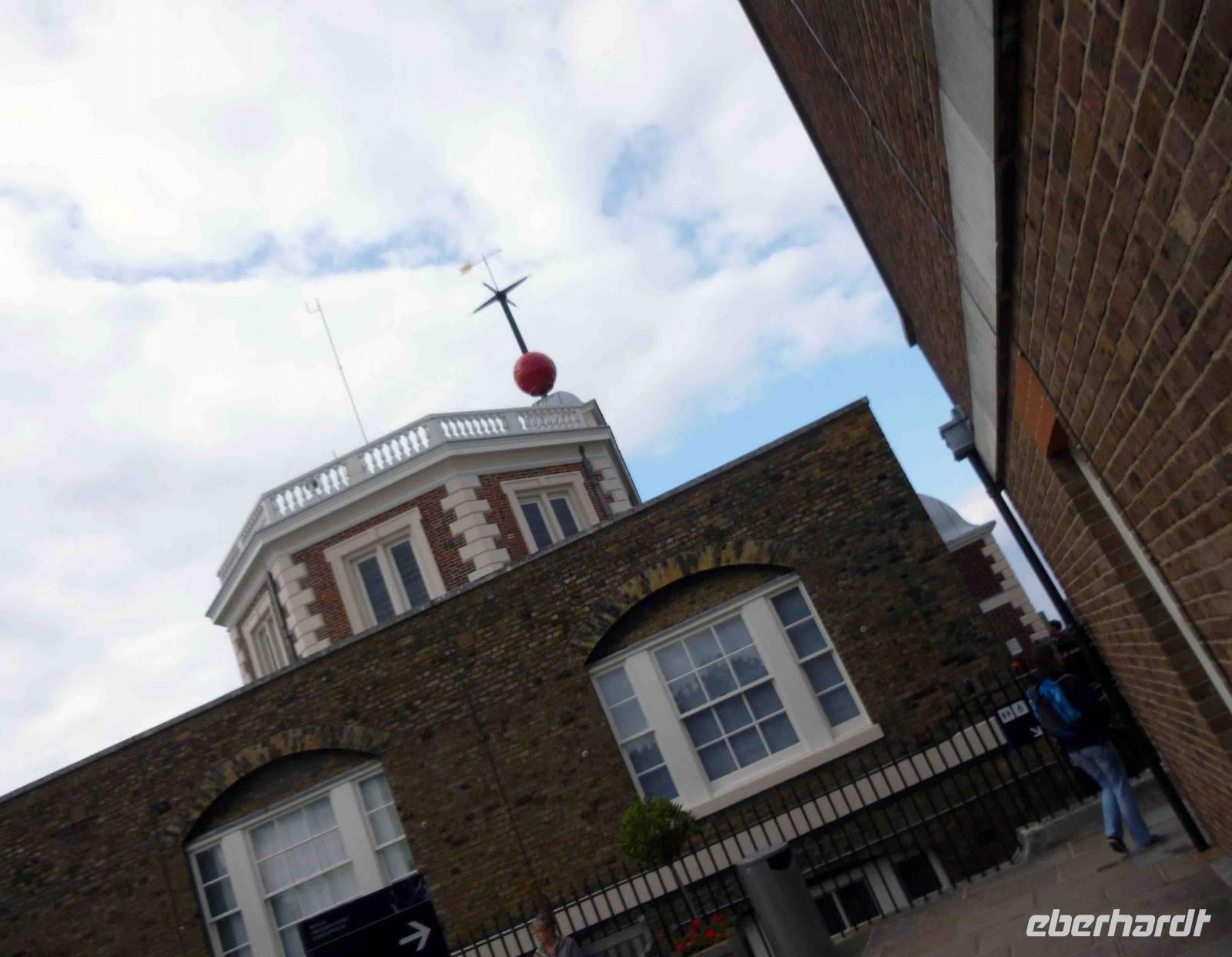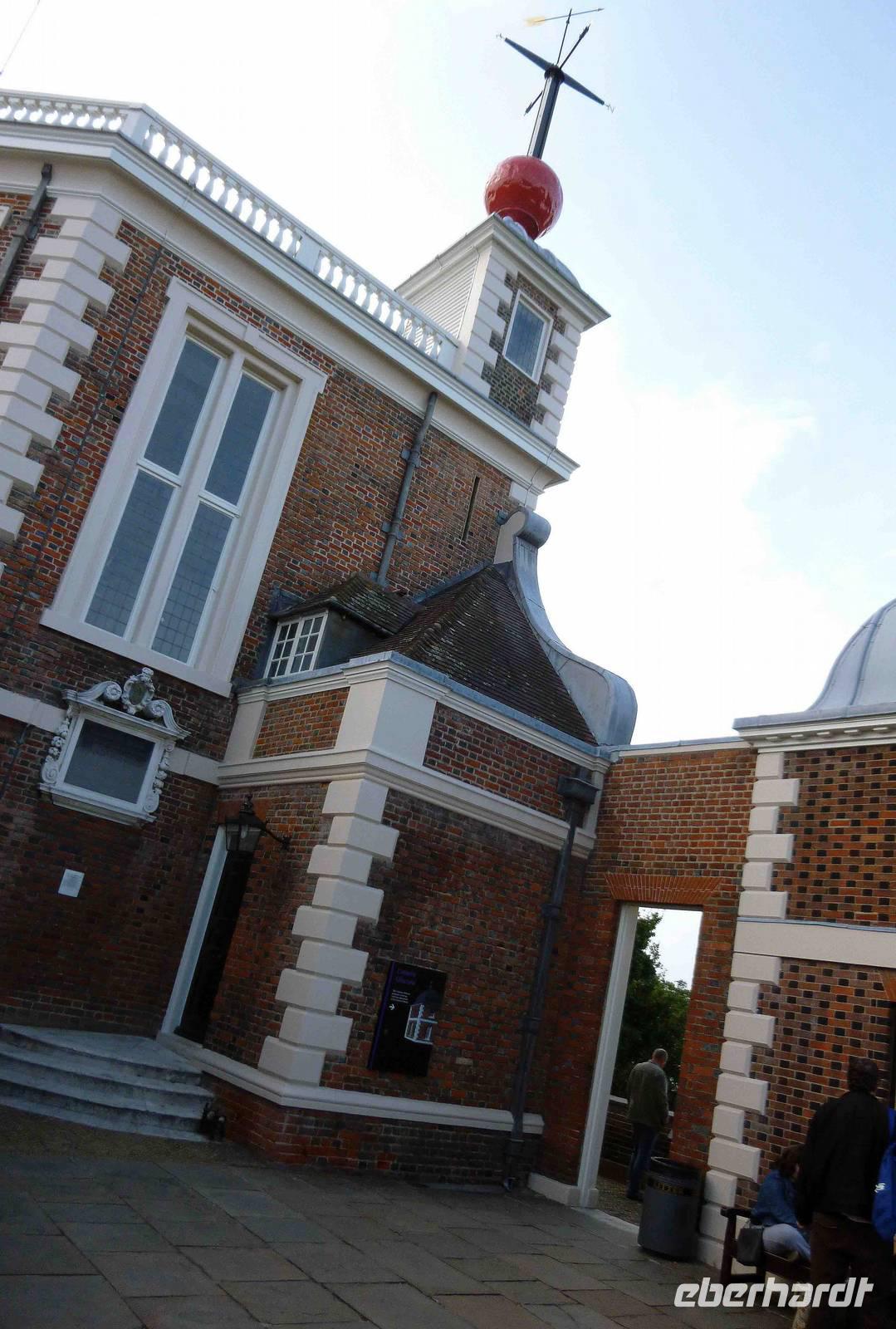 Auf dem Dach der Sternwarte wurde vom Hofastronomen John Pond 1833 die lederbezogene rote Zeitkugel installiert. Diese wird auch heute noch täglich hochgezogen und fällt um Punkt 13 Uhr herunter, damit konnten früher die Schiffe auf der Themse ihre Schiffschronometer auf die exakte Greenwich Mean Time einstellen. 1855 wurde bei einem Sturm die Zeitkugel heruntergerissen und 1919 durch die heutige rote Kugel aus Aluminium ersetzt.
